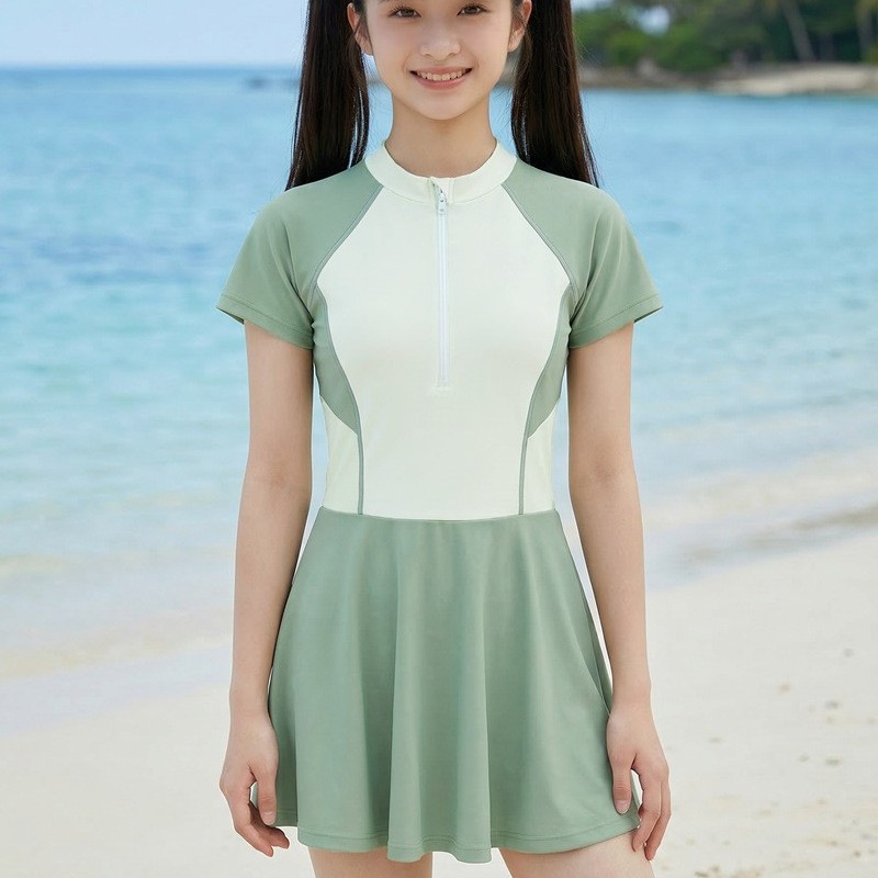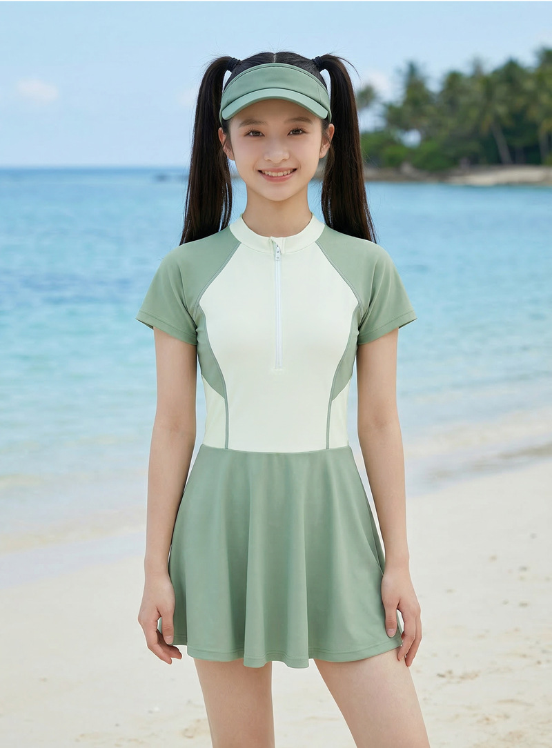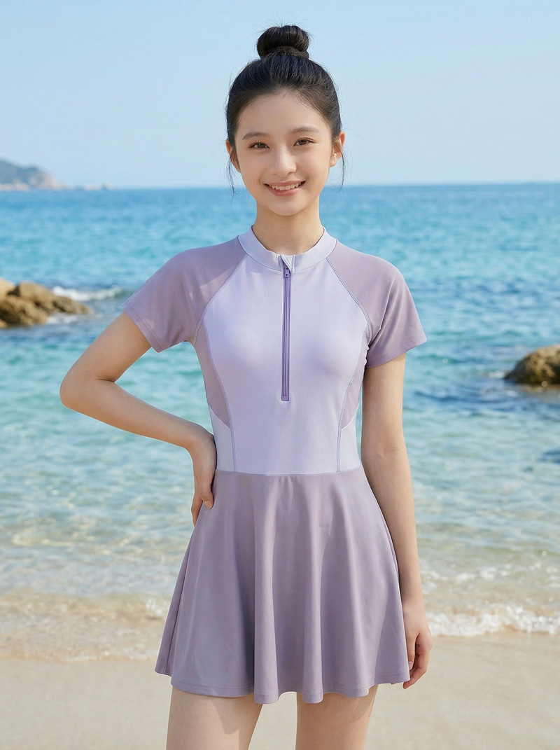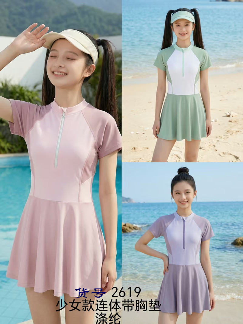连体拉连少女款连体带胸垫游泳衣 涤亚面料. 弹性好.手感舒适