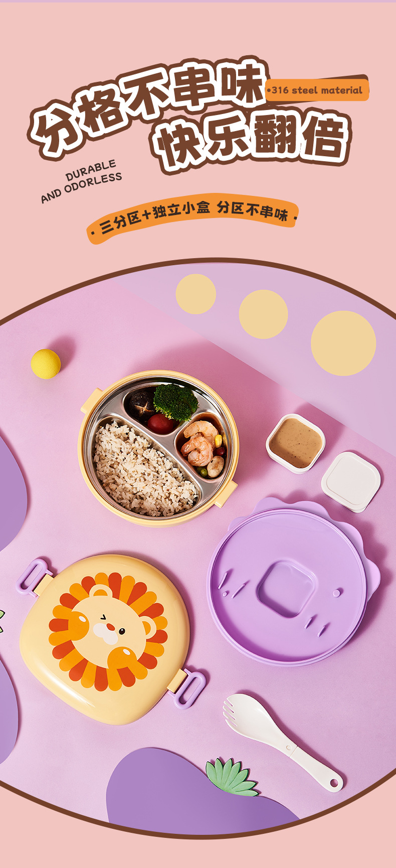 baby going out portable lunch box little lion tableware set baby food bowl household self-feeding tableware set
