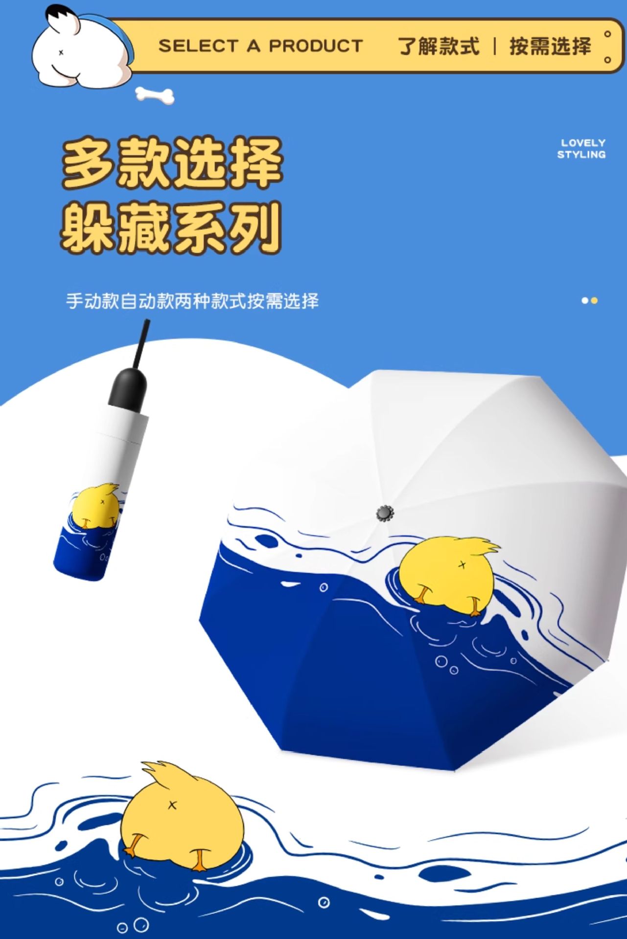 manual type★cute duck [lightweight & portable/rain or shine]