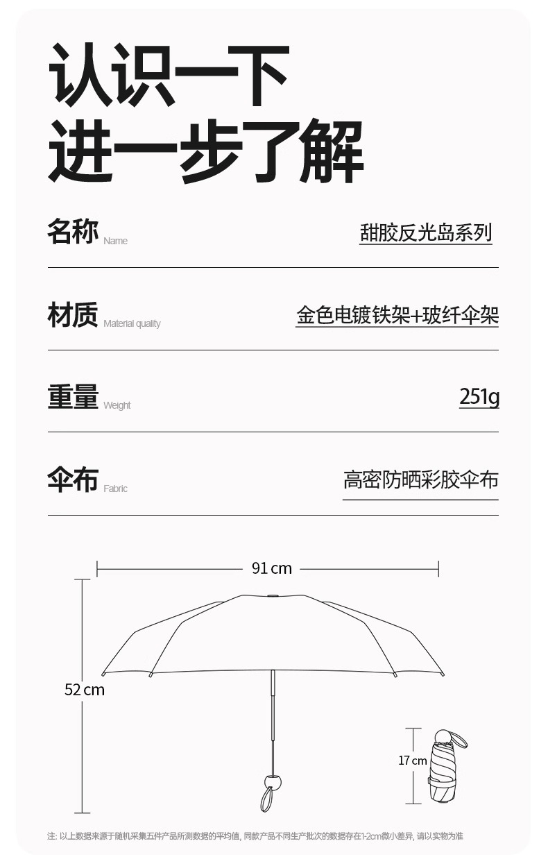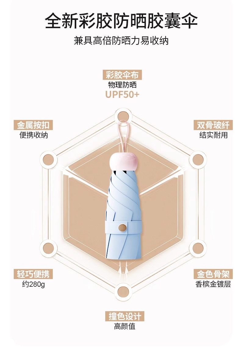 xiangyu gold-ultra-lightweight capsule umbrella [double-sided color plastic printing + heat insulation and cooling upf50+]