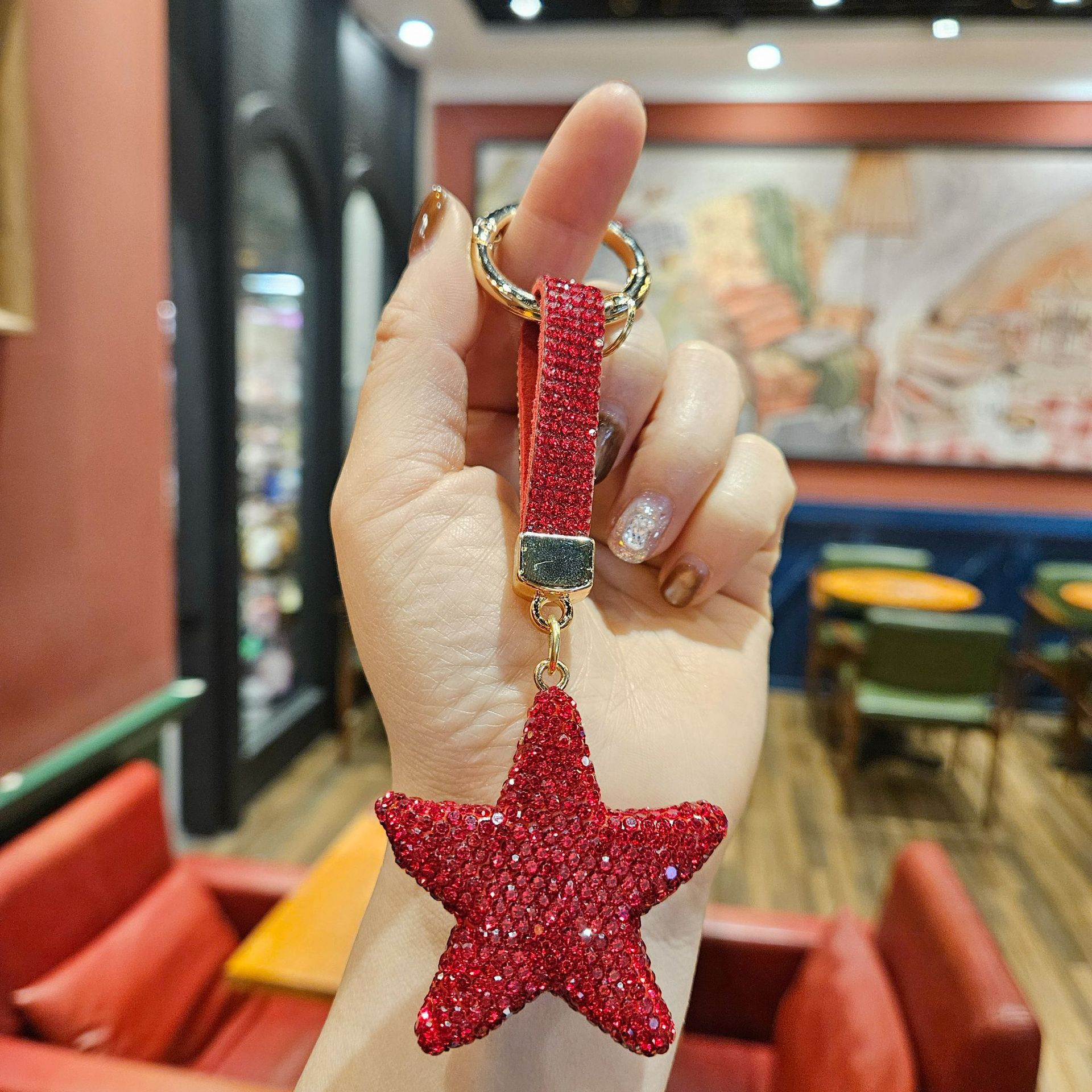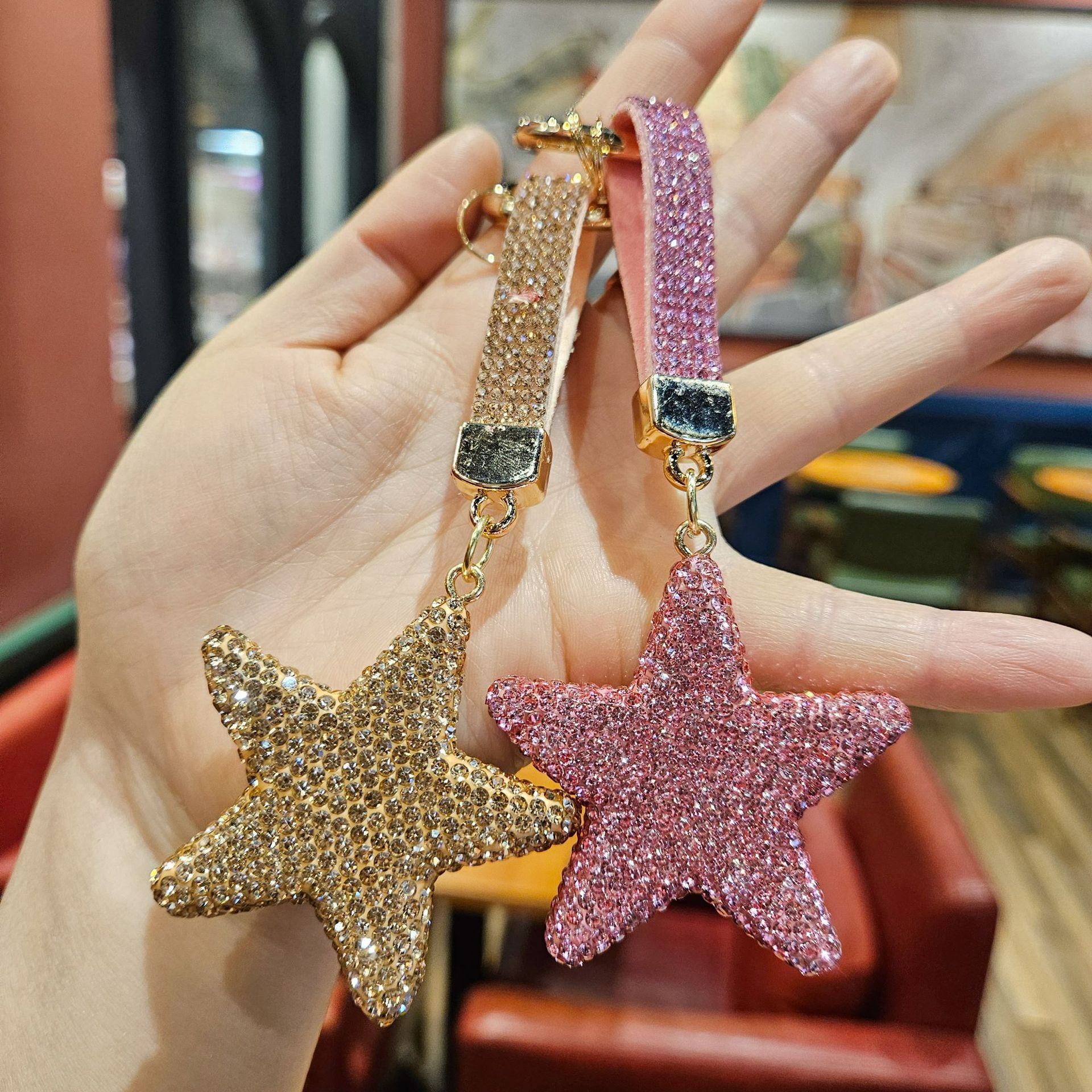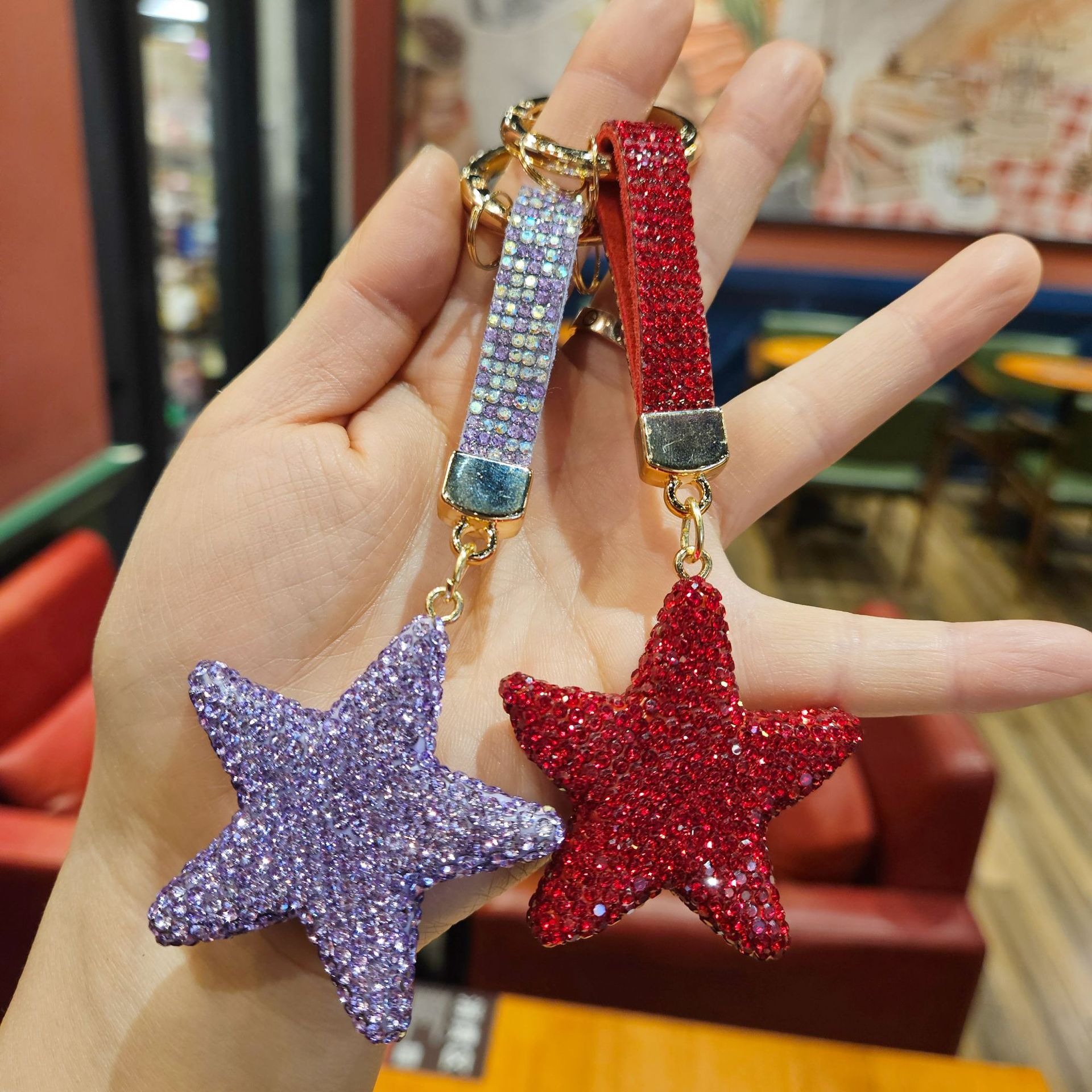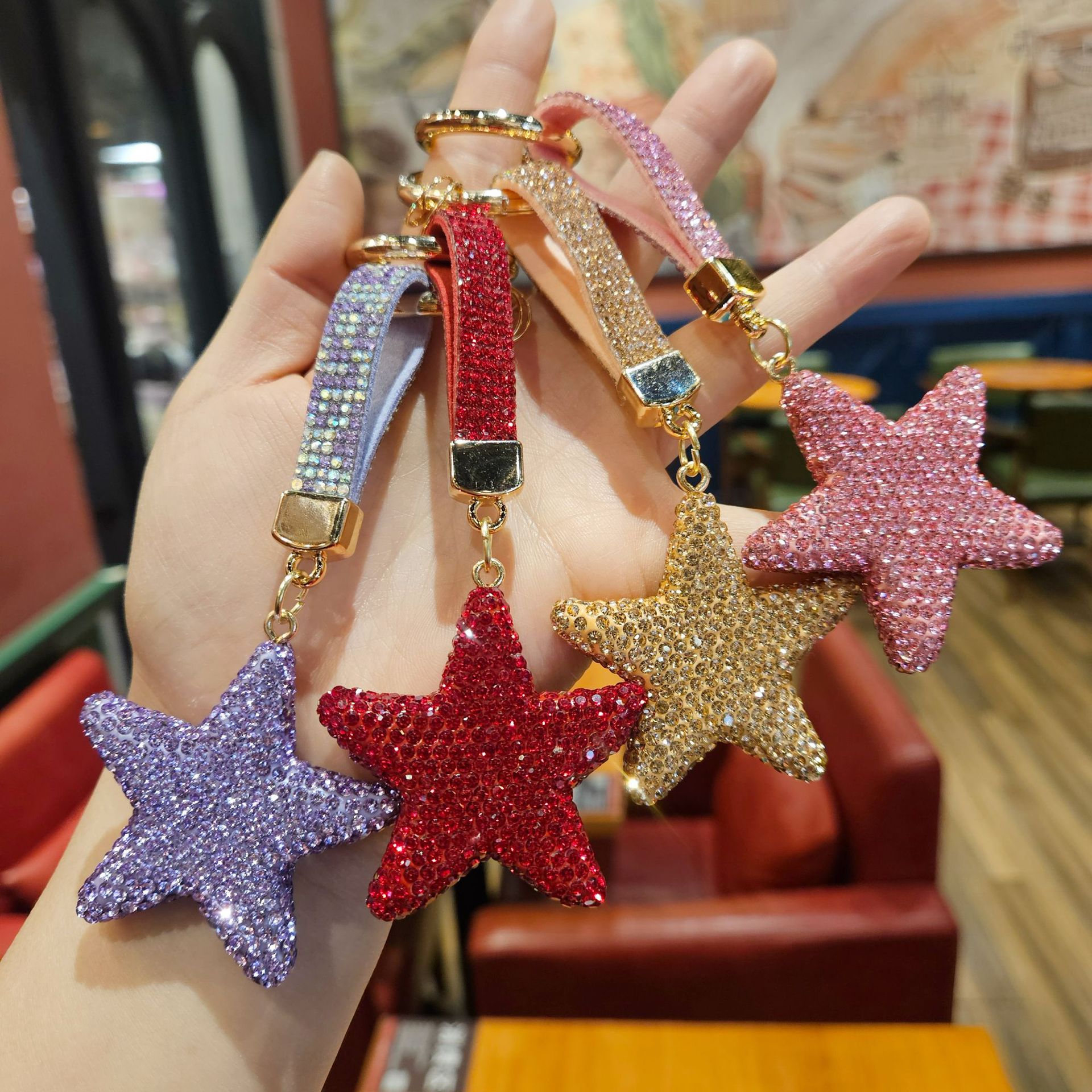 diamond-embedded five-pointed star [random mixed hair], diamond-embedded five-pointed star [red