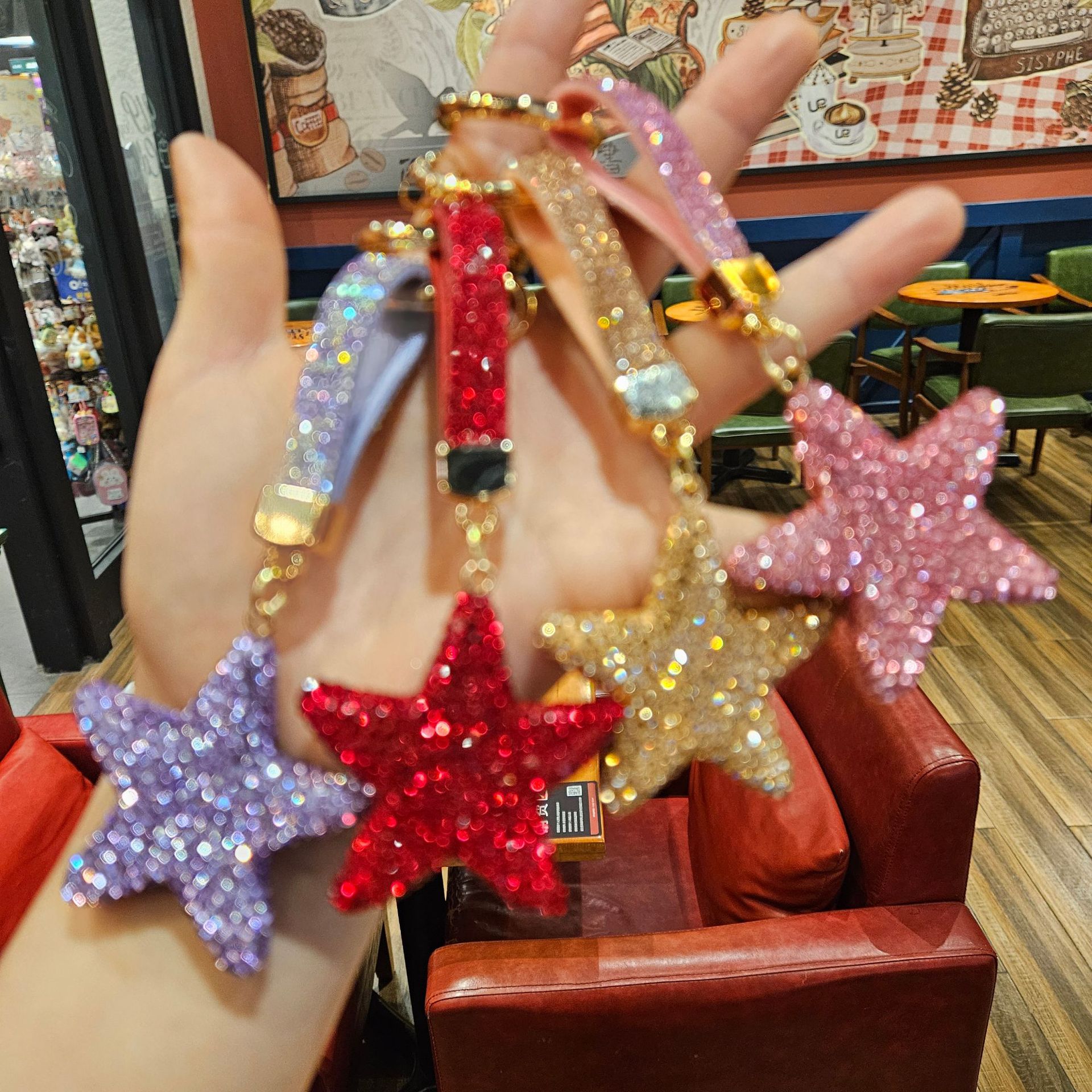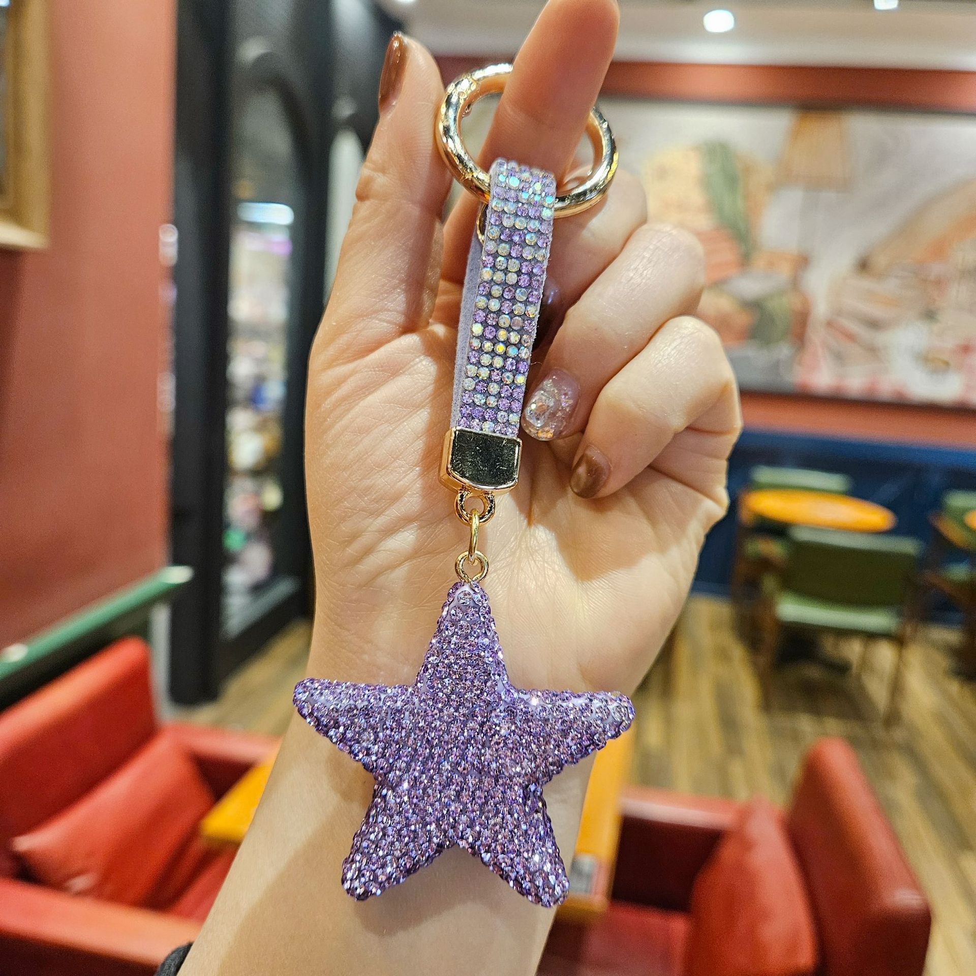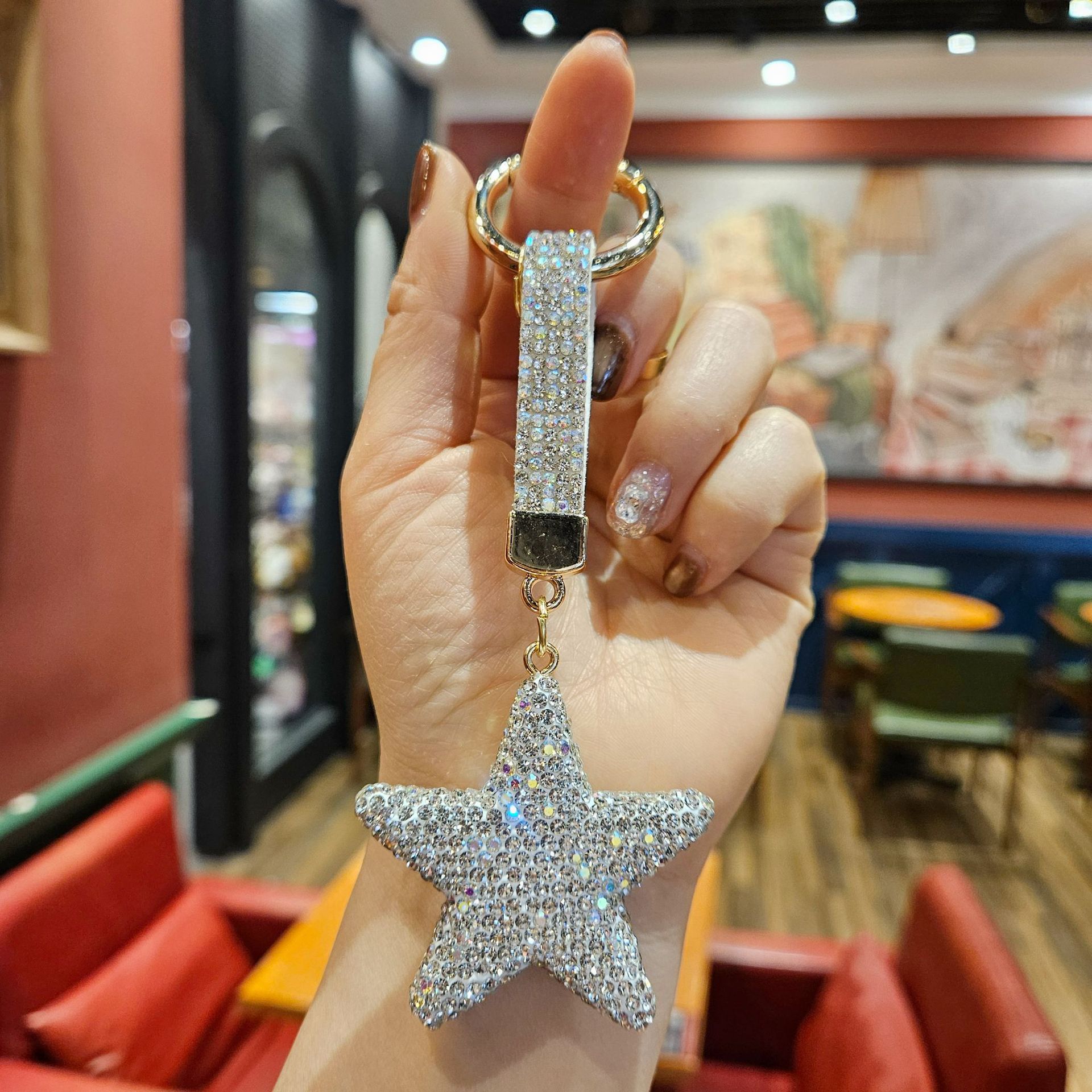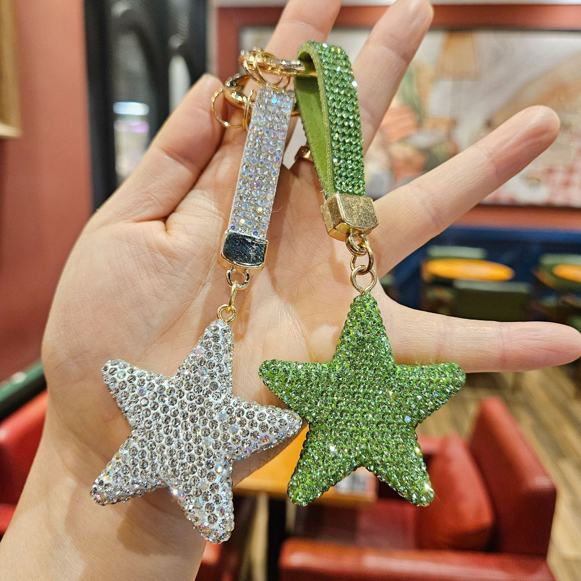 diamond-embedded five-pointed star [random mixed hair], diamond-embedded five-pointed star [red