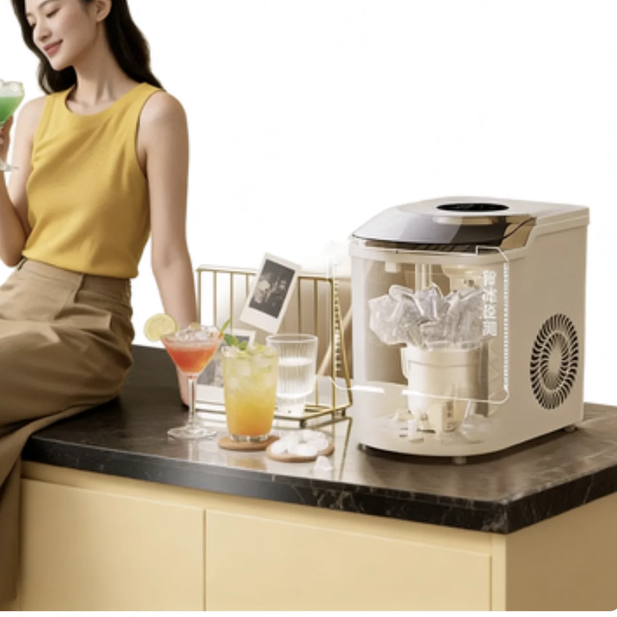 Compact Design: Space-saving for efficient ice production.