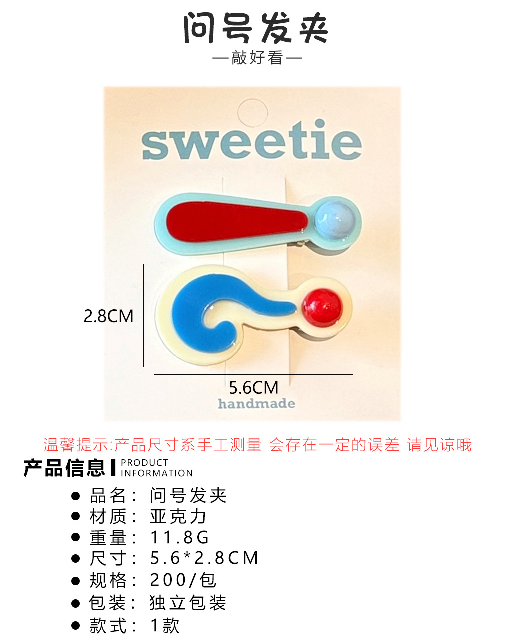 1# question mark hair clip-set