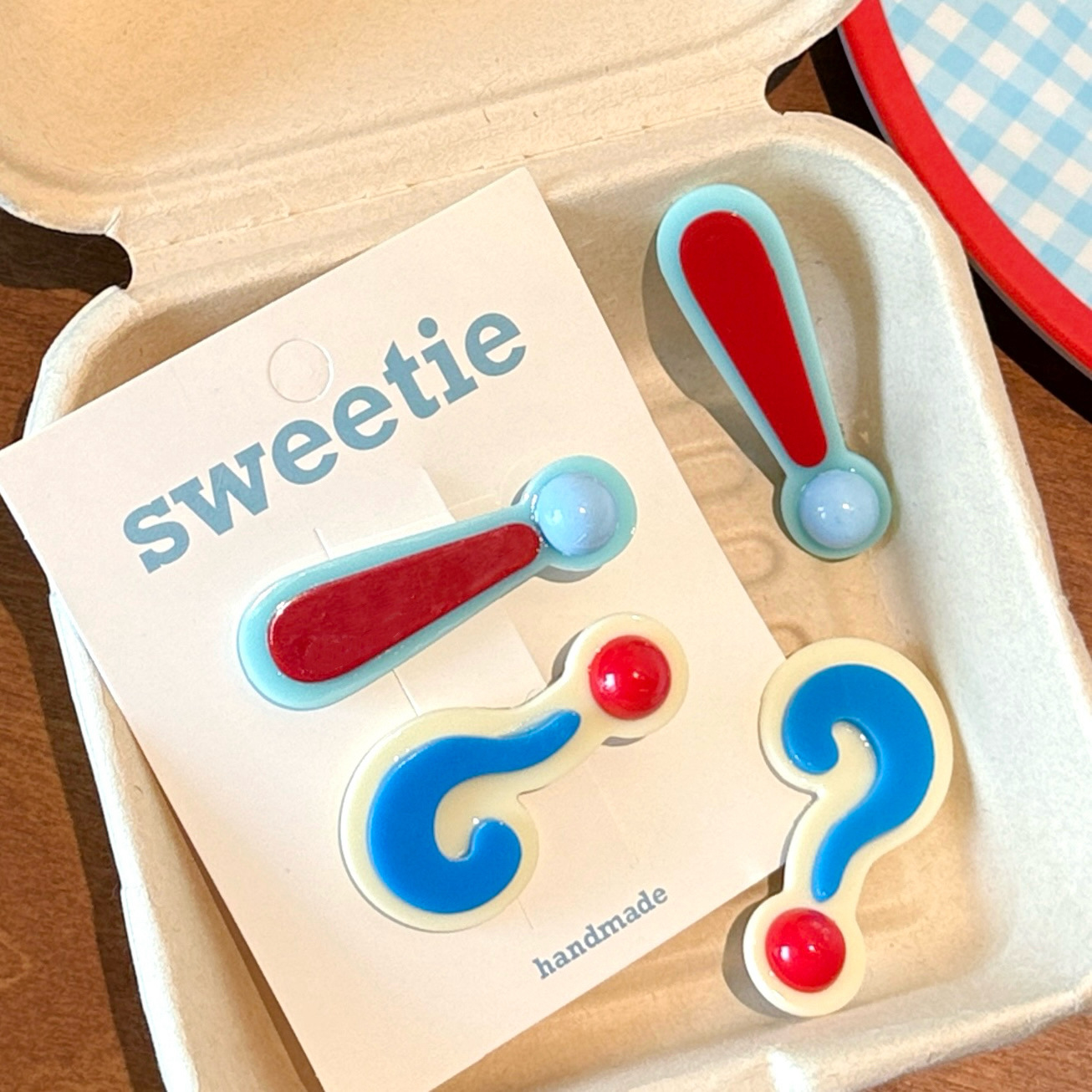 2# plaid style-question mark exclamation point barrettes