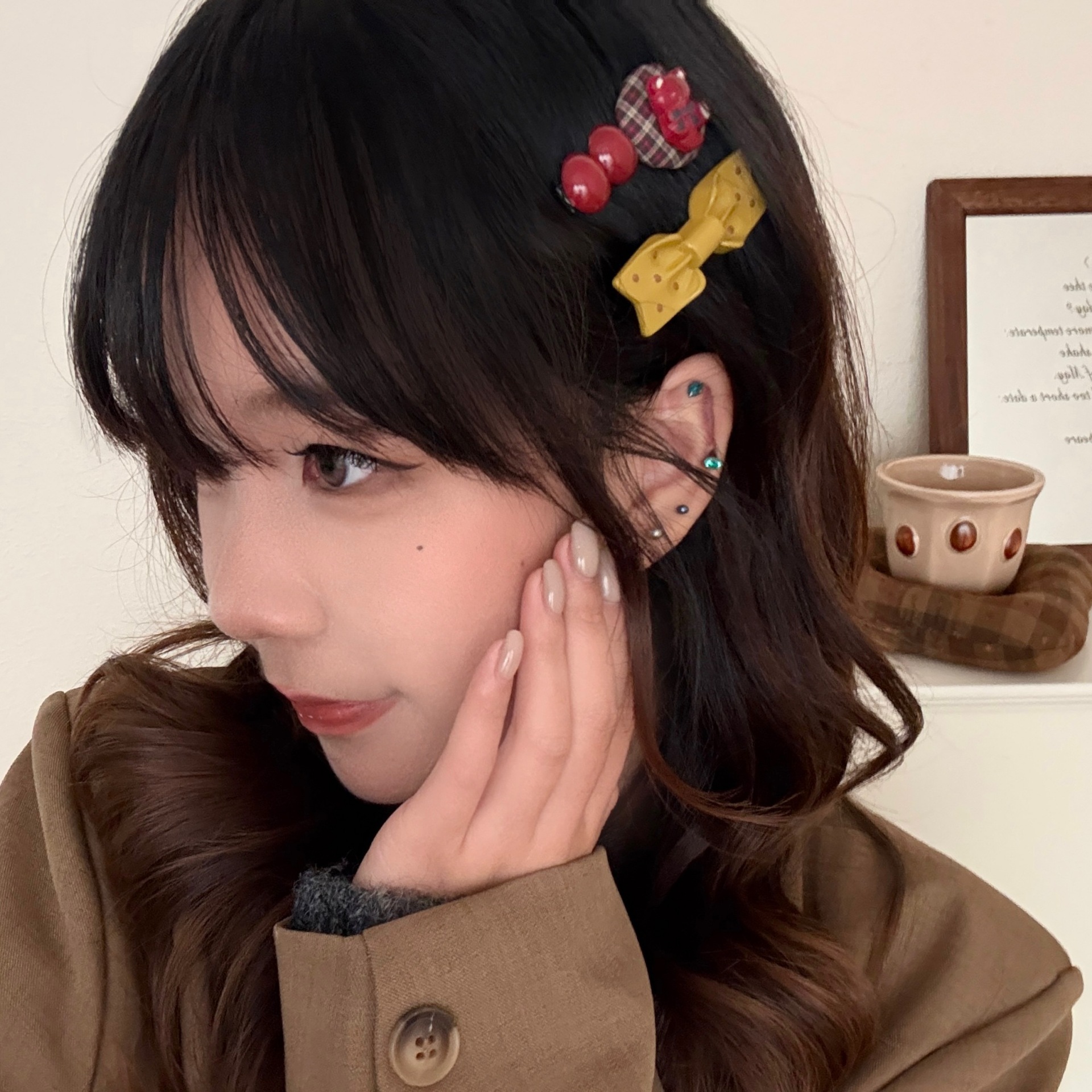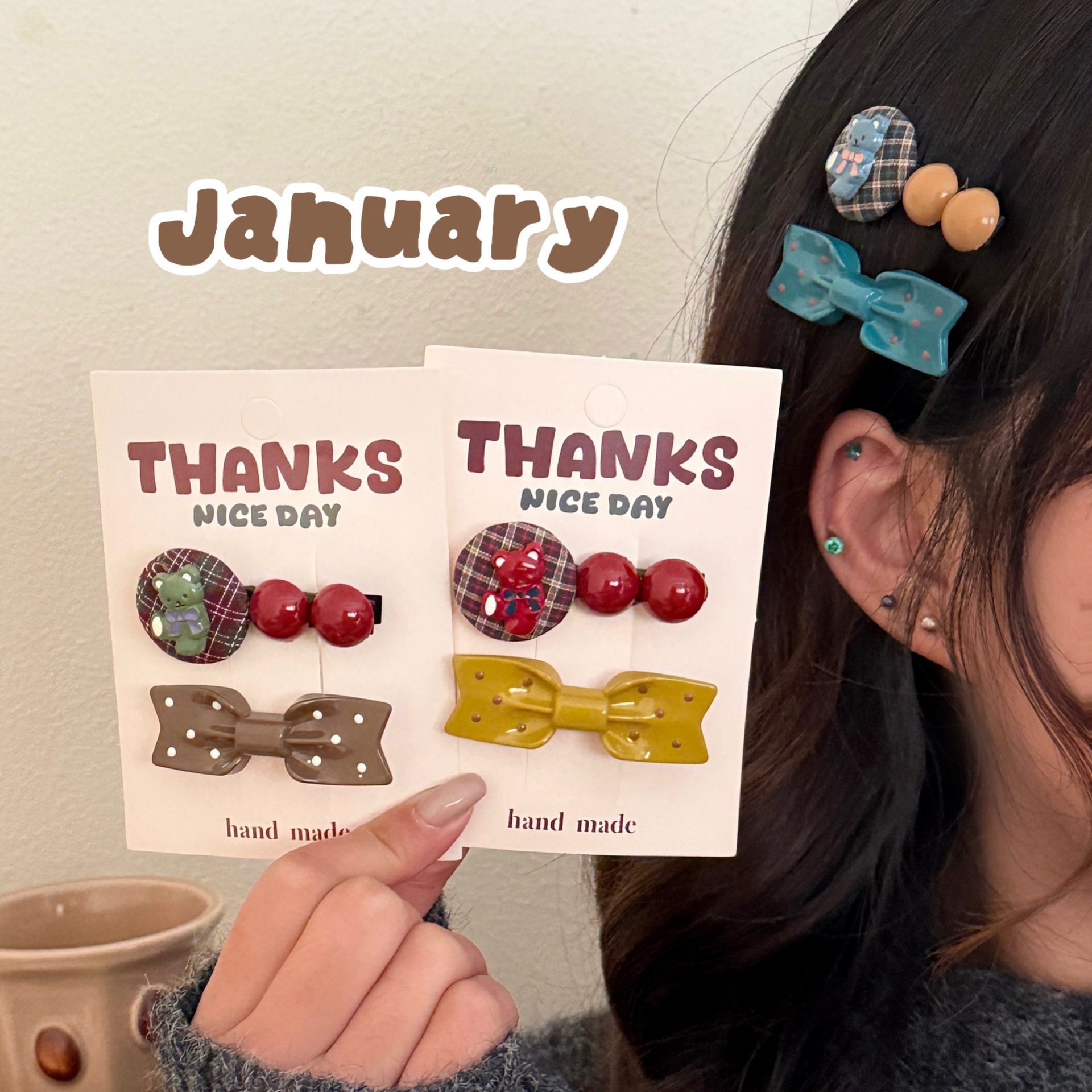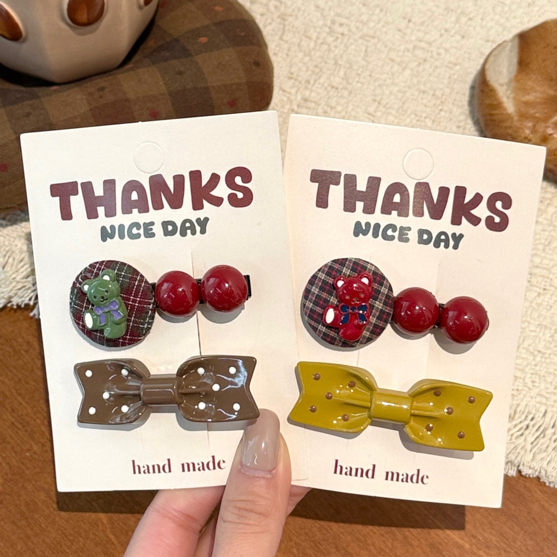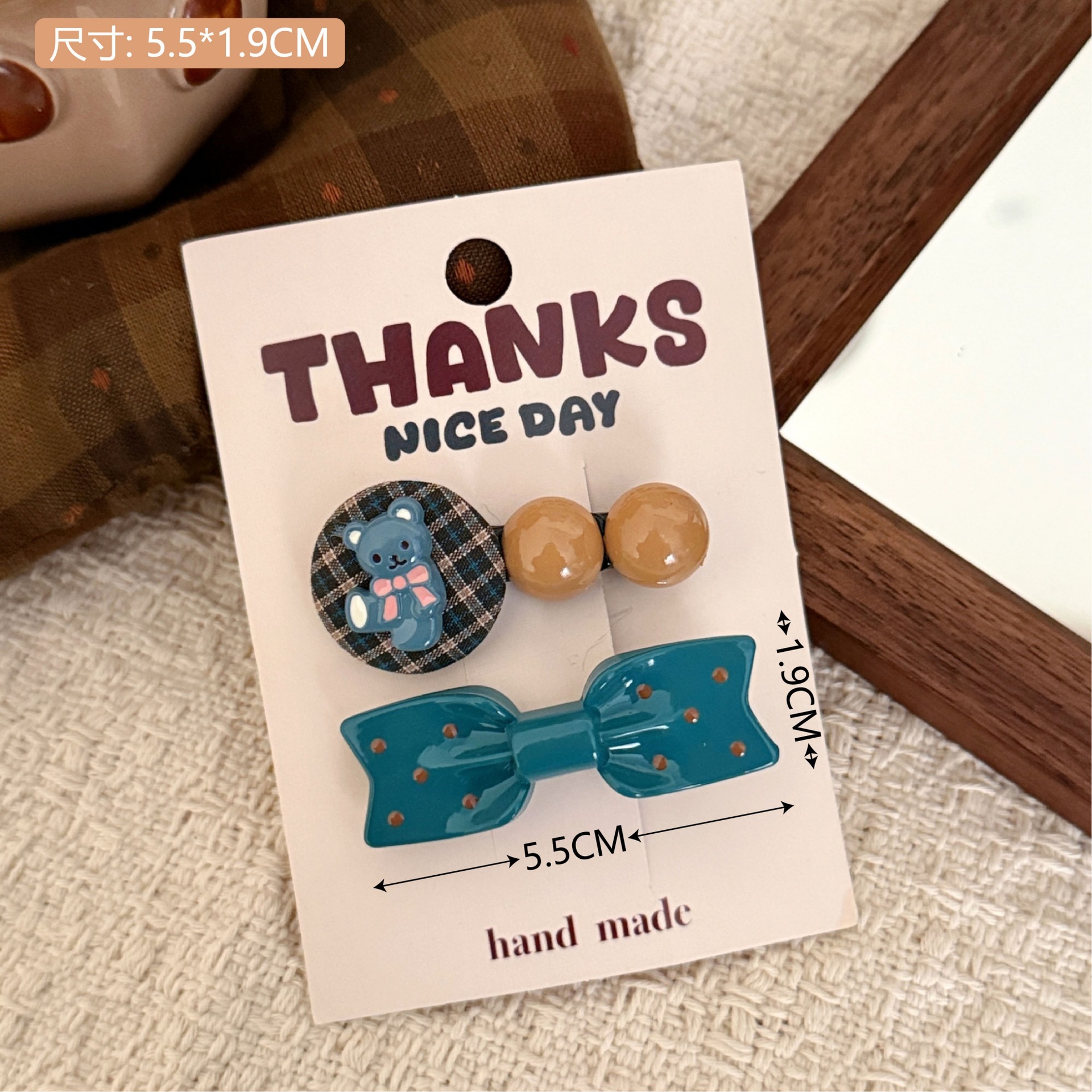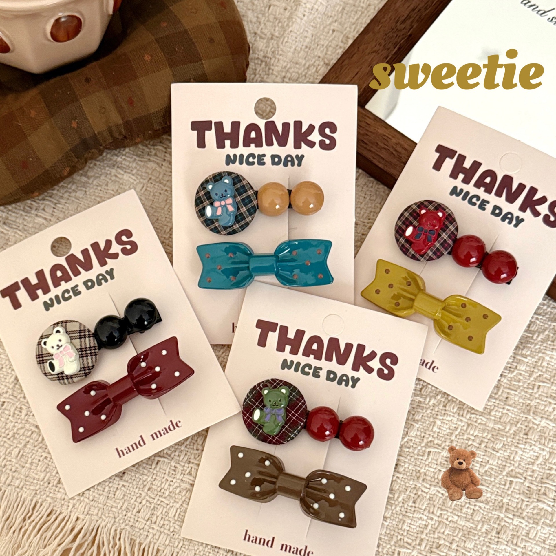 4# coffee-colored bow little bear barrettes set