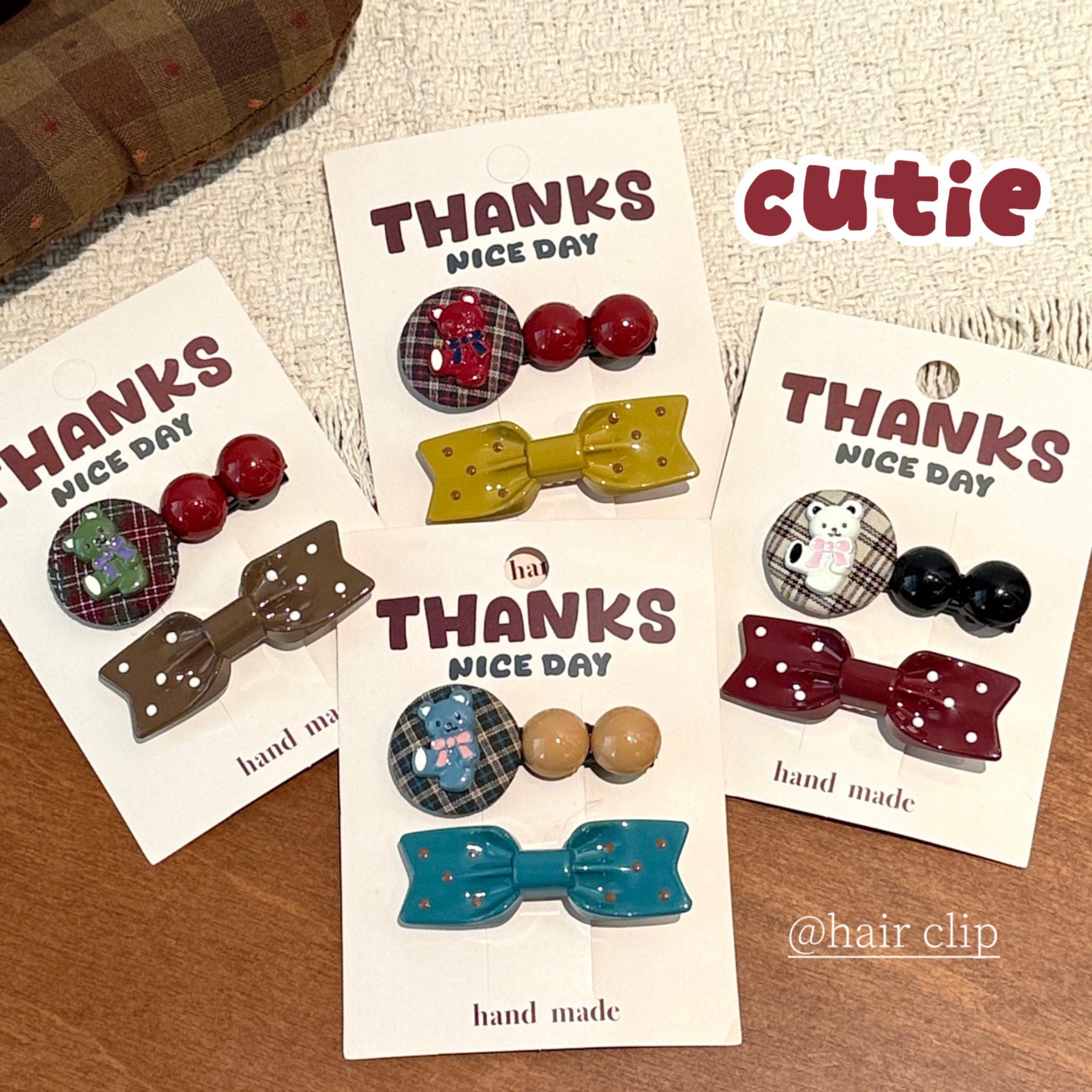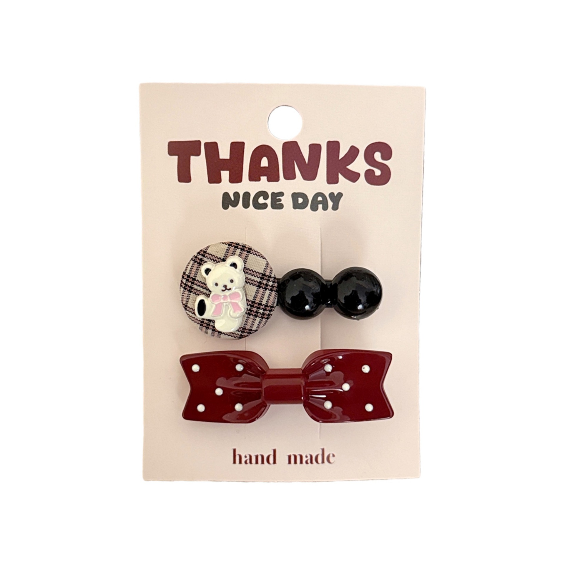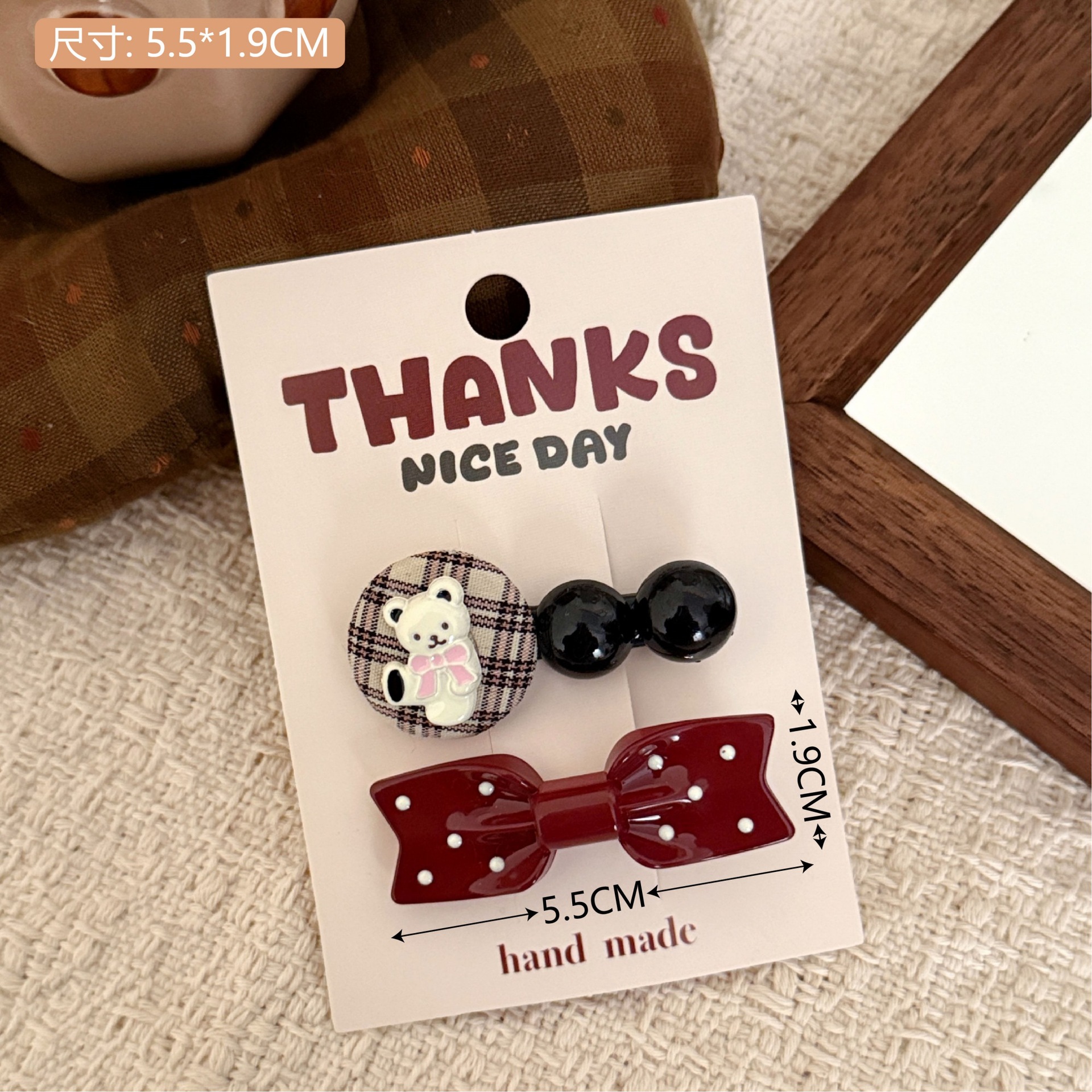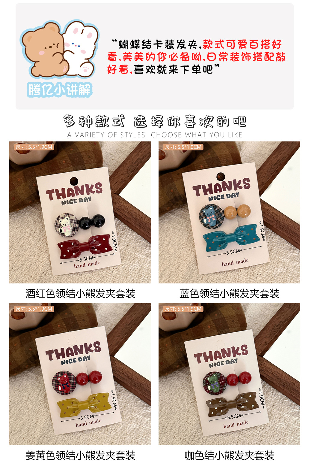 1# burgundy bow tie little bear barrettes set