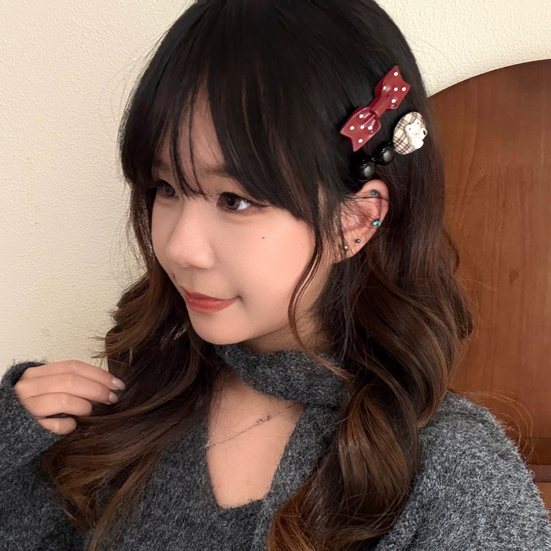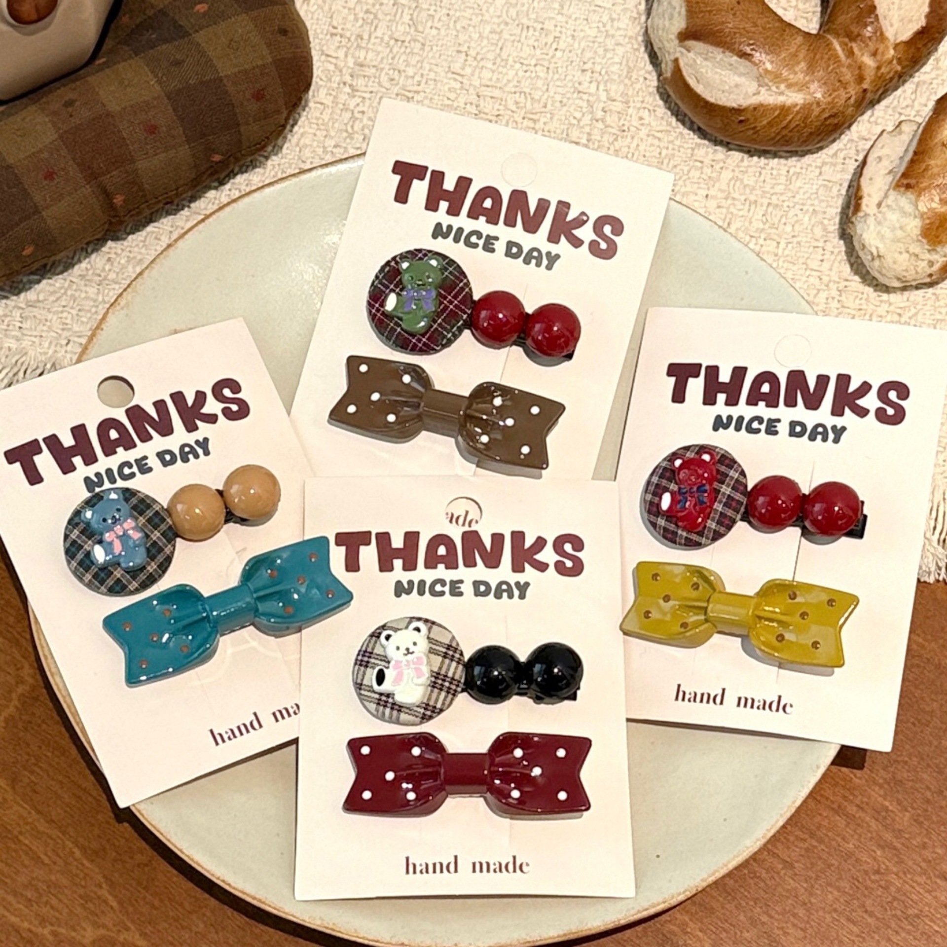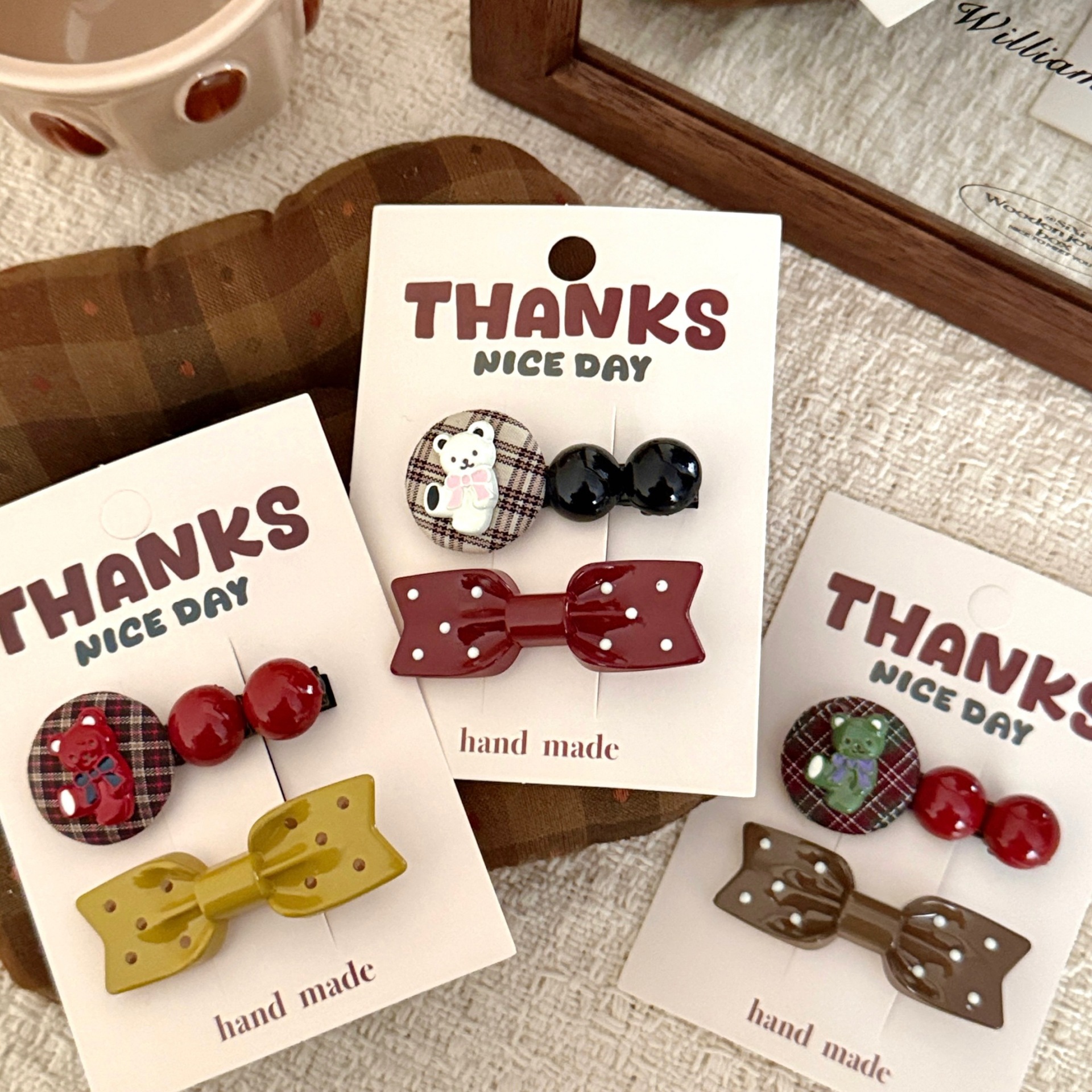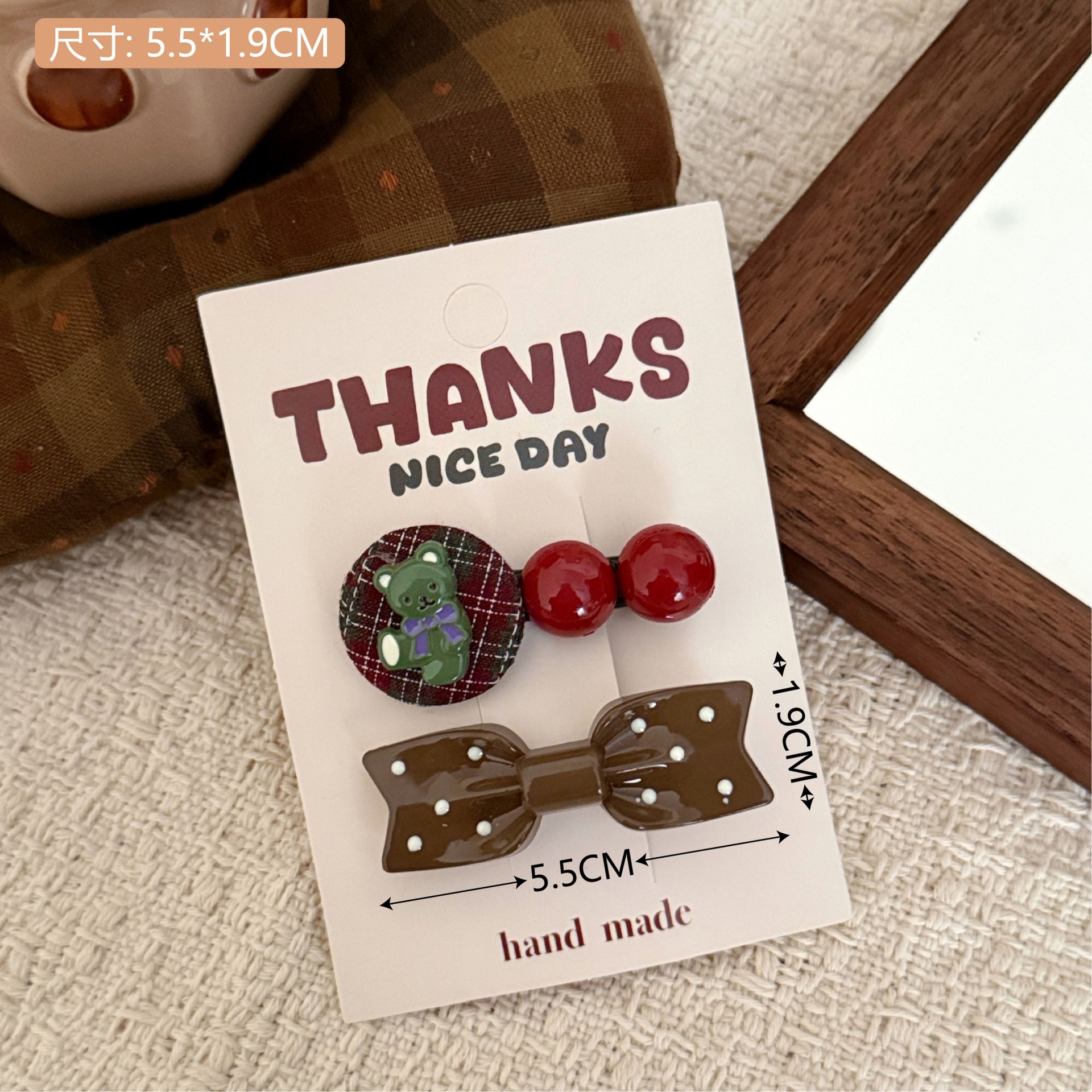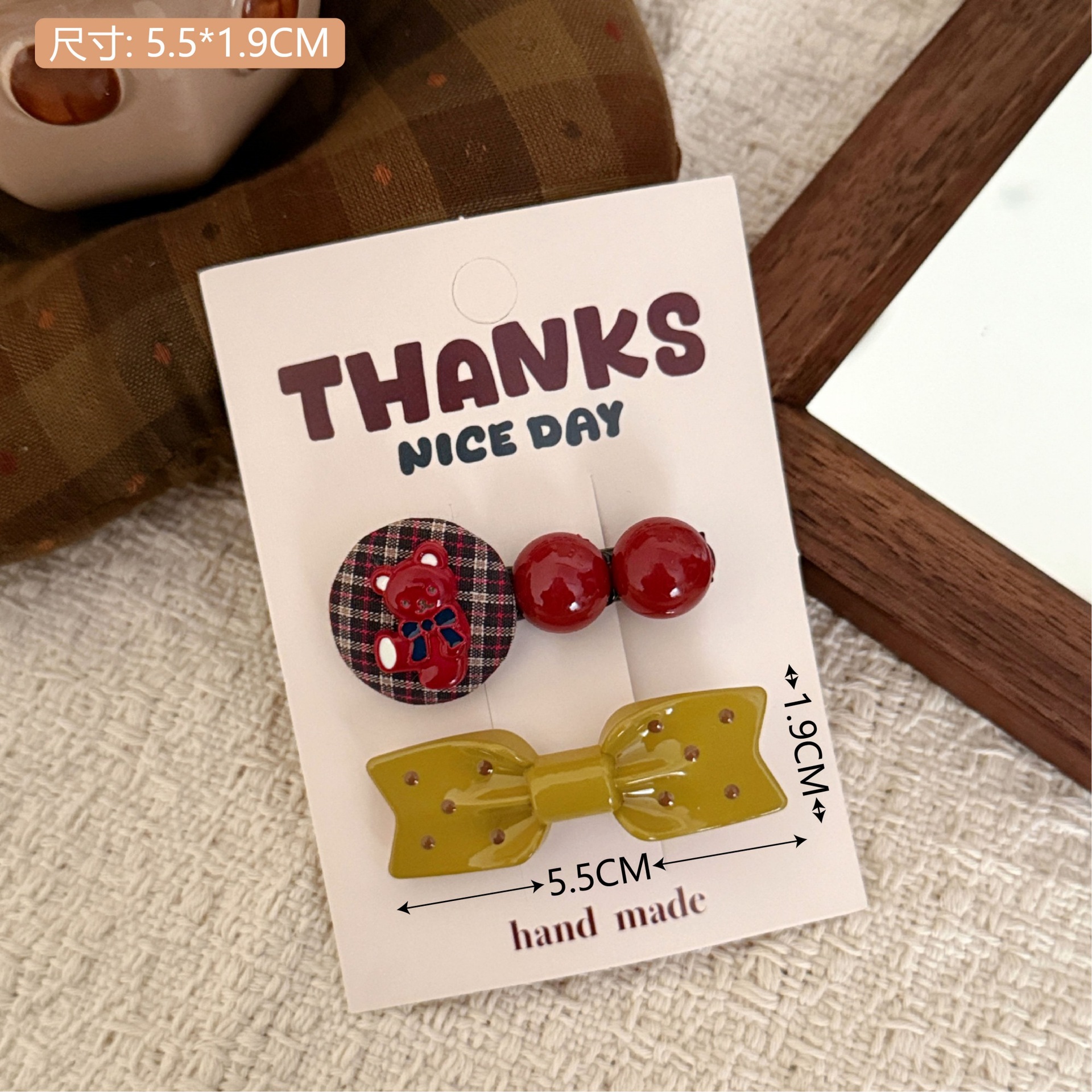 1# burgundy bow tie little bear barrettes set