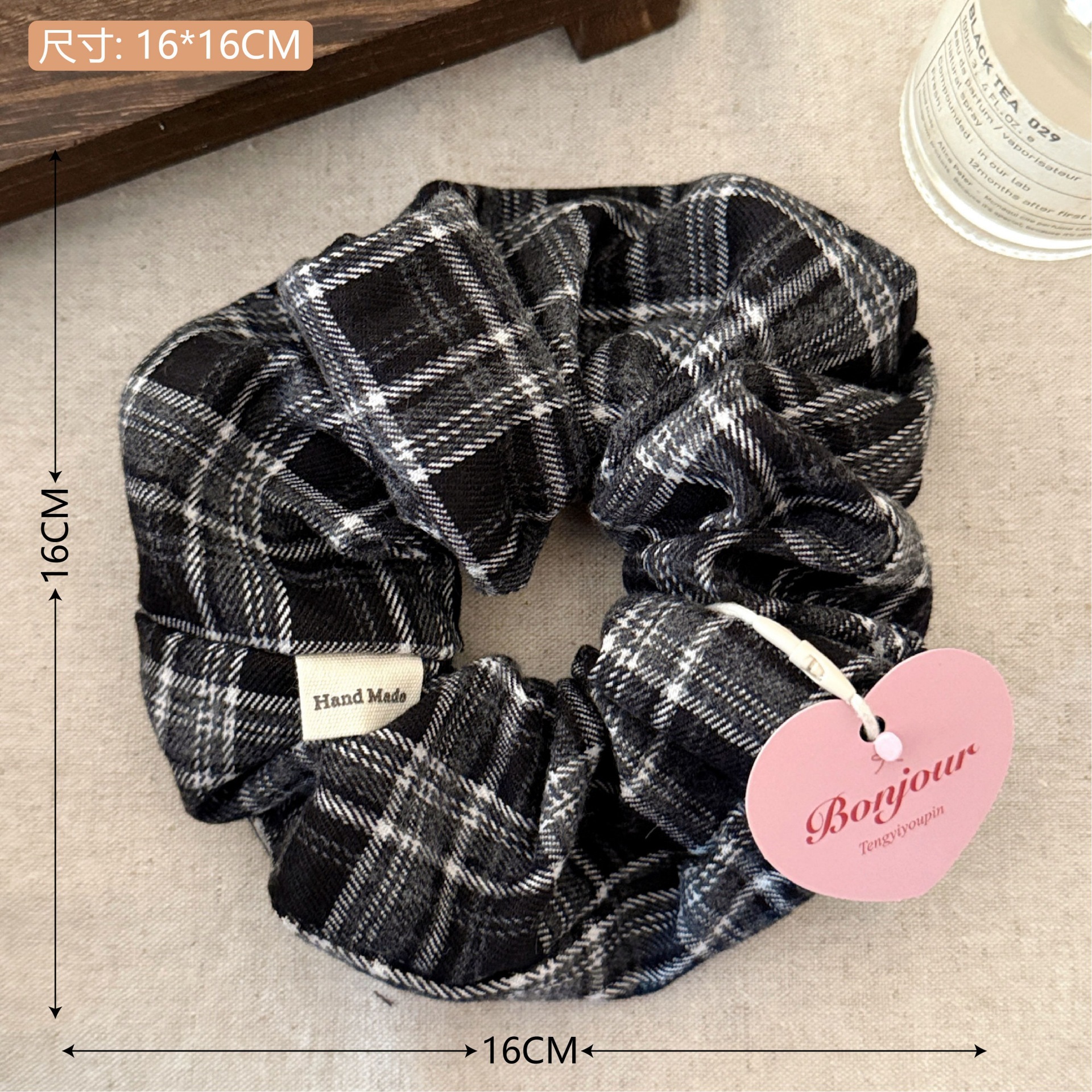 19# green plaid hair tie