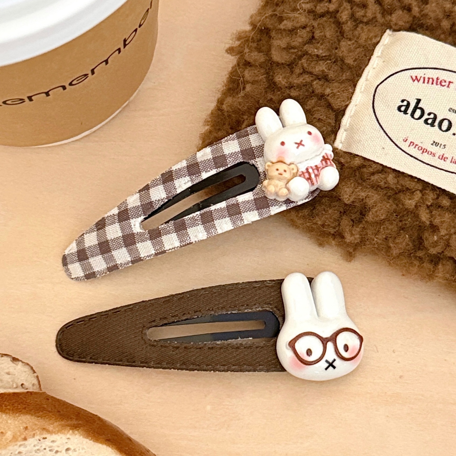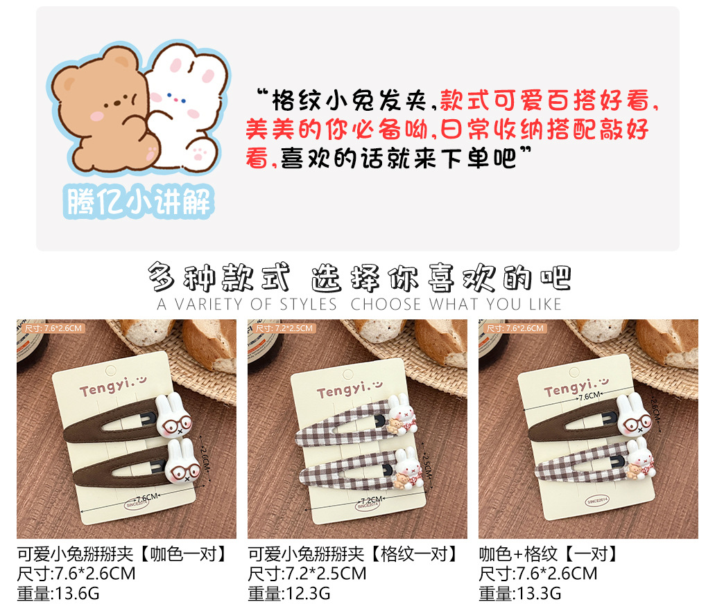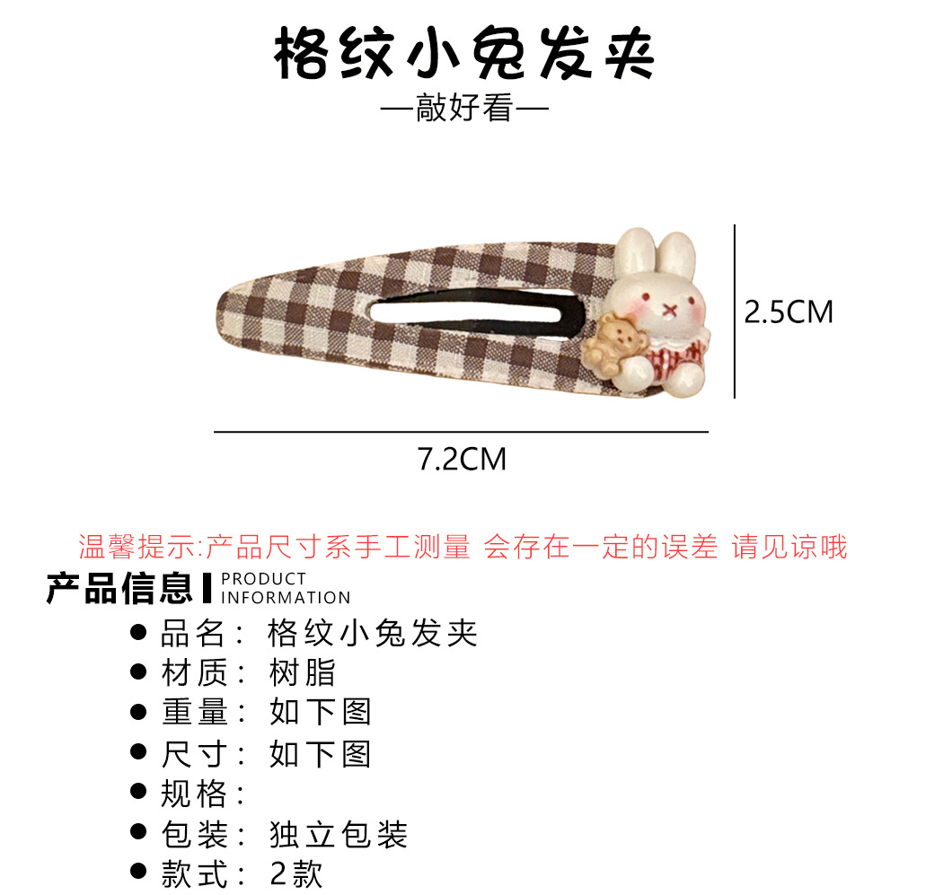 2# cute little rabbit clip [plaid pair]