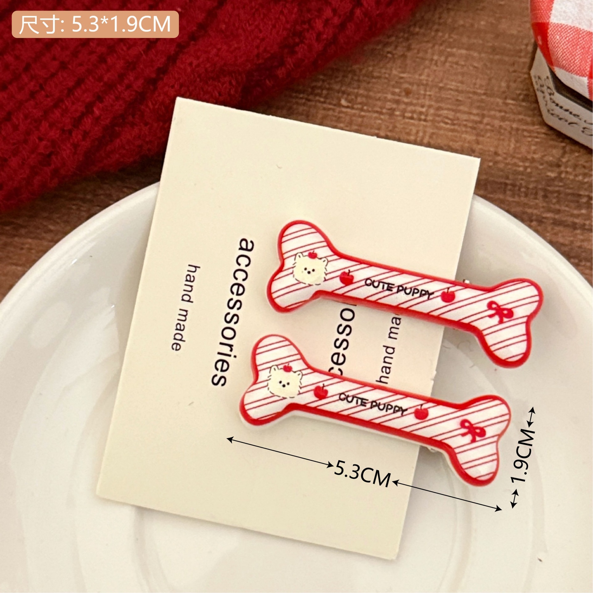 4# red series plaid letter bone hair barrettes