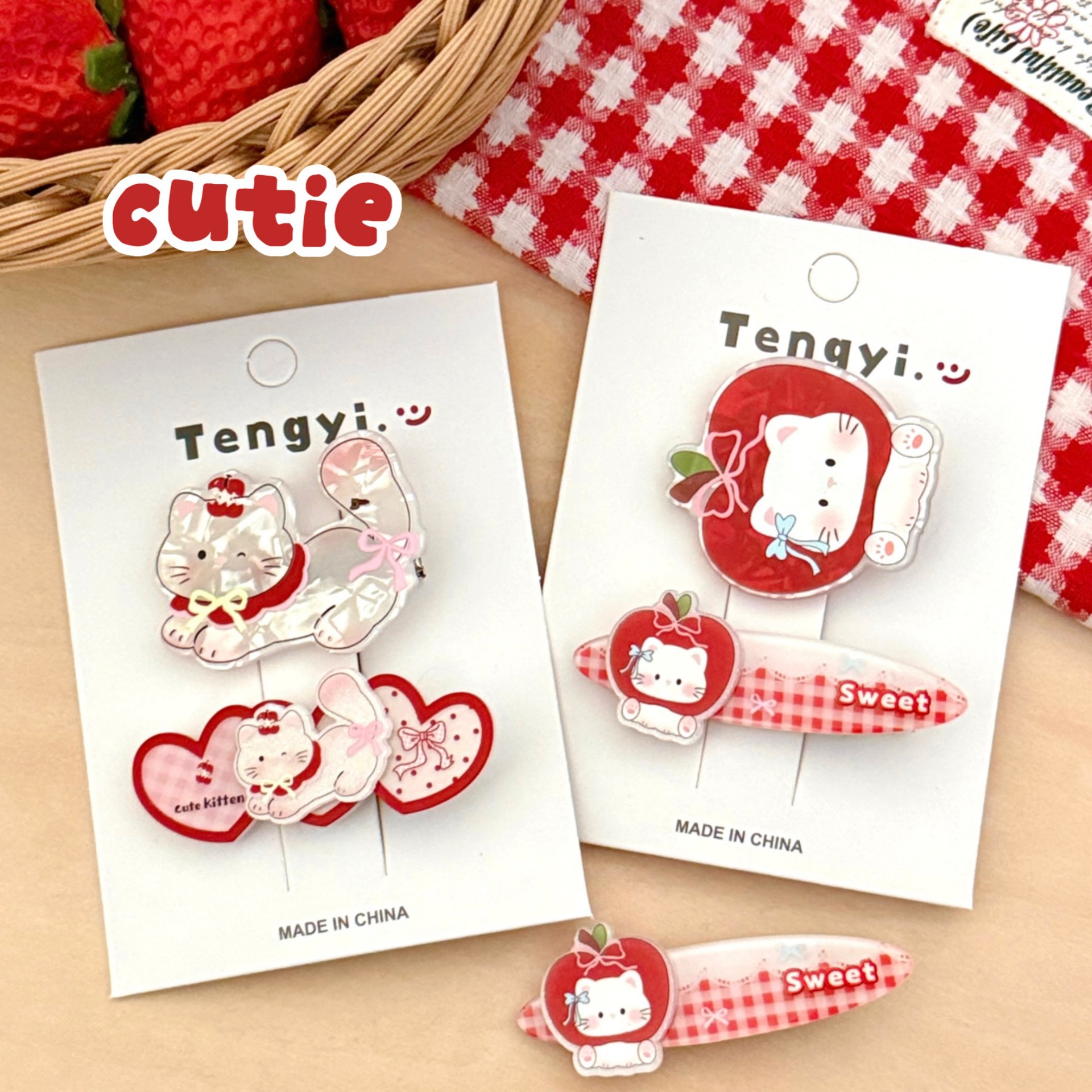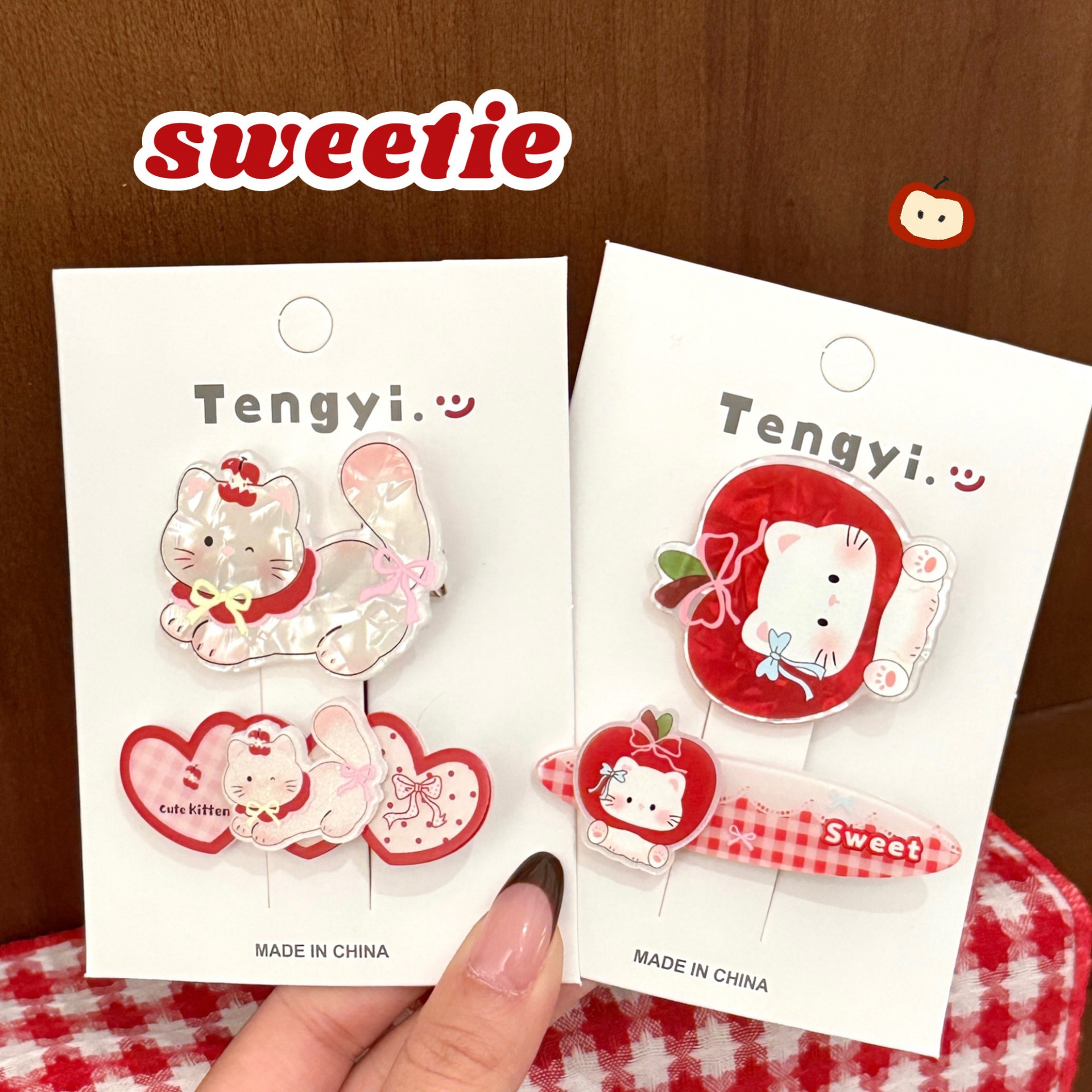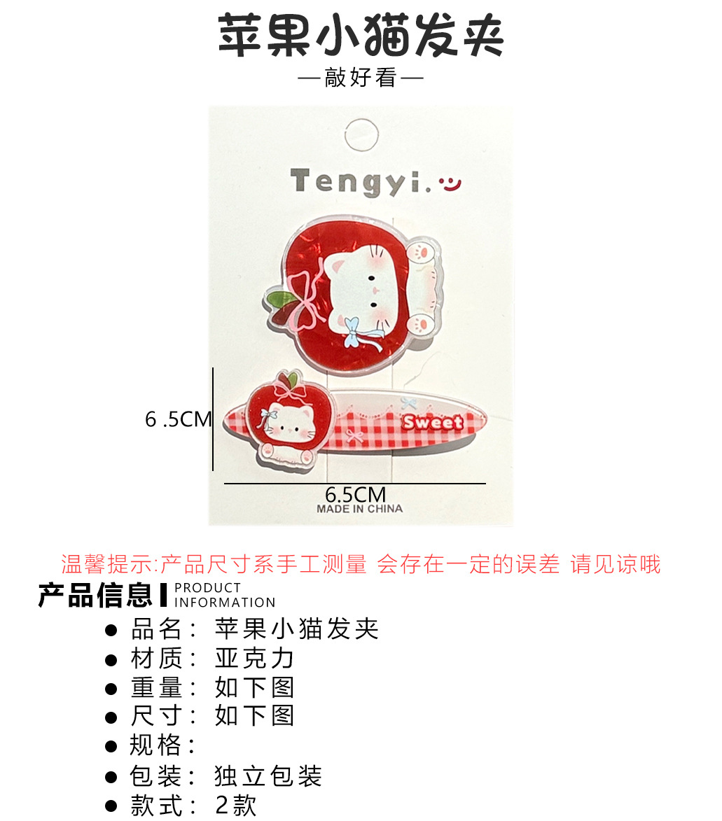 1# apple kitten barrettes