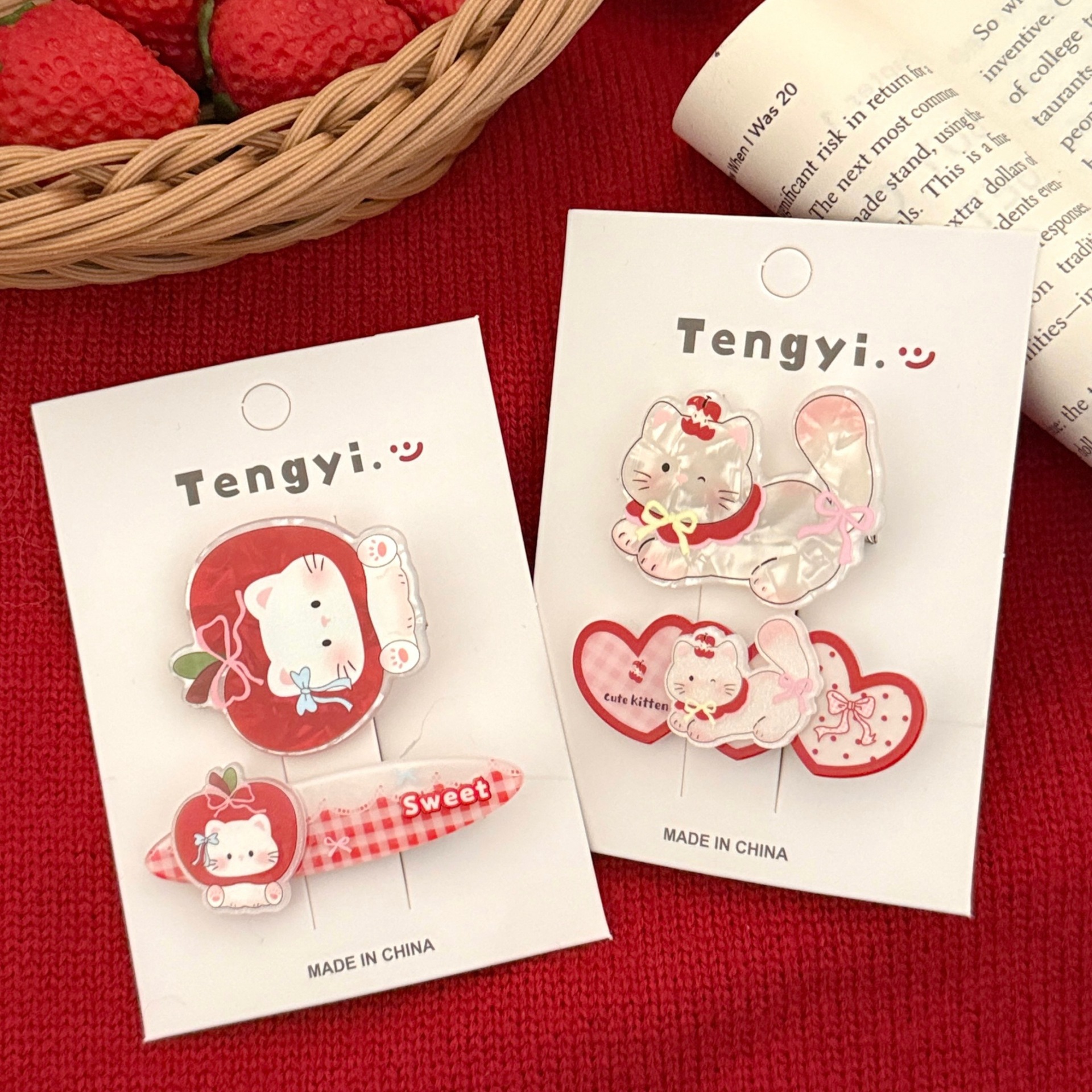 2# red cat barrettes set