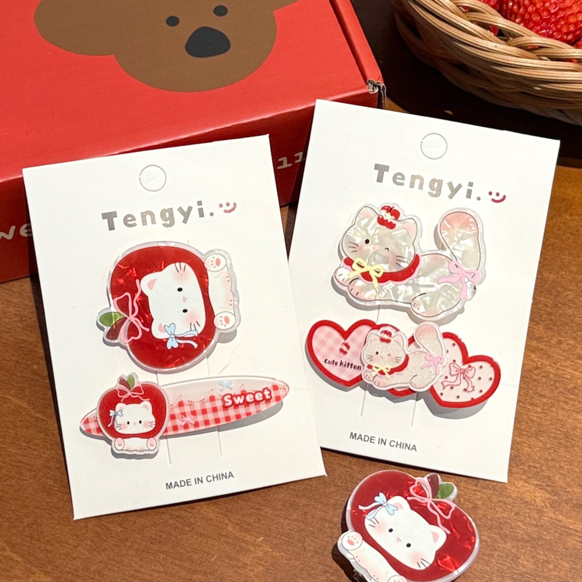 1# red series little bear barrettes set