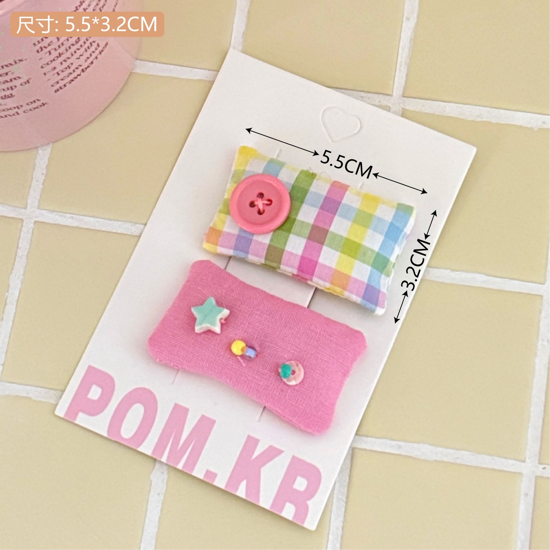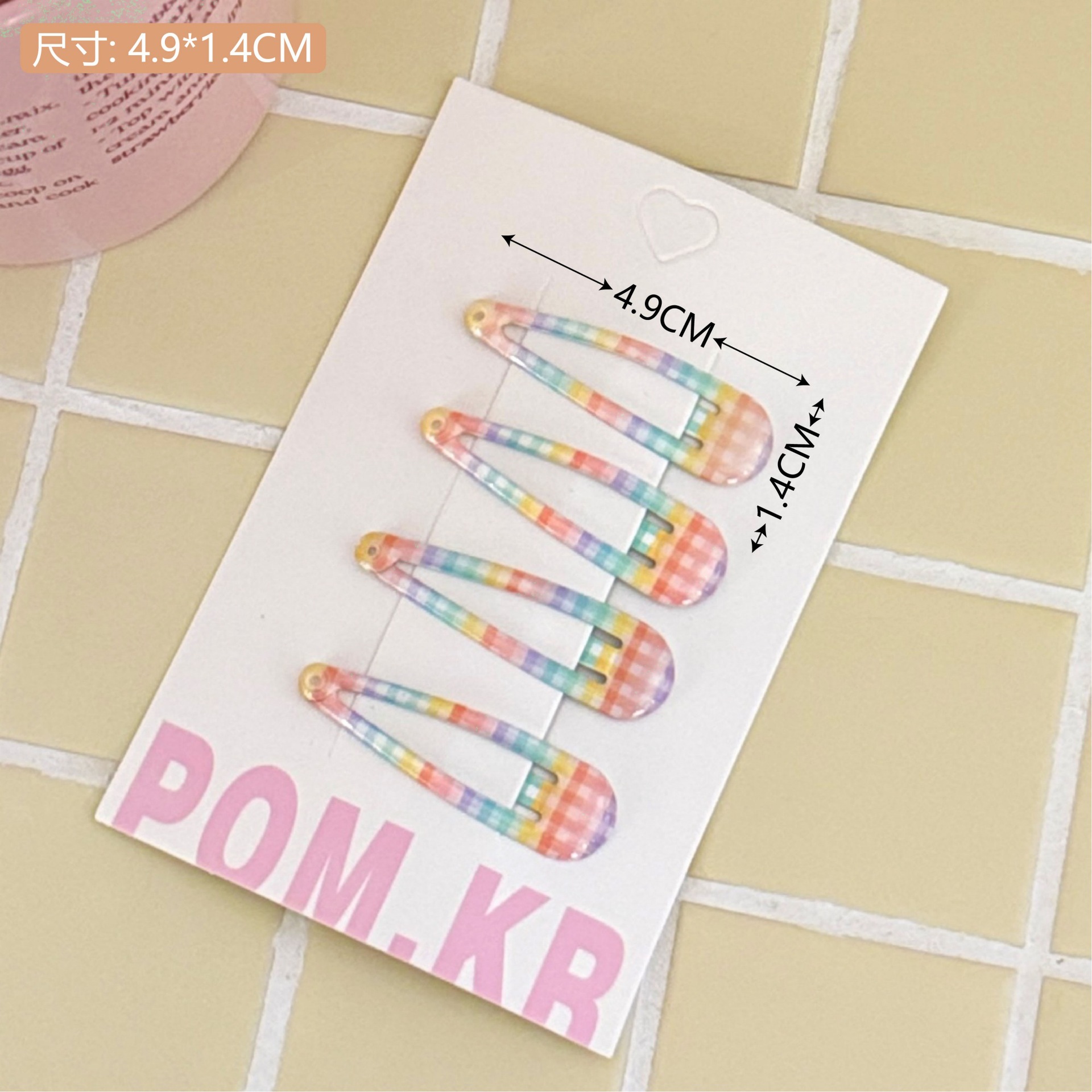 6# pink plaid rectangular barrettes