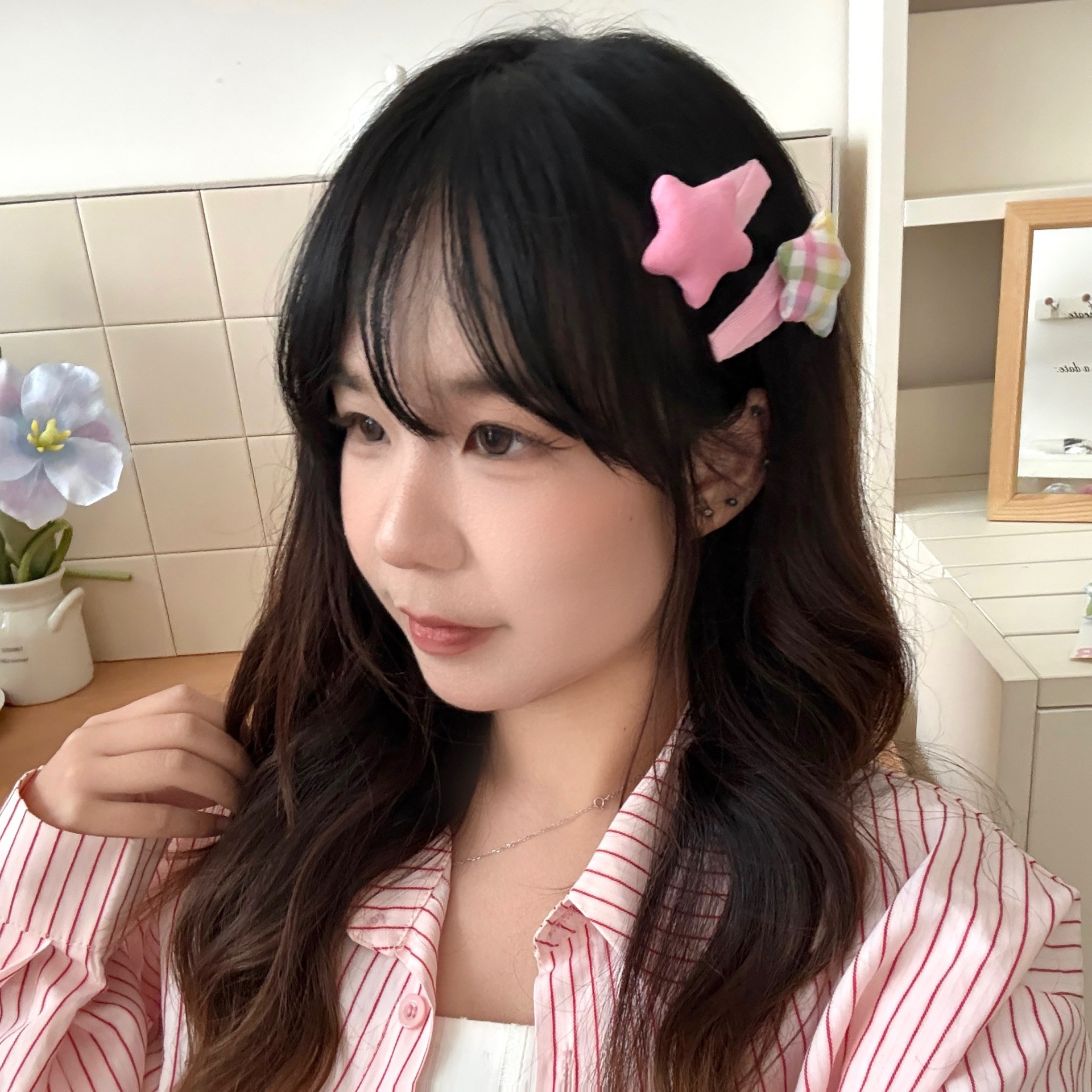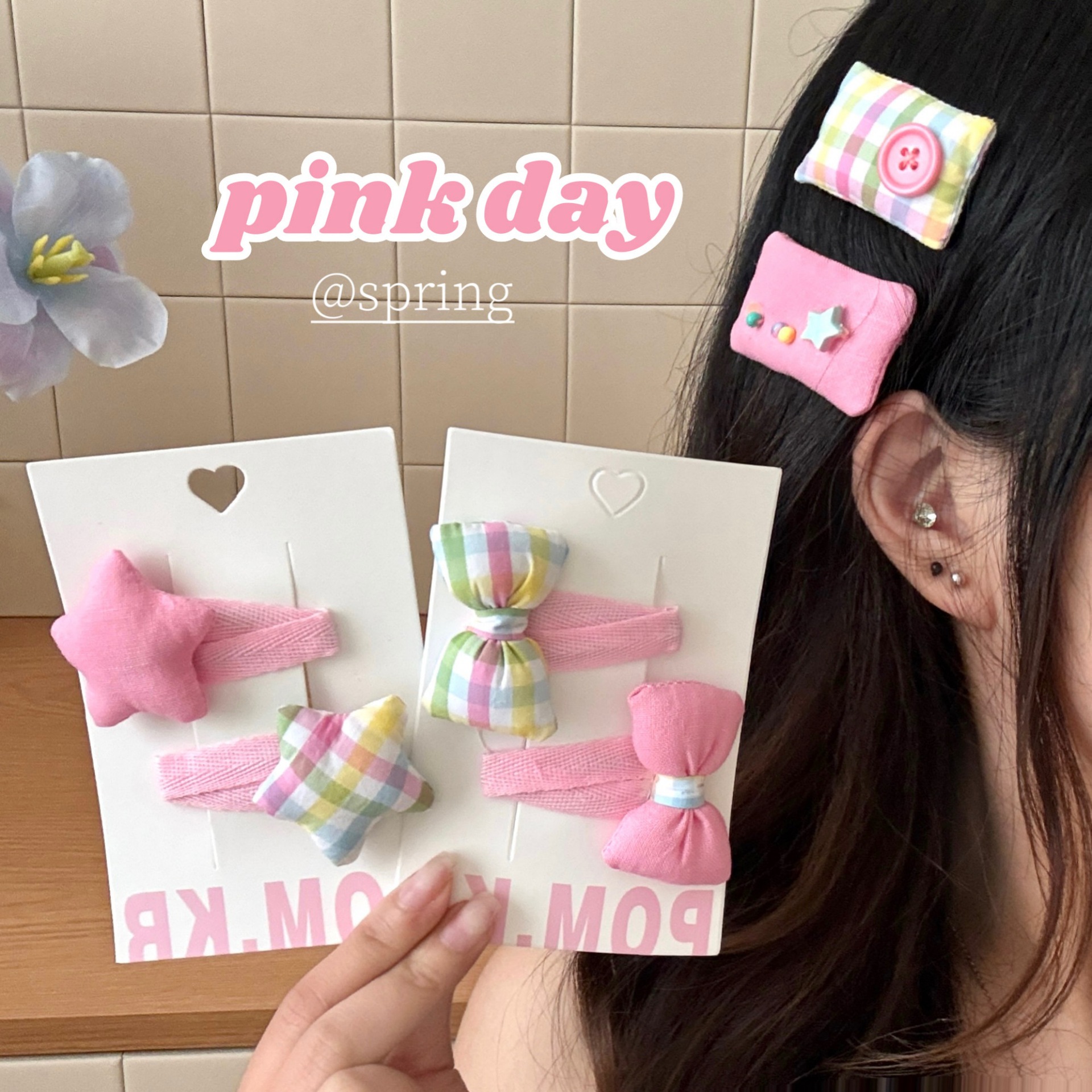 5# pink plaid star hairpin