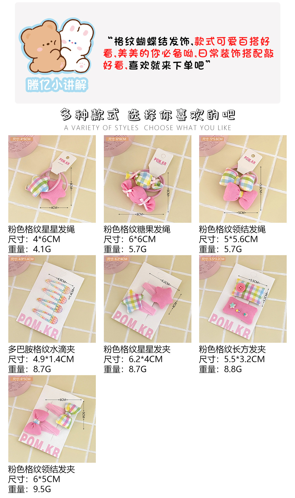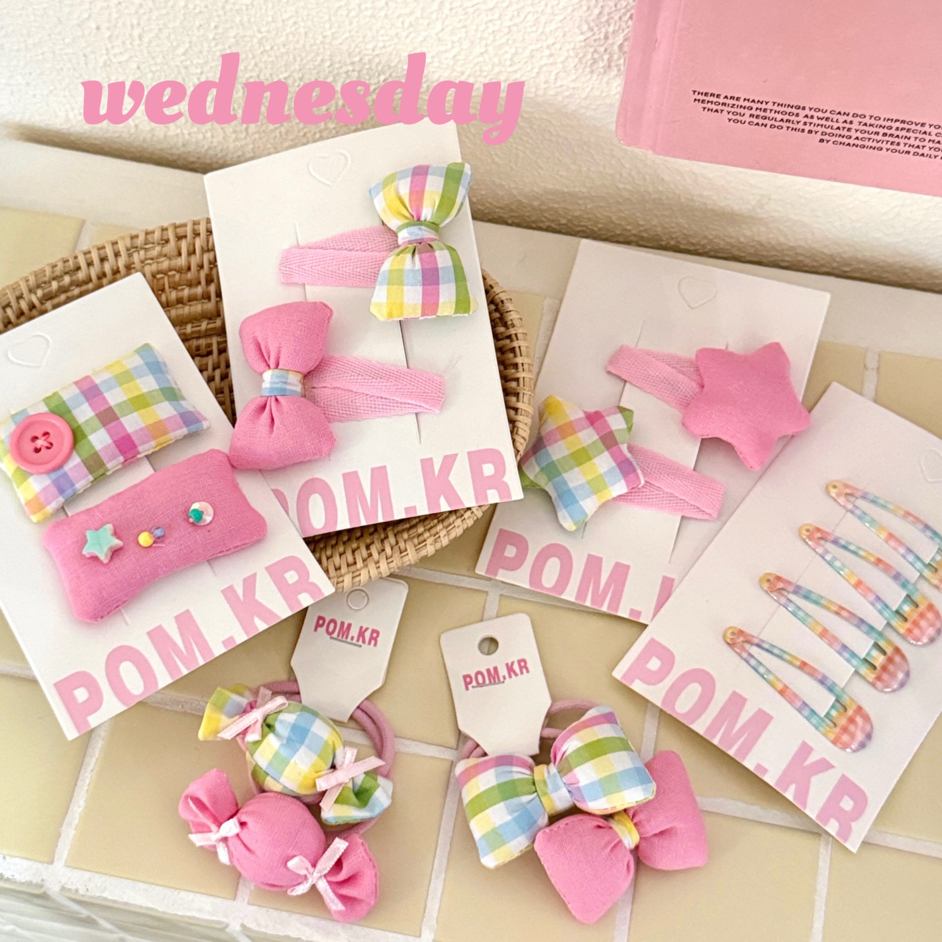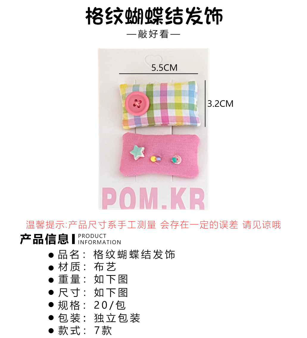 7# pink plaid bow tie barrettes