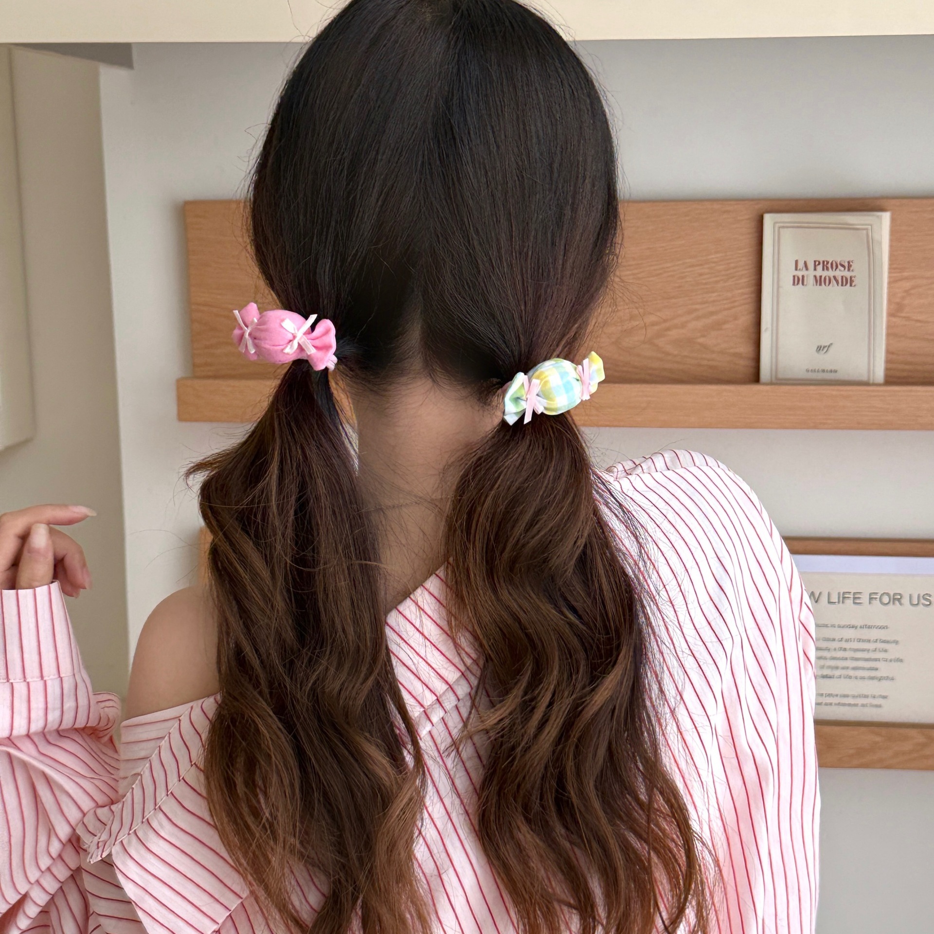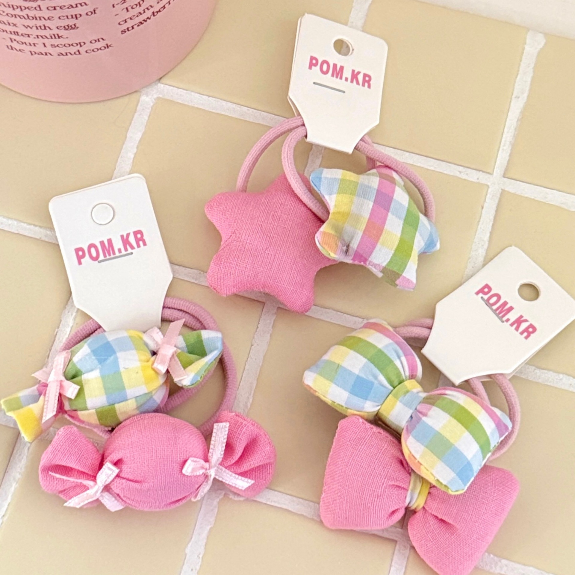2# pink plaid candy hair tie