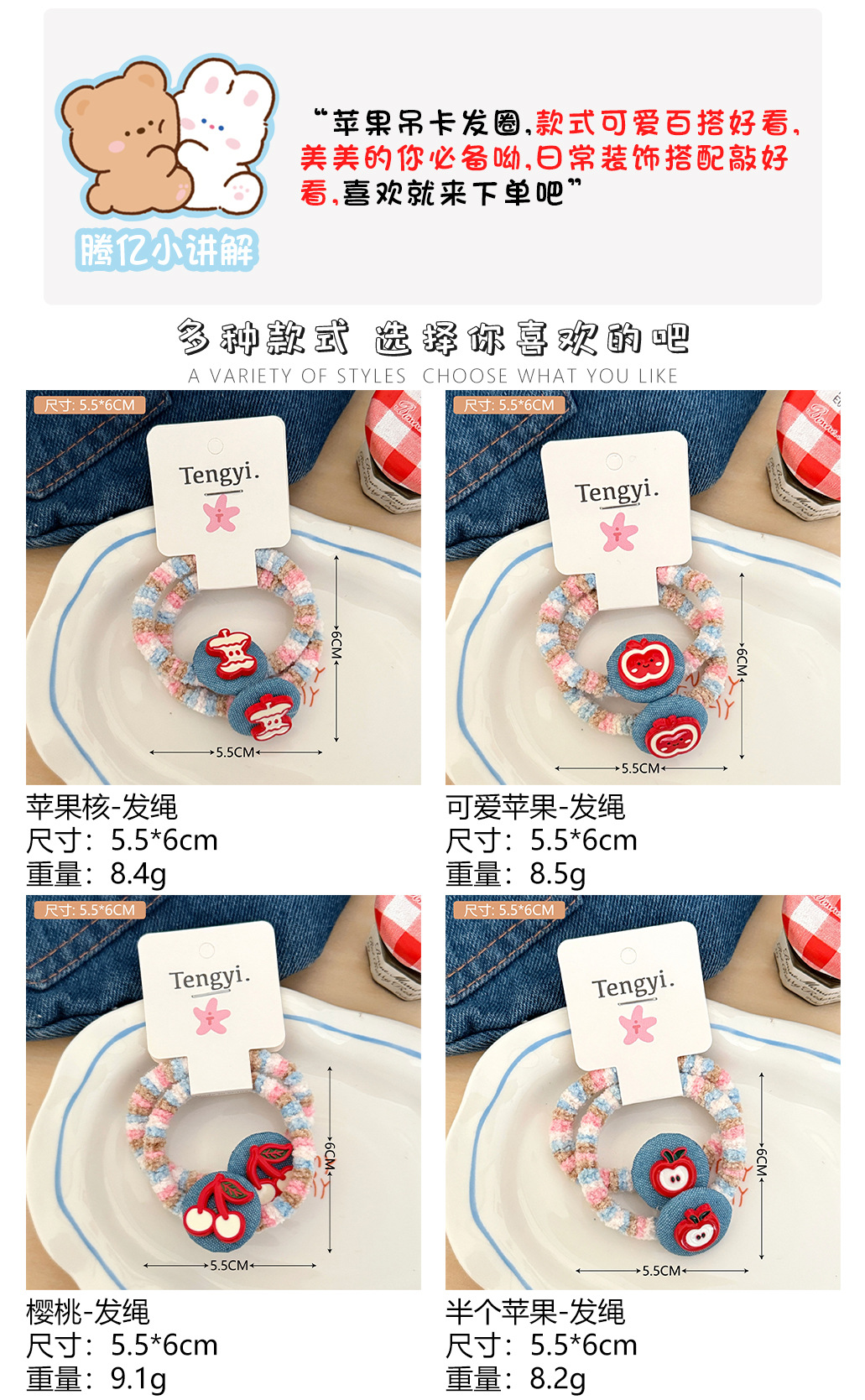 #5 apple little bear hair ties-set of 2
