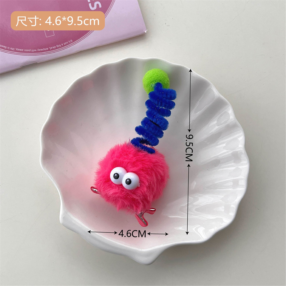 3# rose-red fluffy barrettes