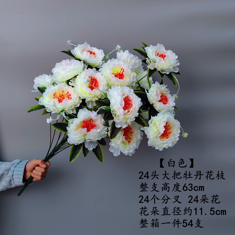 7 large peony stems-white