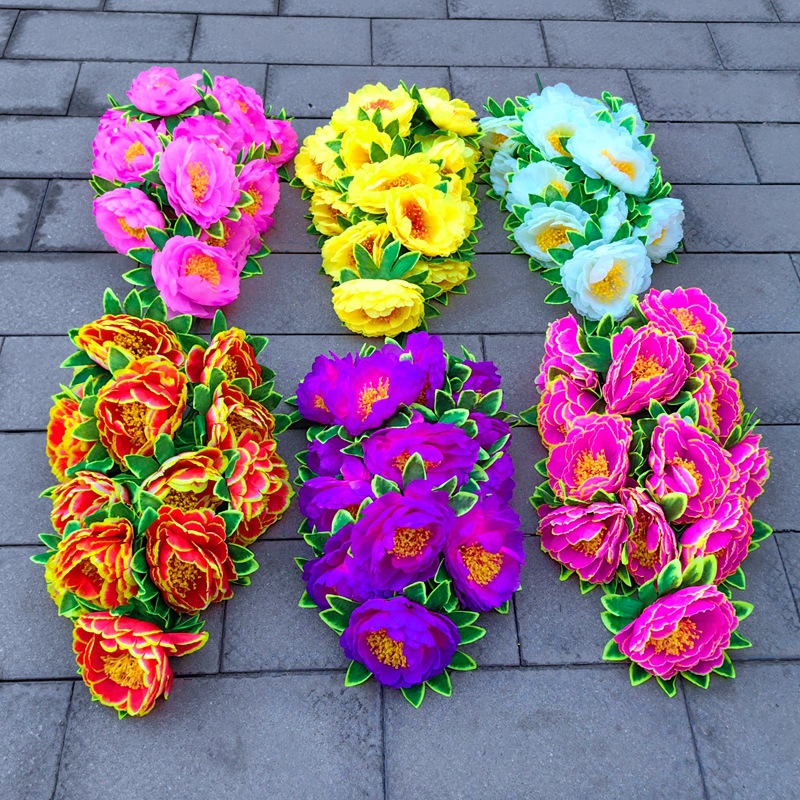 13 headbands with peony blossoms-yellow