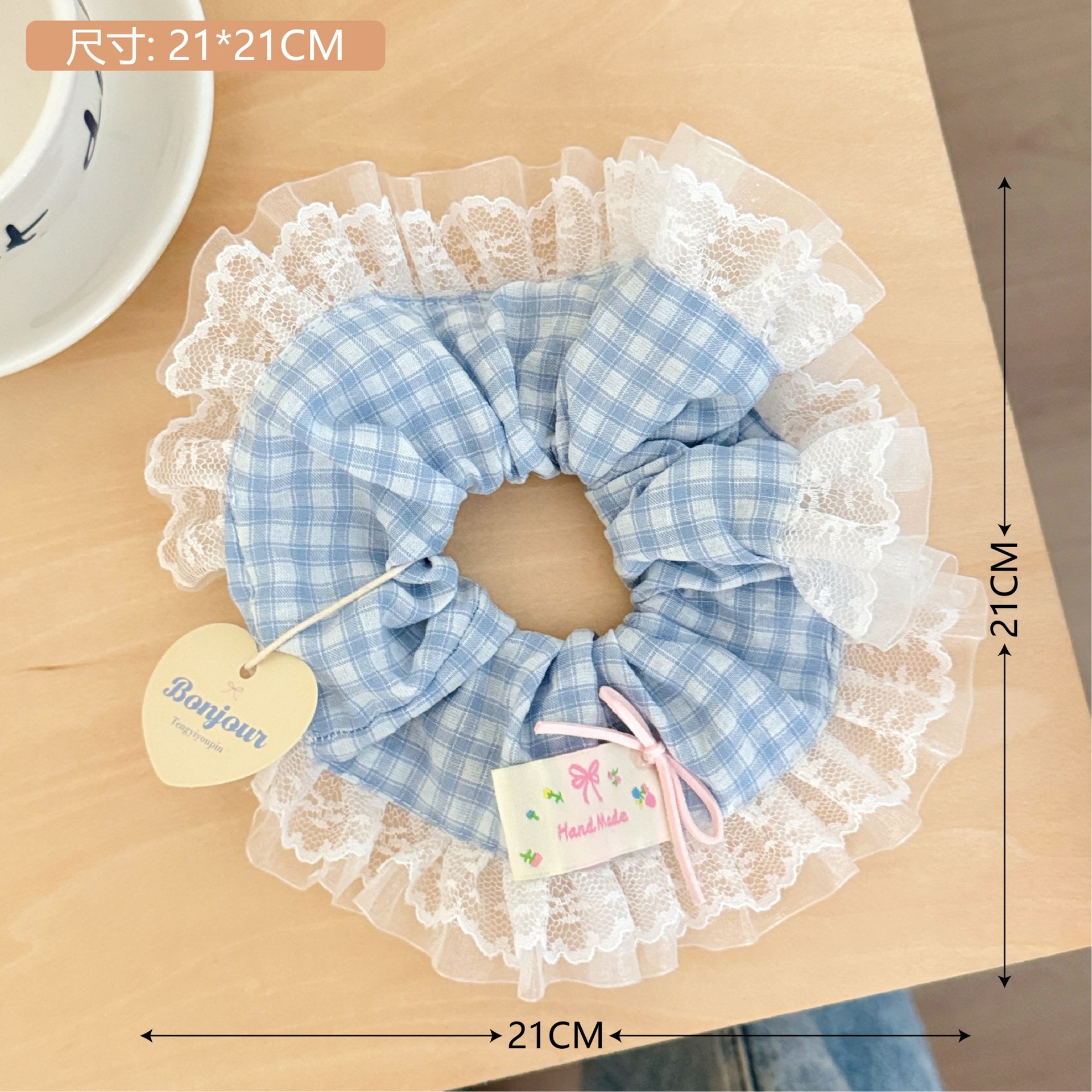 #2 blue plaid lace hair tie