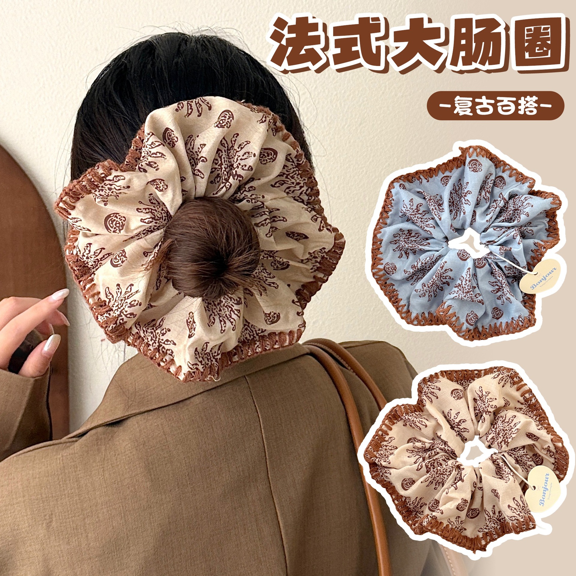 #2 beige-french vintage hair tie