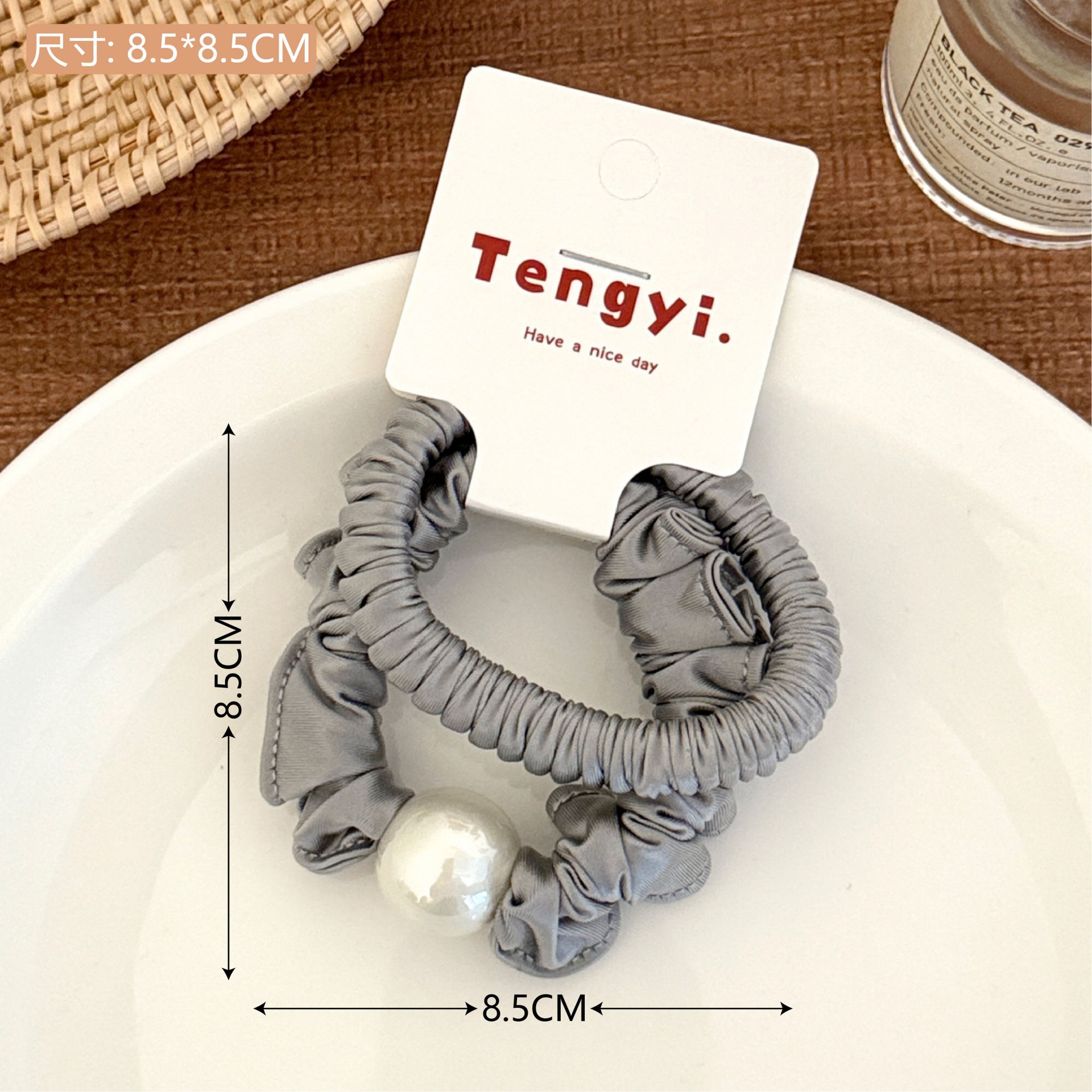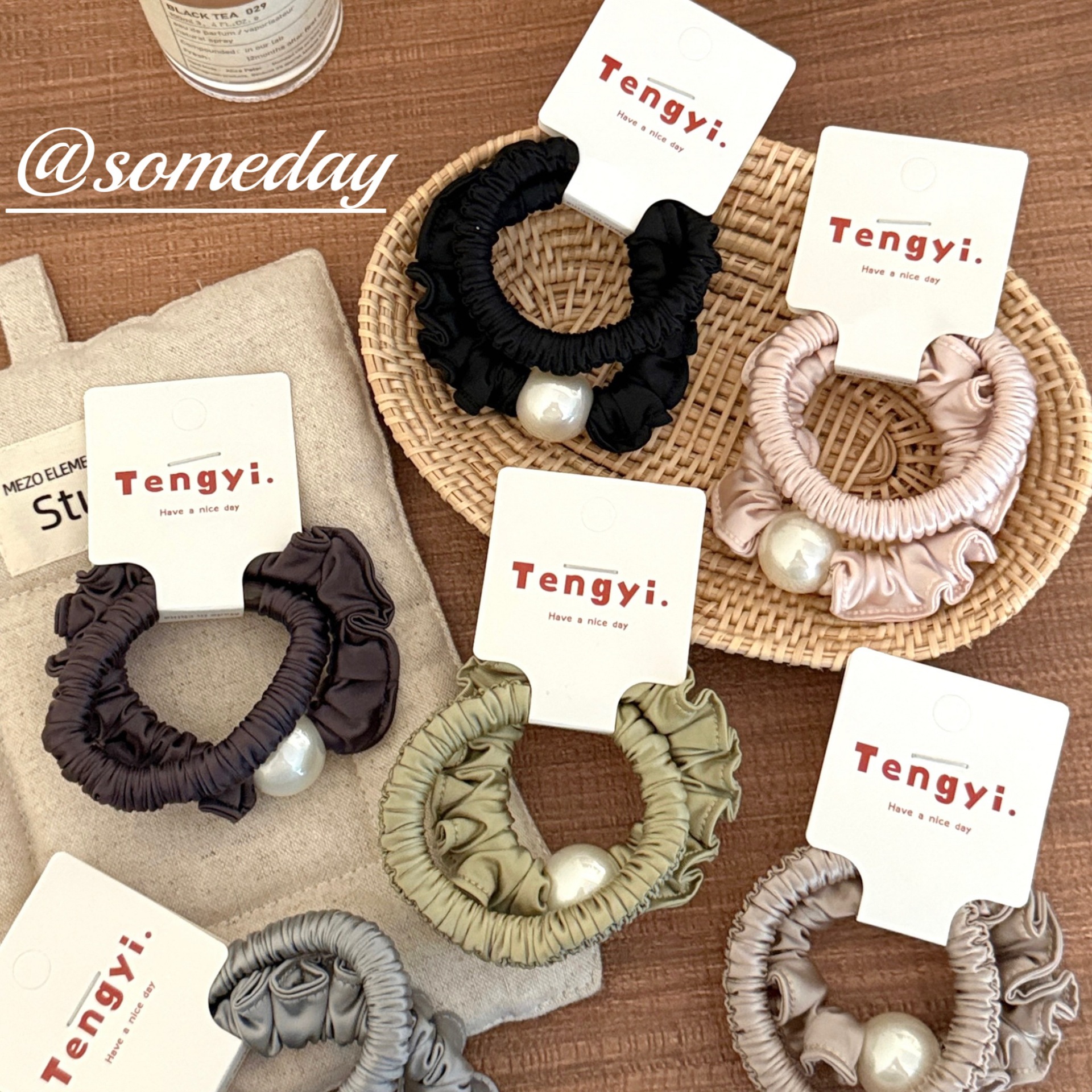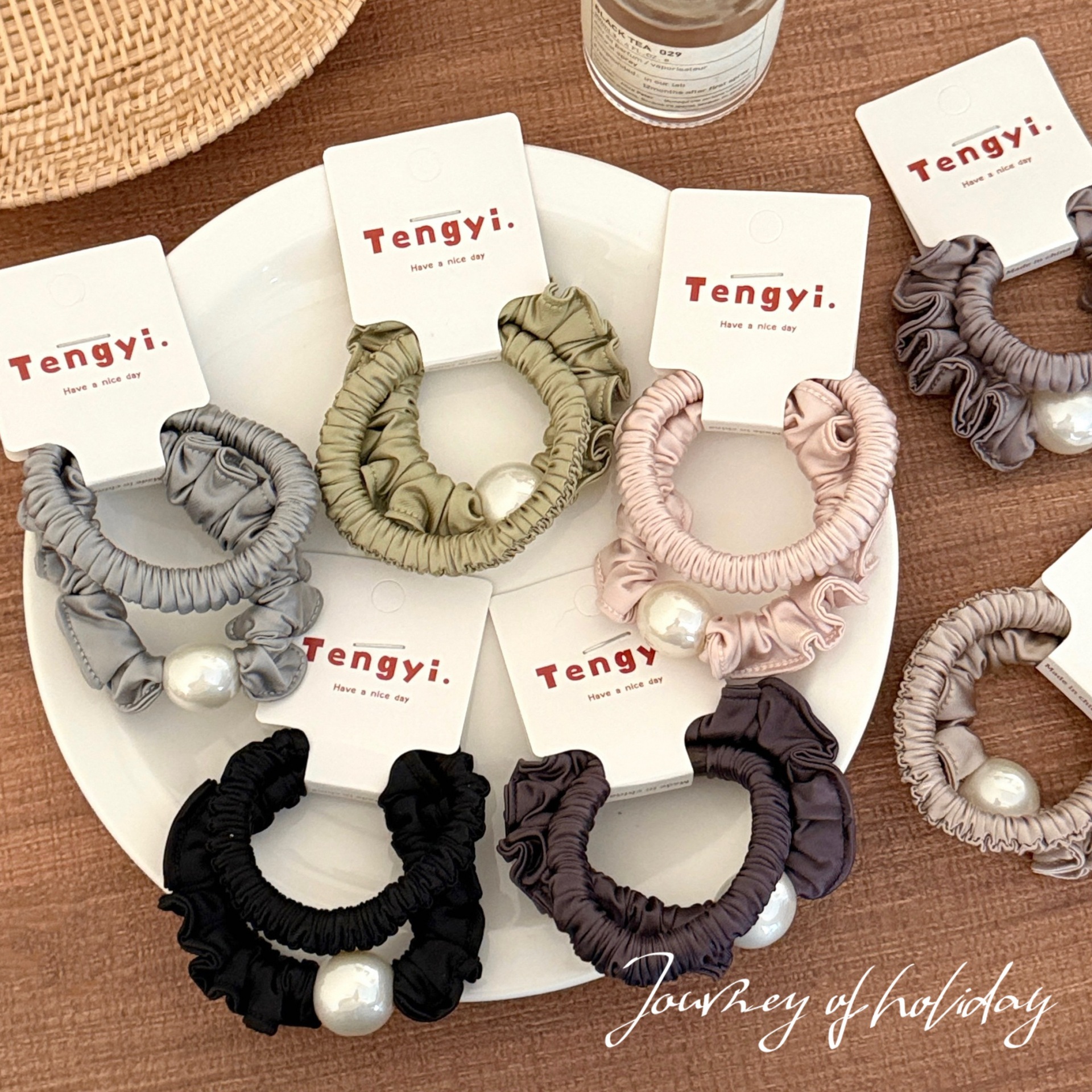 no. 3 beige khaki ruffled hair tie (2 pieces per pack)