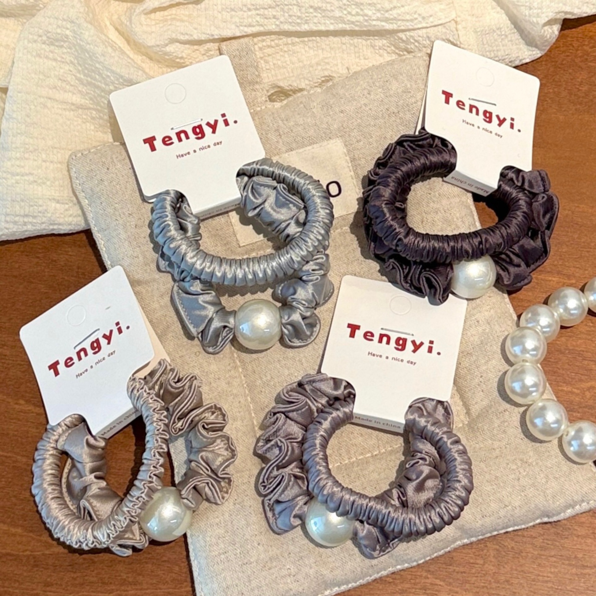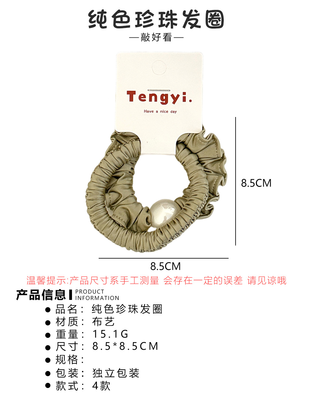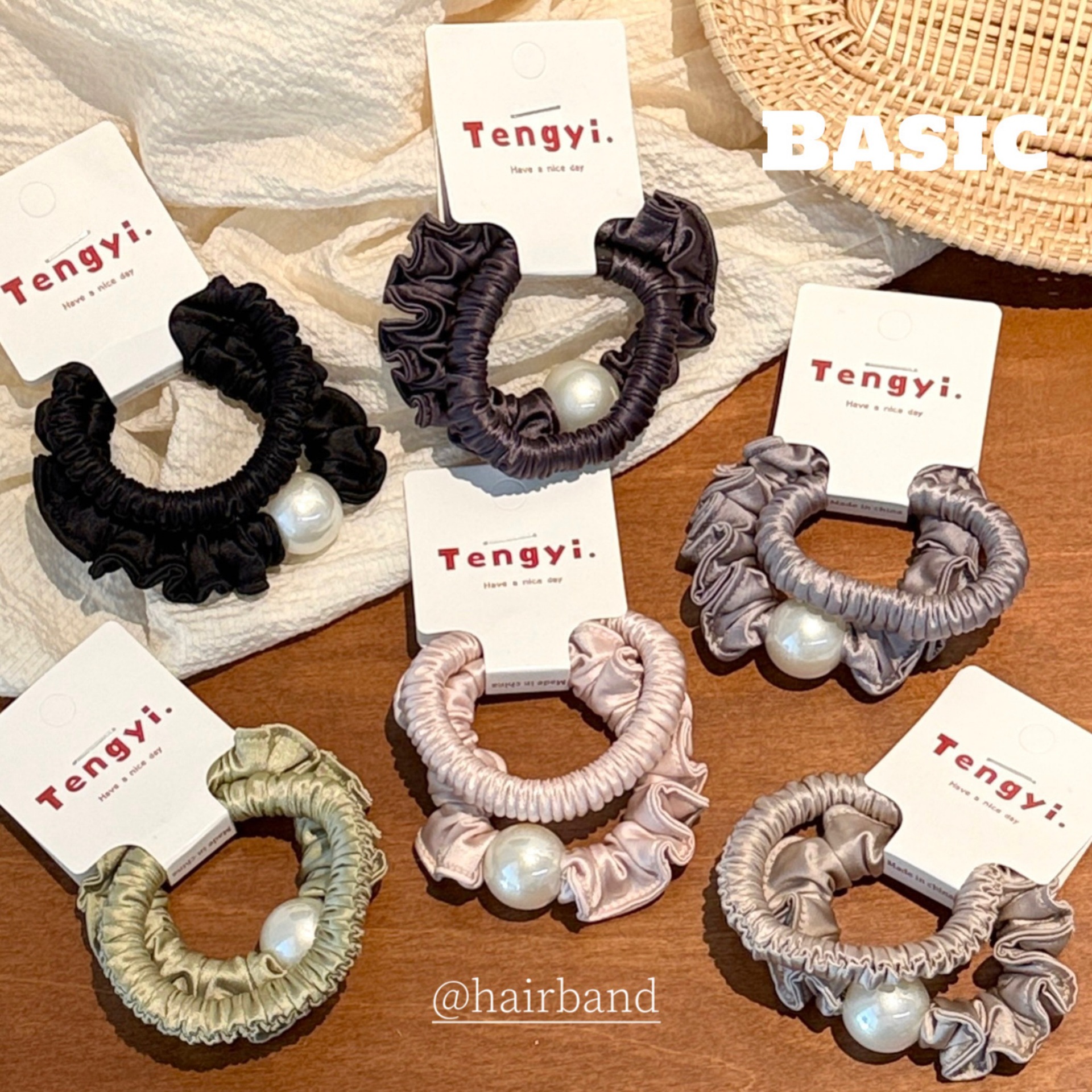 no. 3 beige khaki ruffled hair tie (2 pieces per pack)
