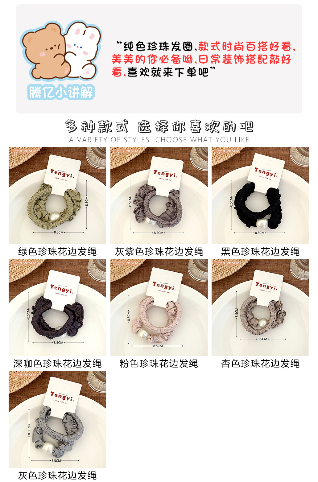 #1 bean paste color ruffle trim hair tie (pack of 2)