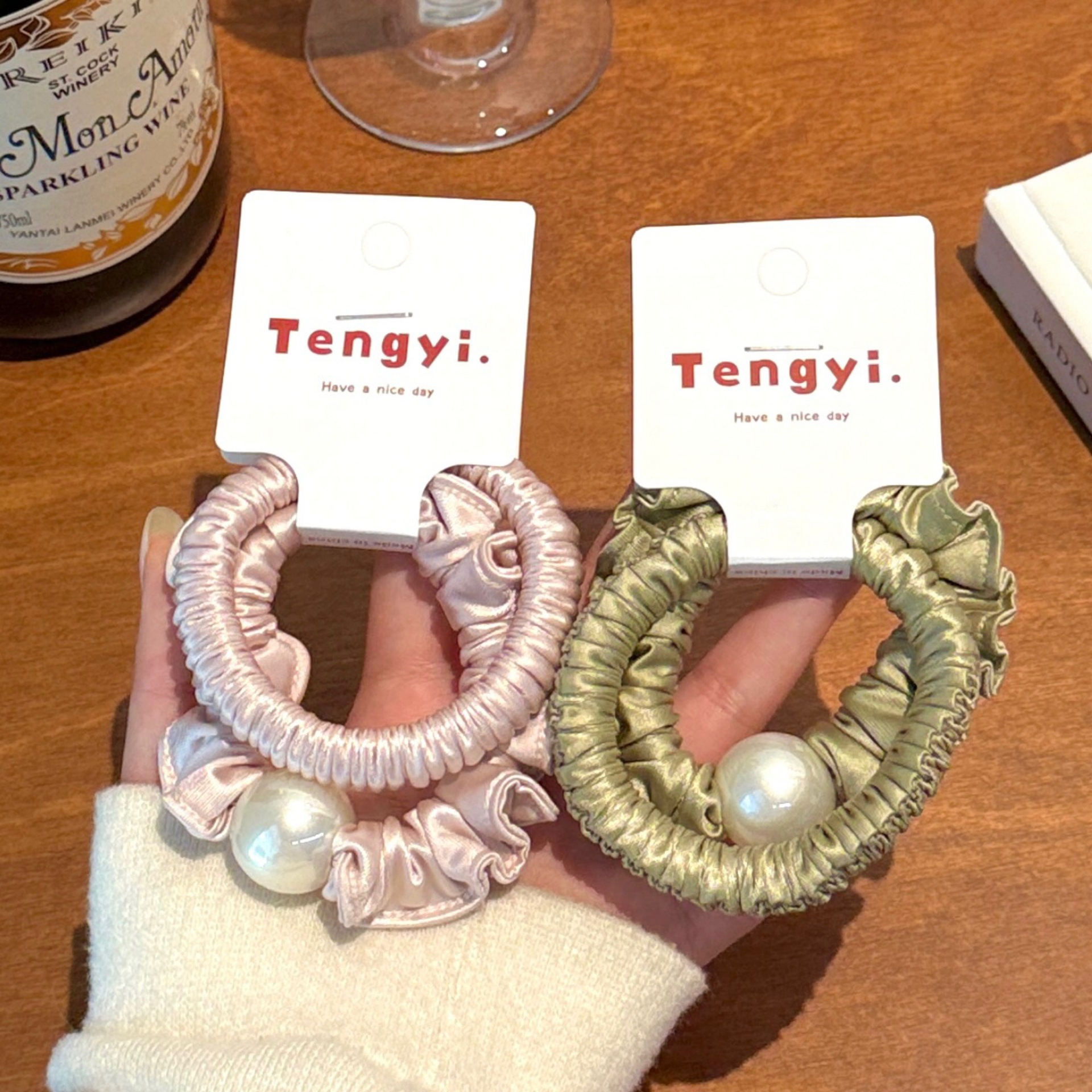 #6 green pearl lace hair tie [set of two]