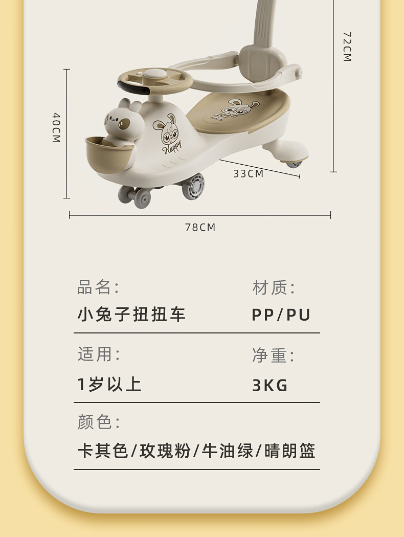 eh-bunny style butter green [top configuration] backrest + guardrail + push handle