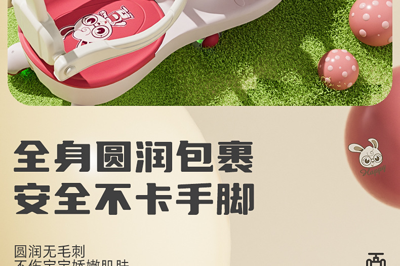 eh-bunny style rose pink [bluetooth version] backrest + guardrail + push handle