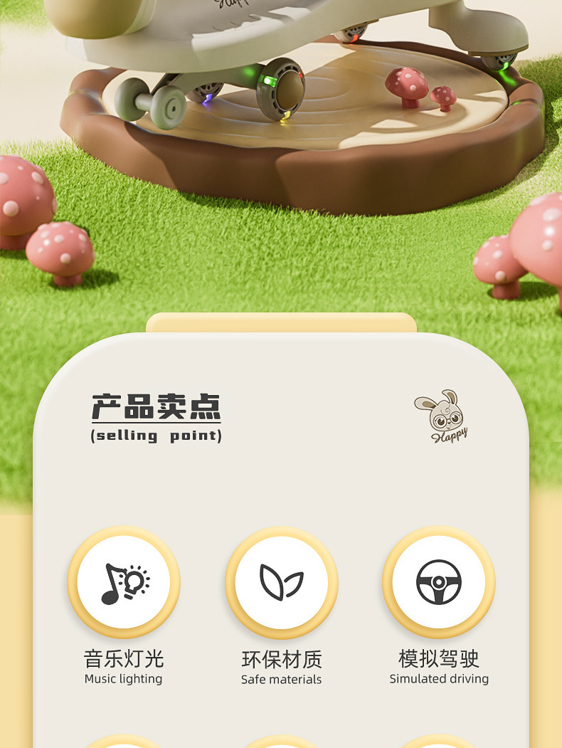 eh-bunny style butter green [bluetooth version] backrest + guardrail + push handle