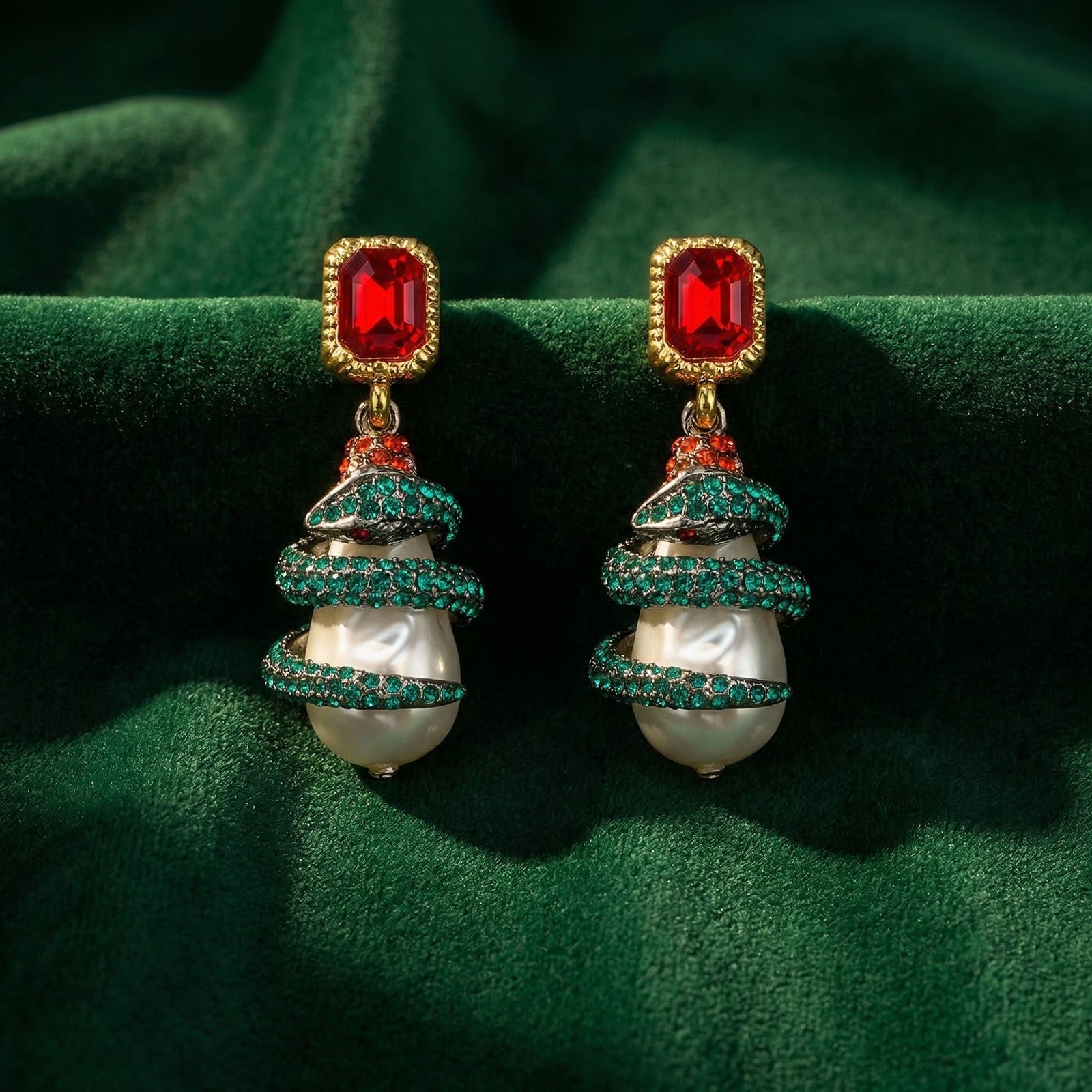 red and green earrings