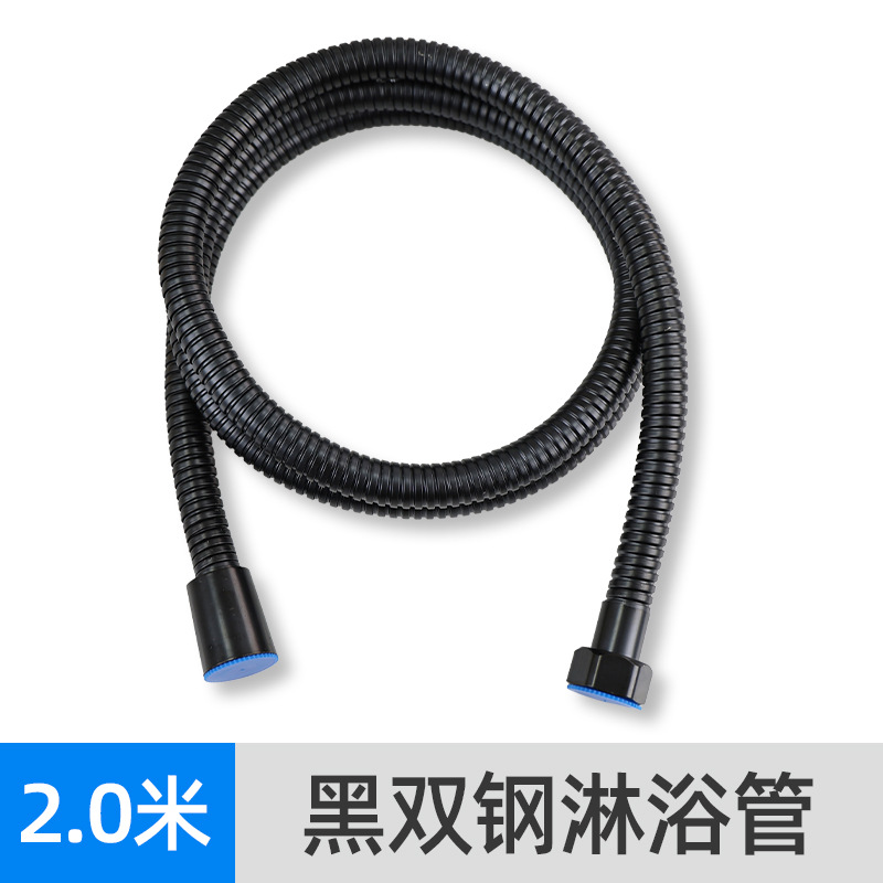 black double-steel shower hose, 2 meters