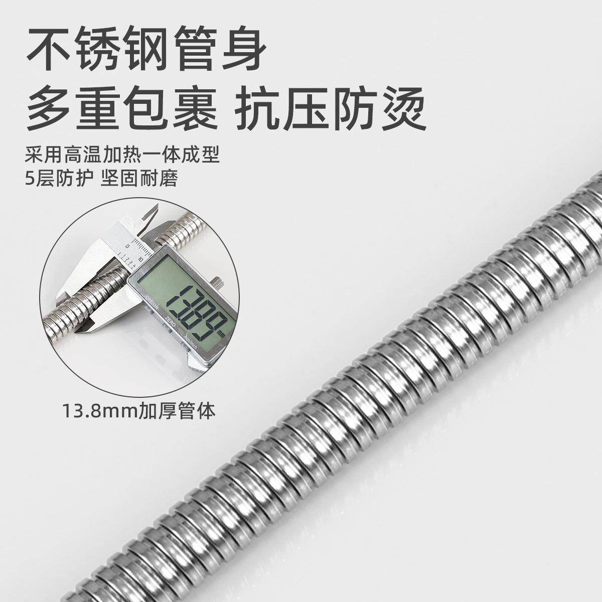 5-meter all-304 stainless steel explosion-proof shower hose (high-flow inner tube)