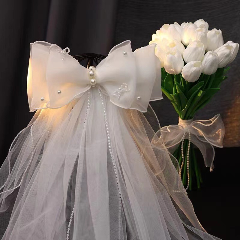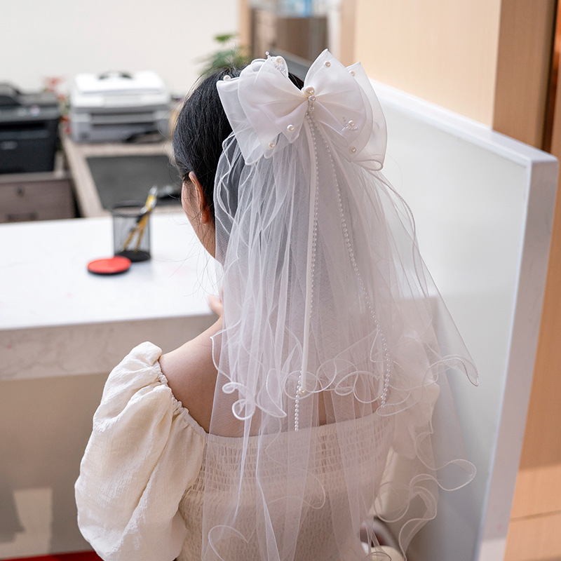 pearl chain veil barrettes (without light)