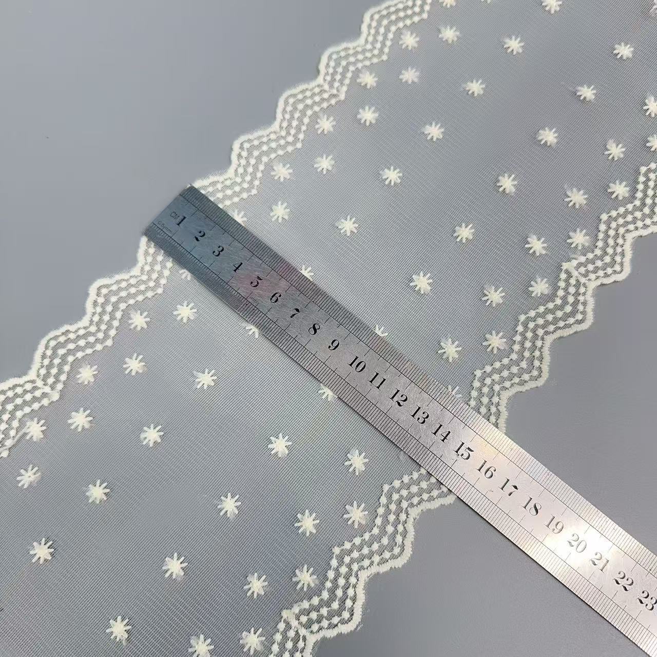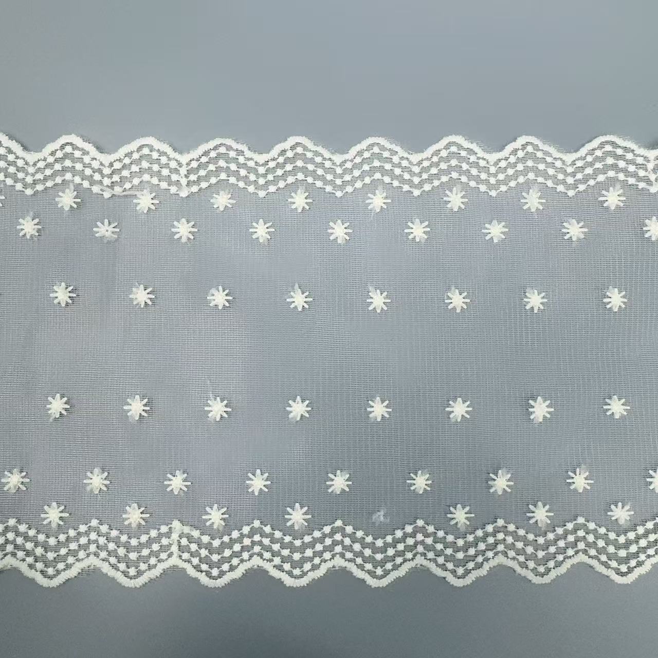 Embroidery edge products are manufactured in one piece, and it may occur that some positions have skipped stitches.It's normal.