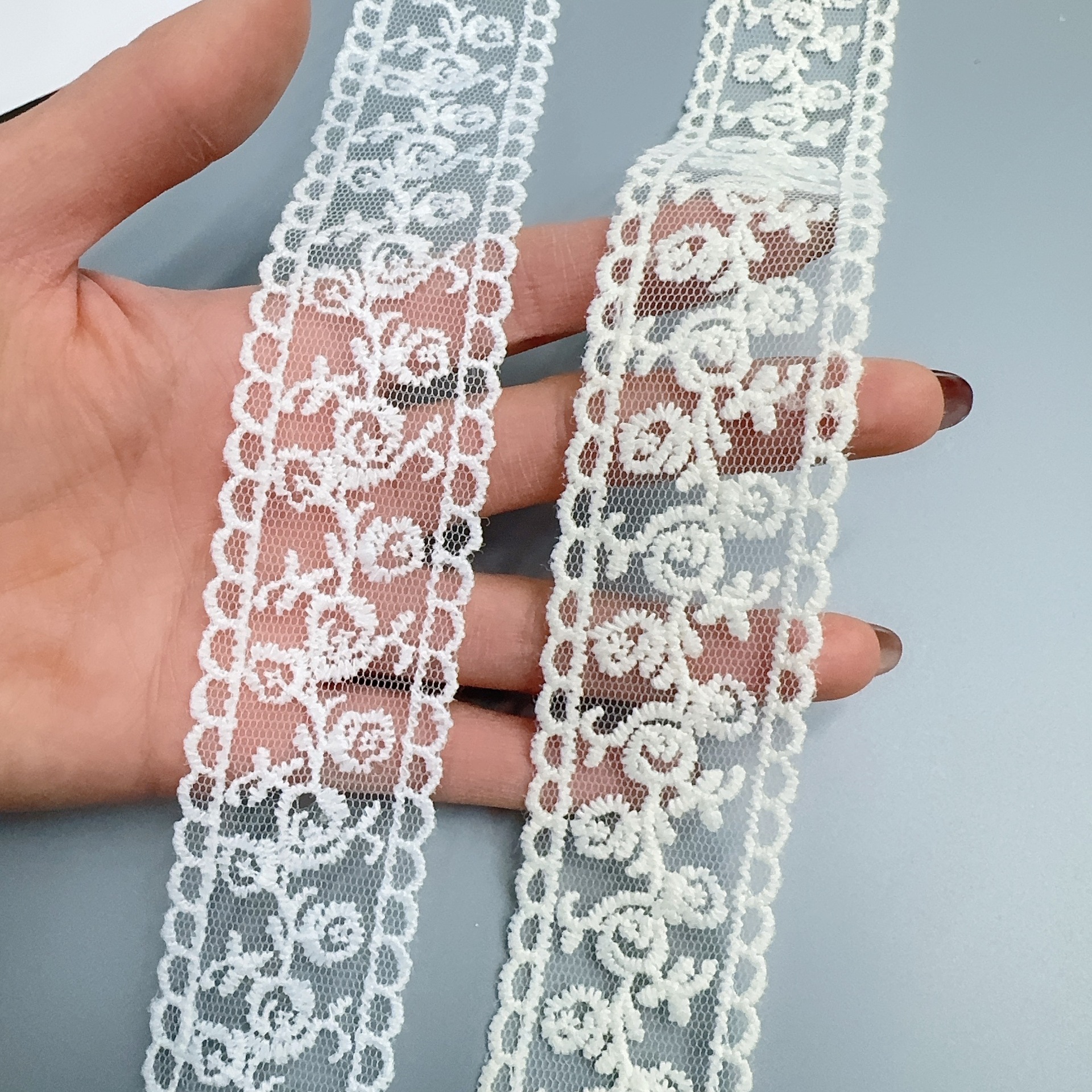 Embroidery edge products are manufactured in one piece, and it may occur that some positions have skipped stitches.It's normal.