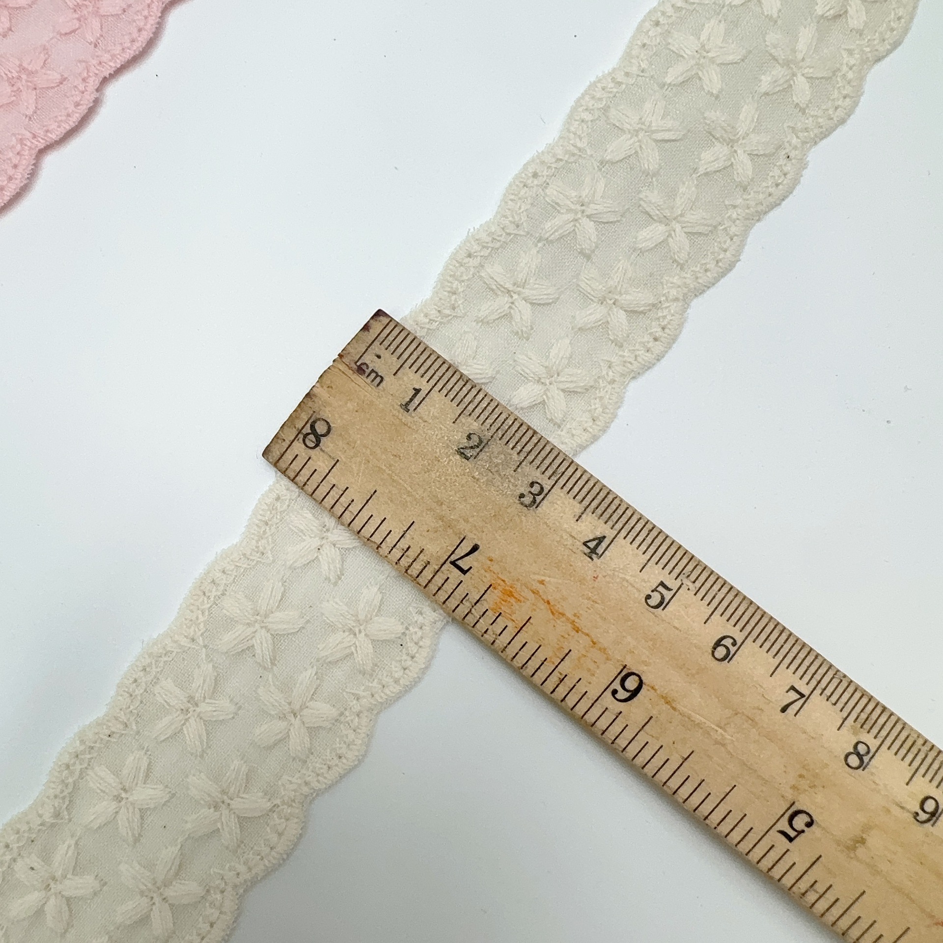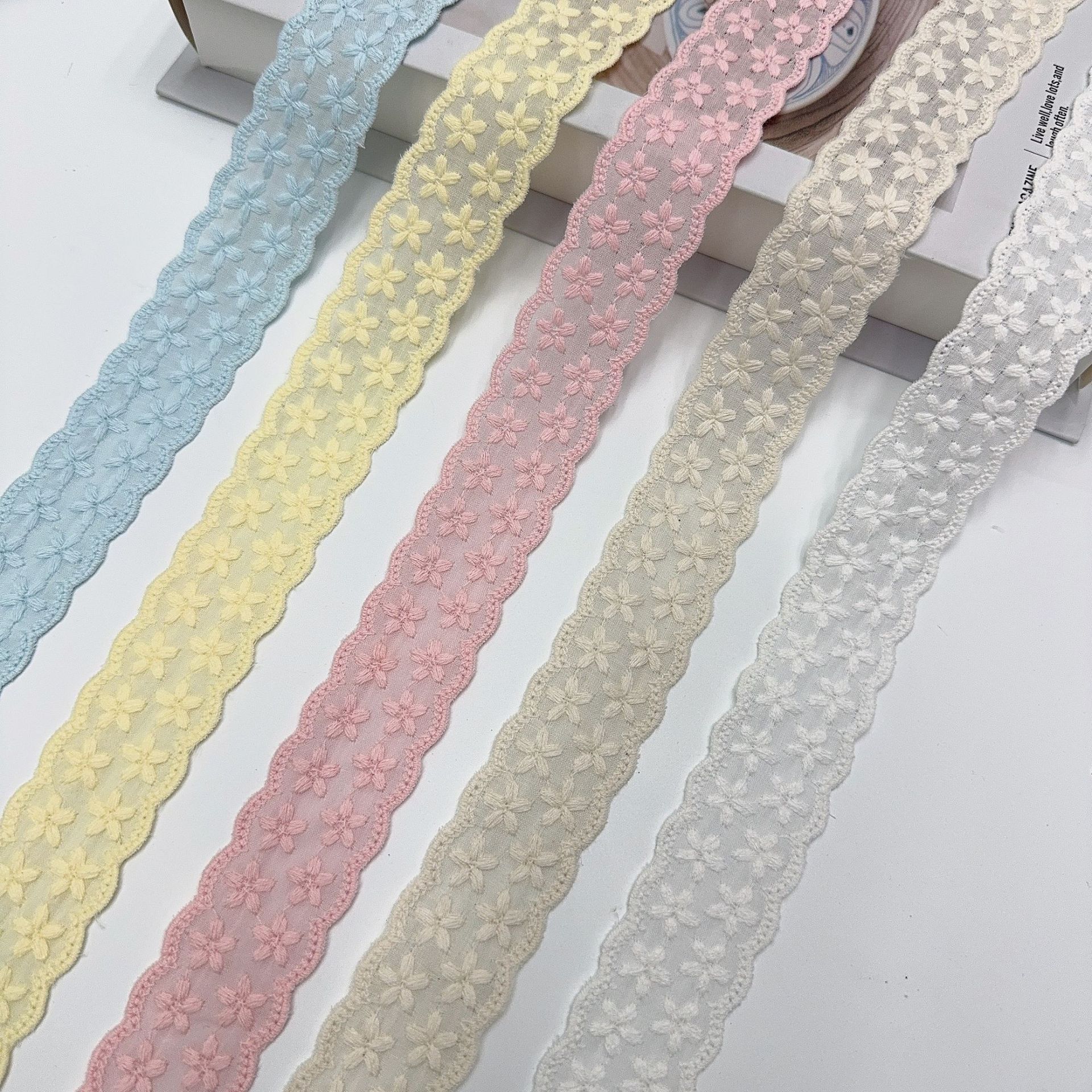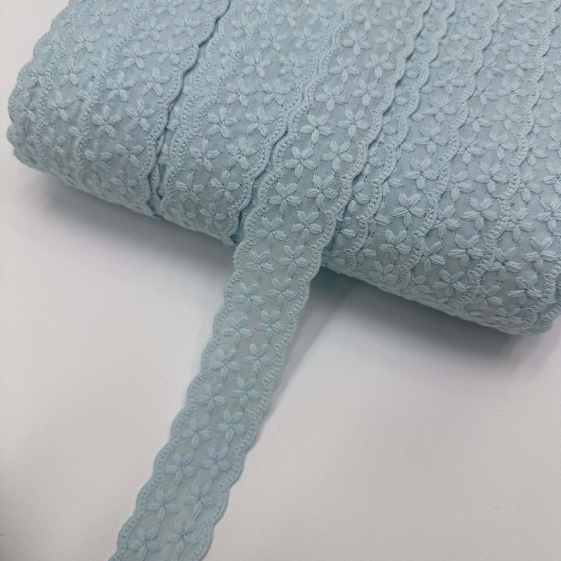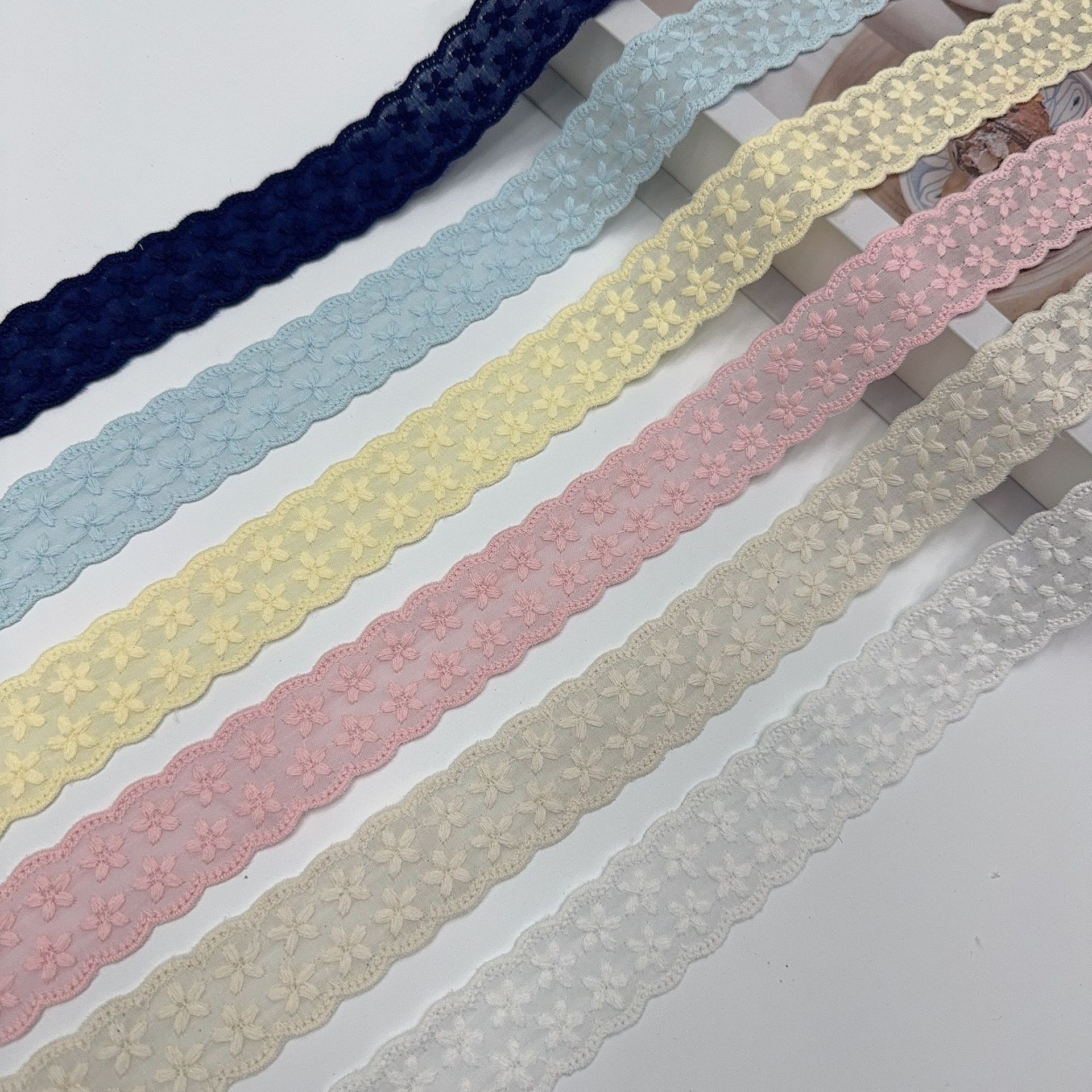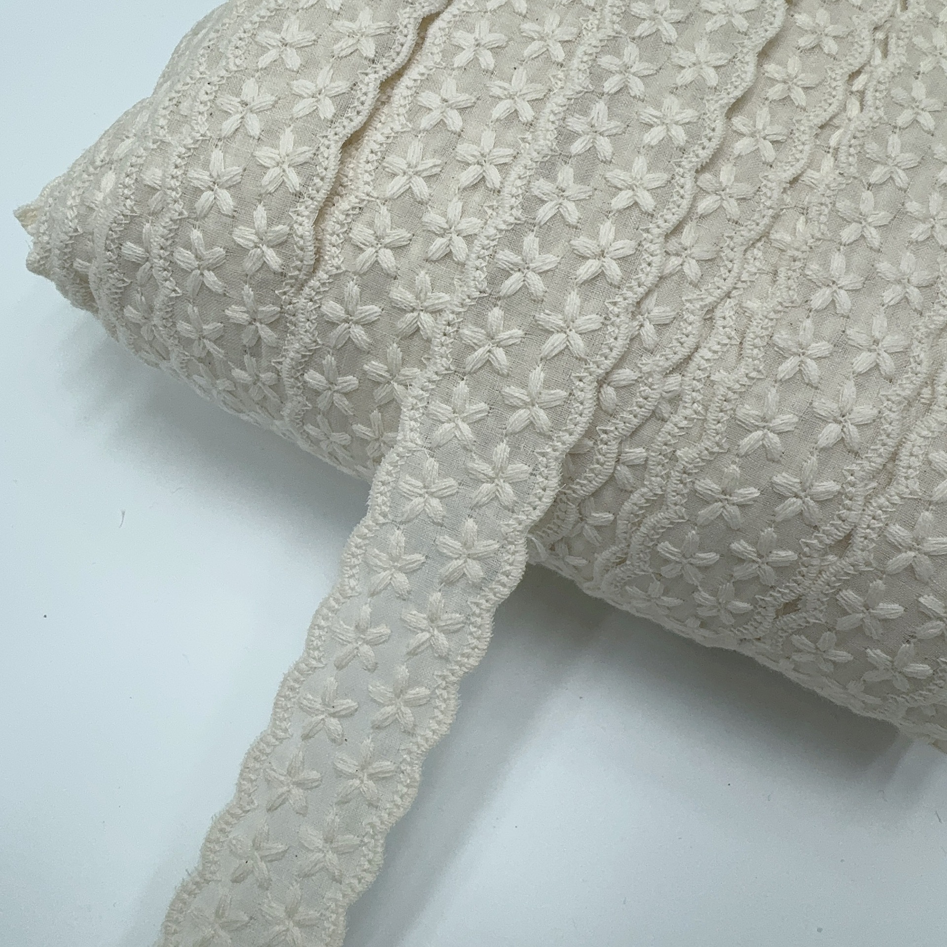 Embroidery edge products are manufactured in one piece, and it may occur that some positions have skipped stitches.It's normal.