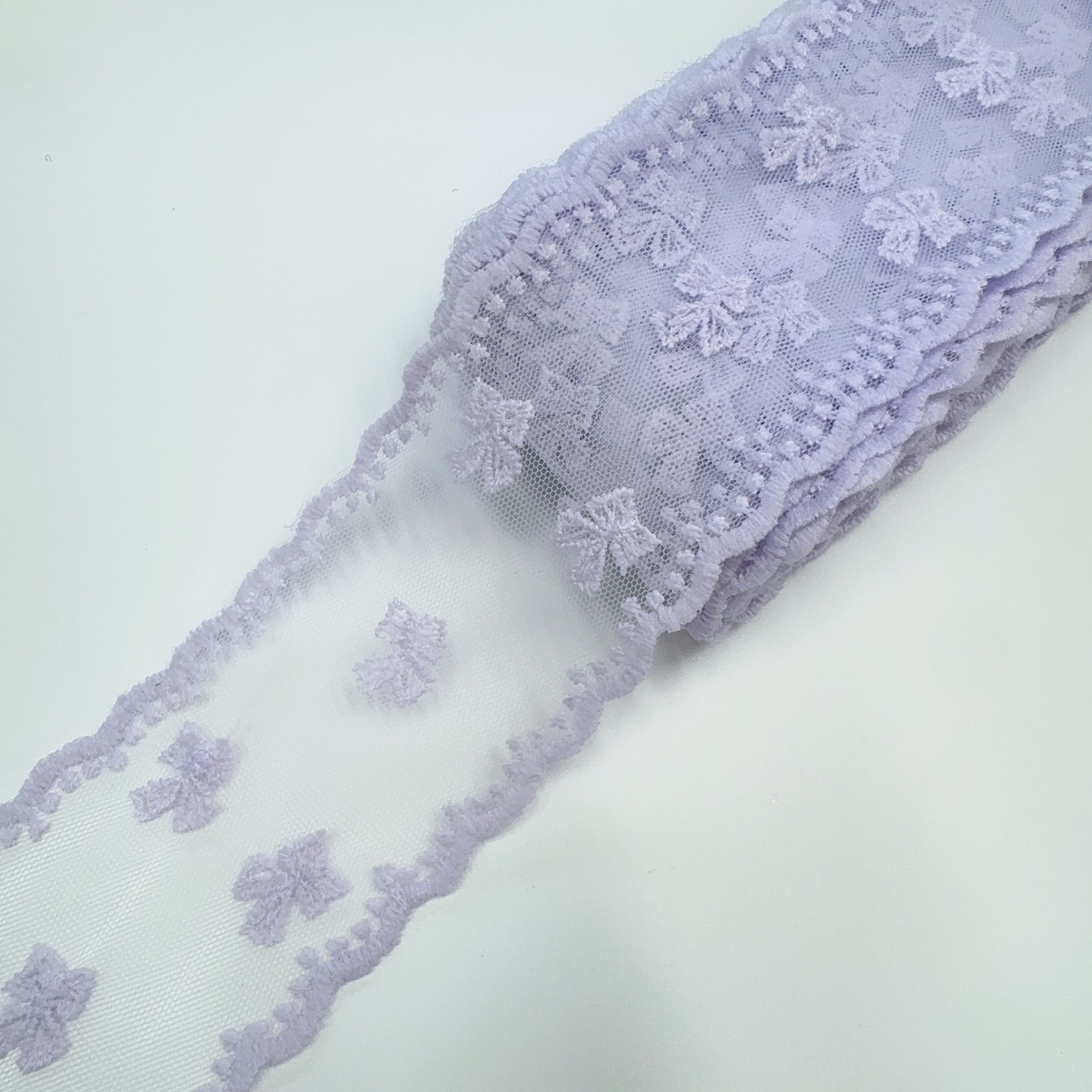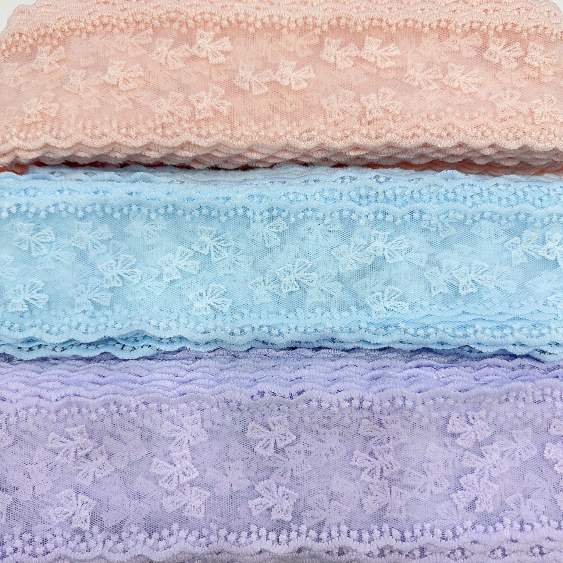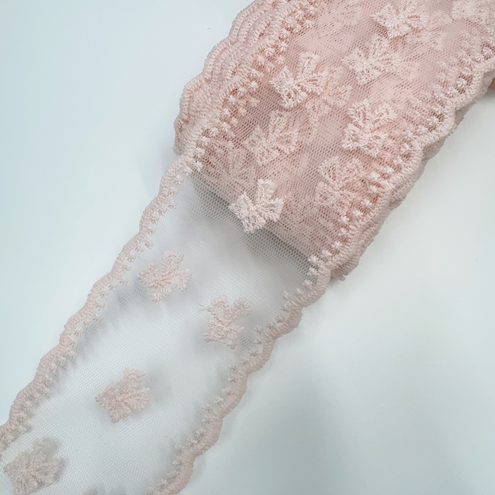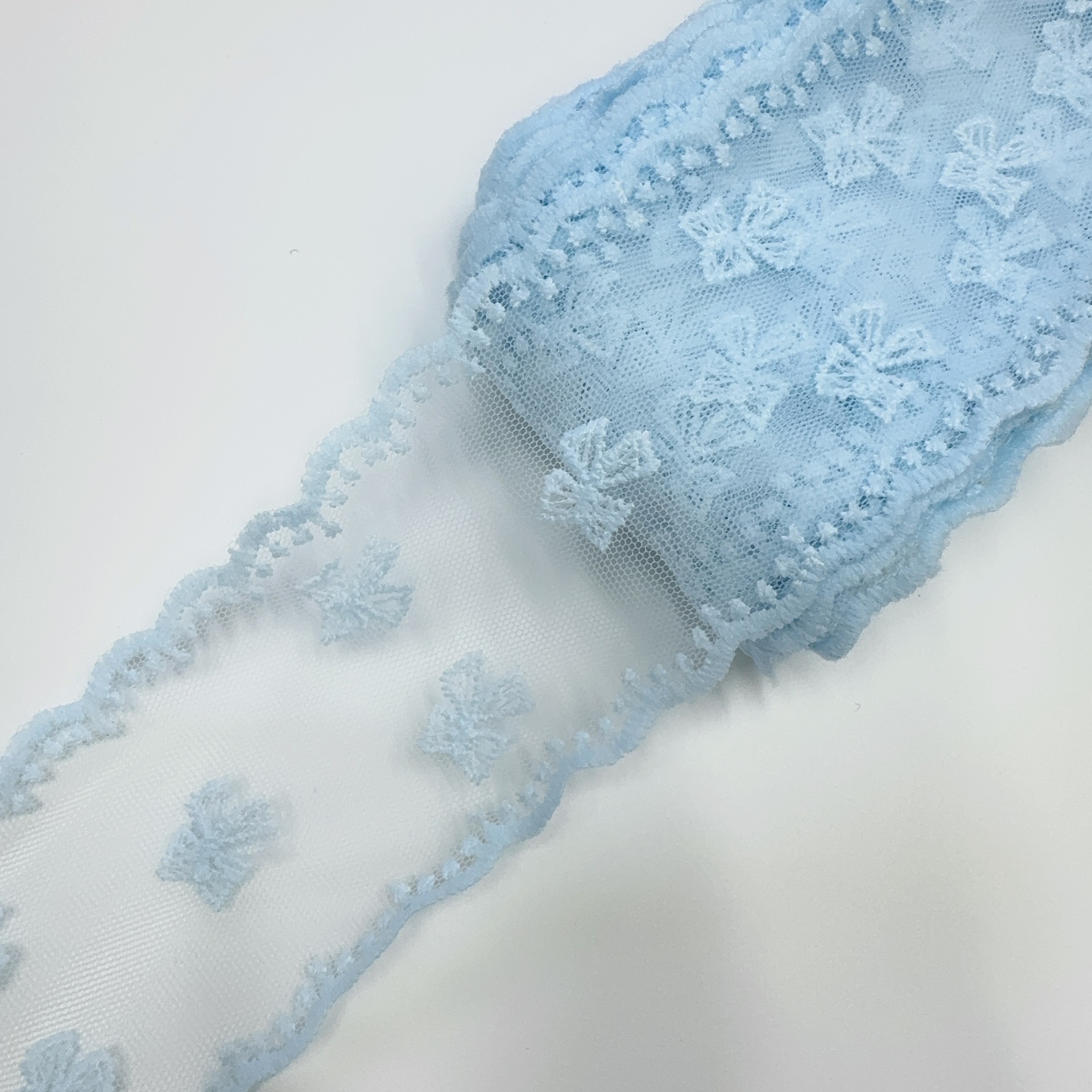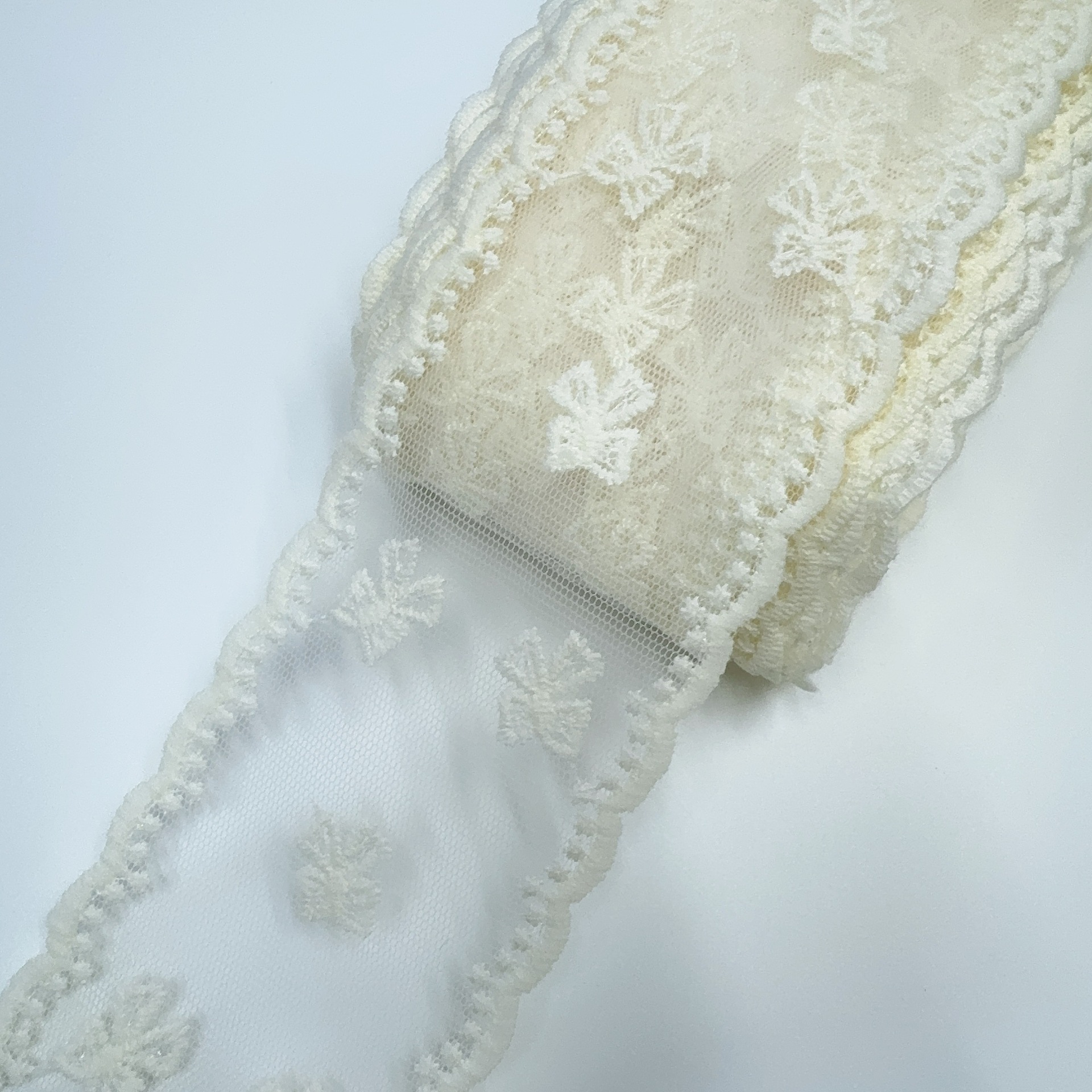 Embroidery edge products are manufactured in one piece, and it may occur that some positions have skipped stitches.It's normal.