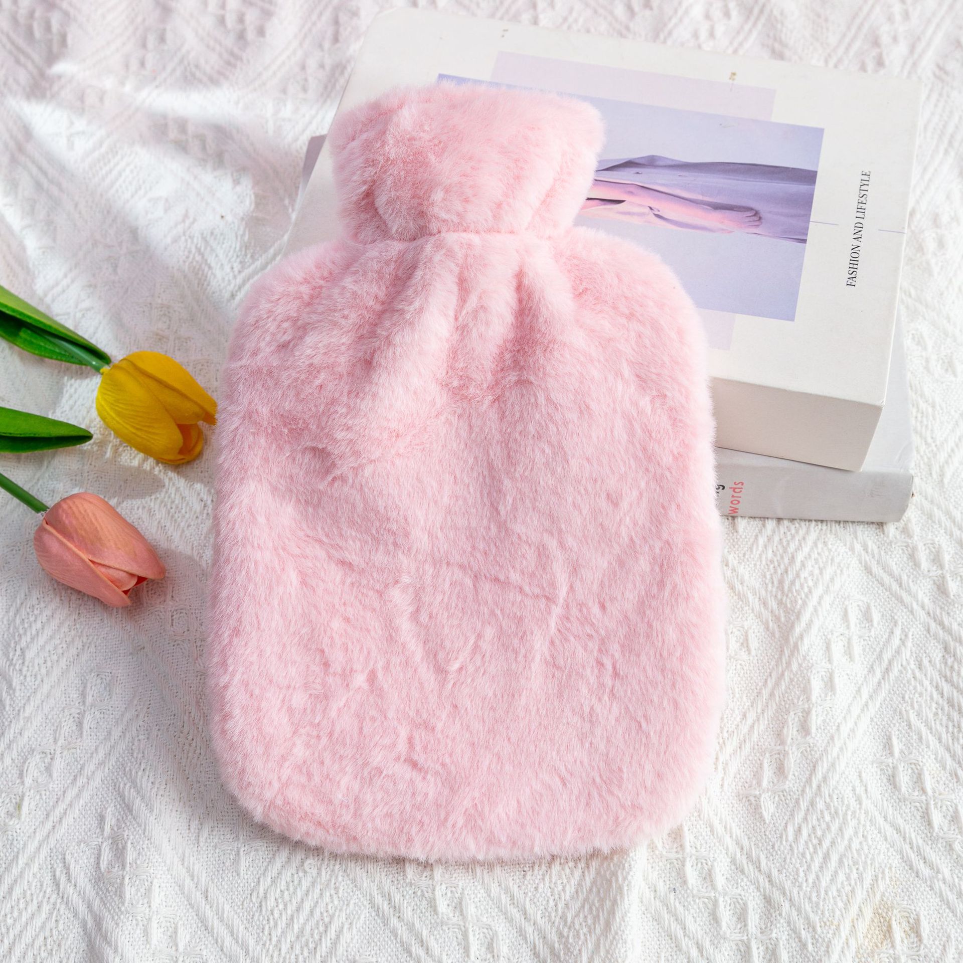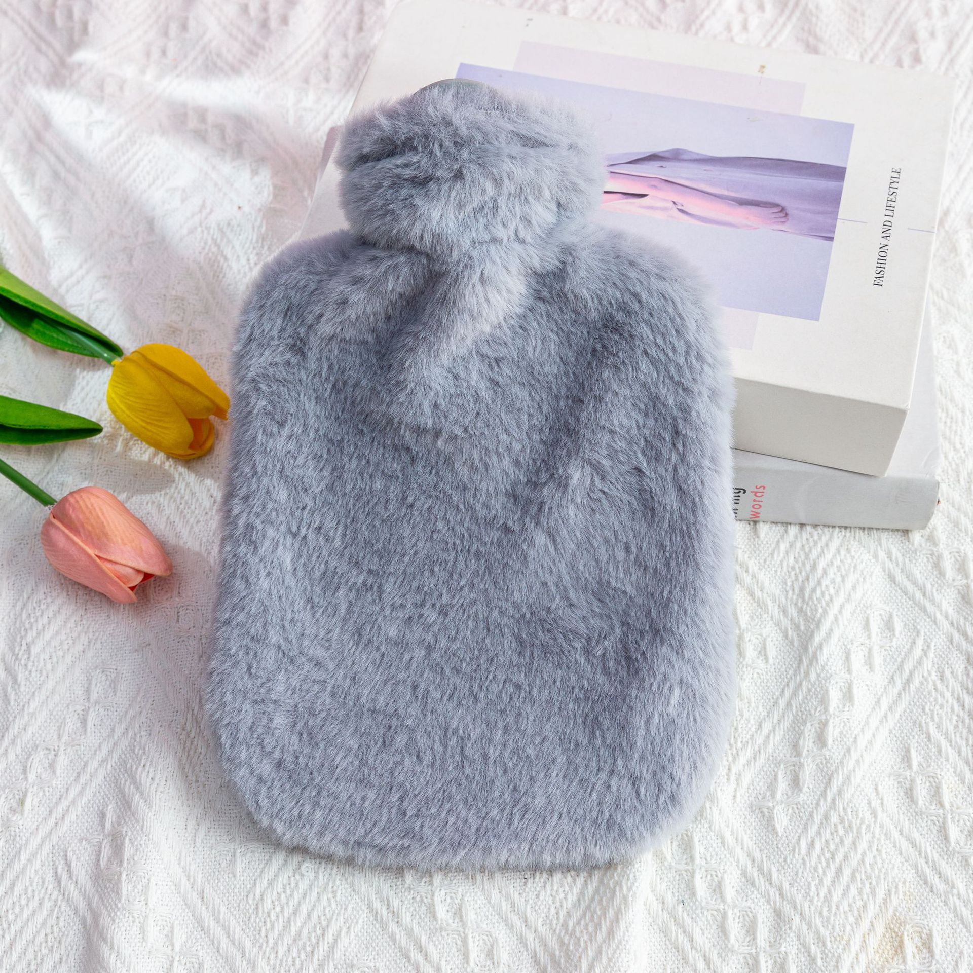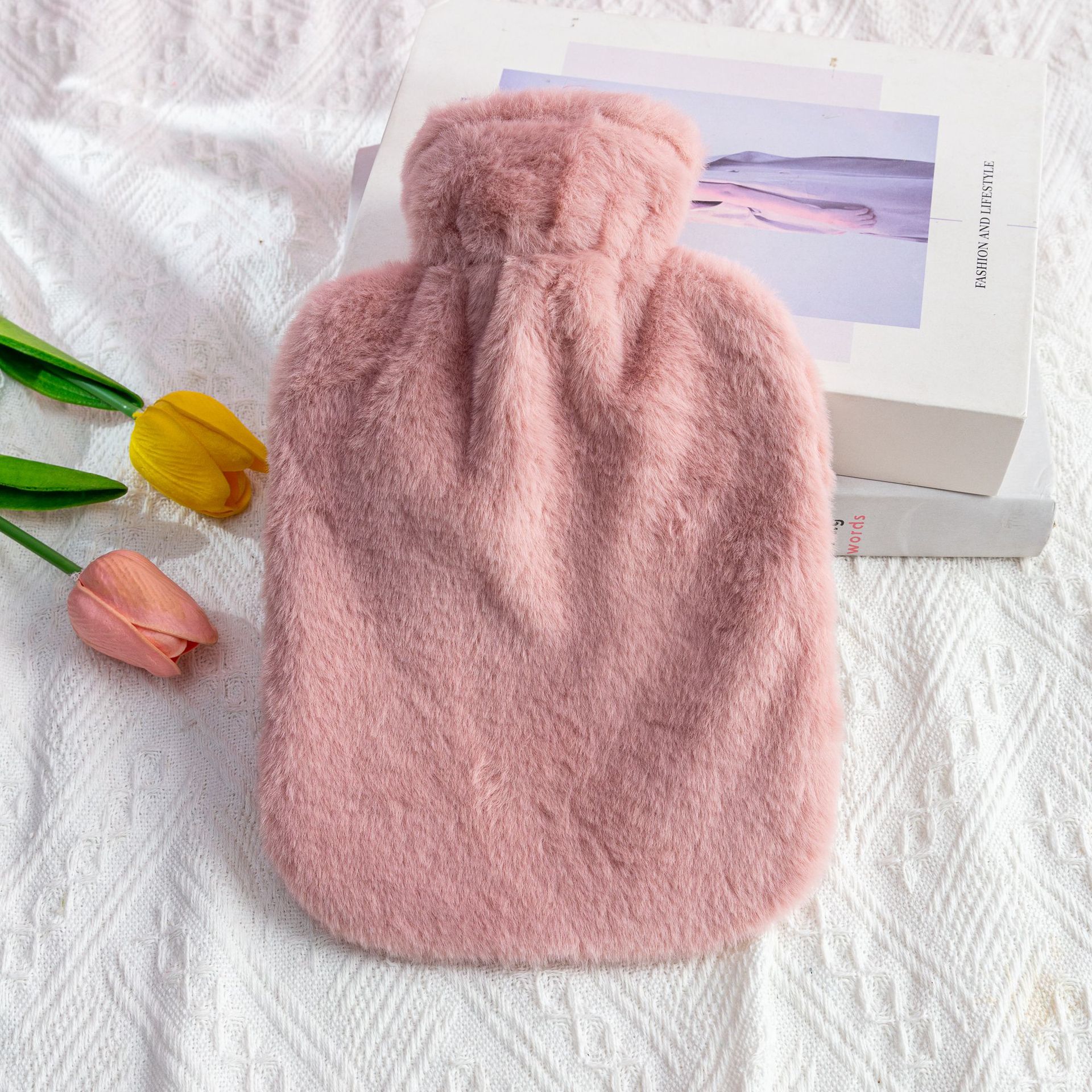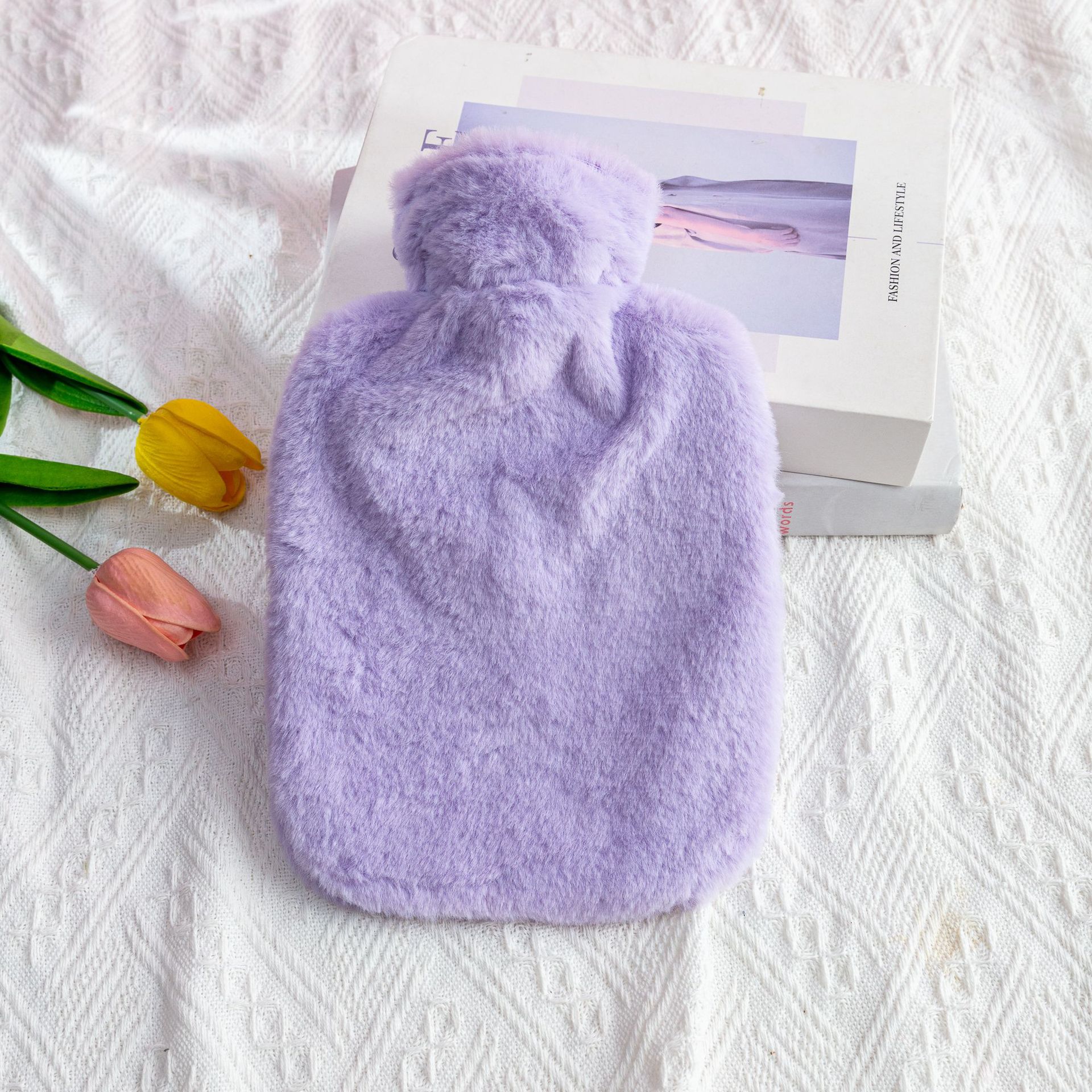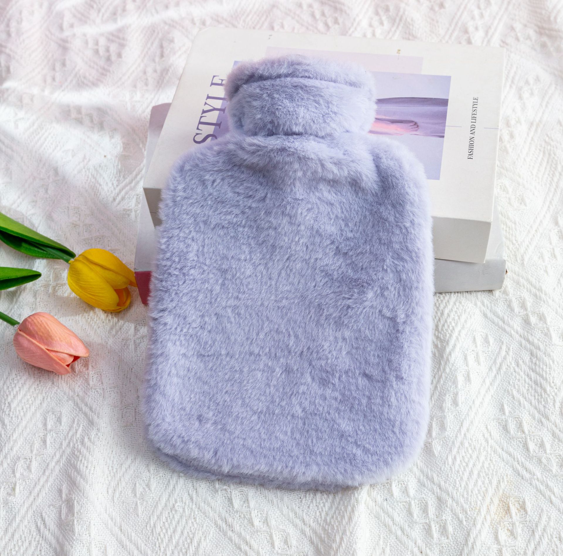 fresh blue (imitation rabbit fur cloth cover + hot water bag), light purple (imitation