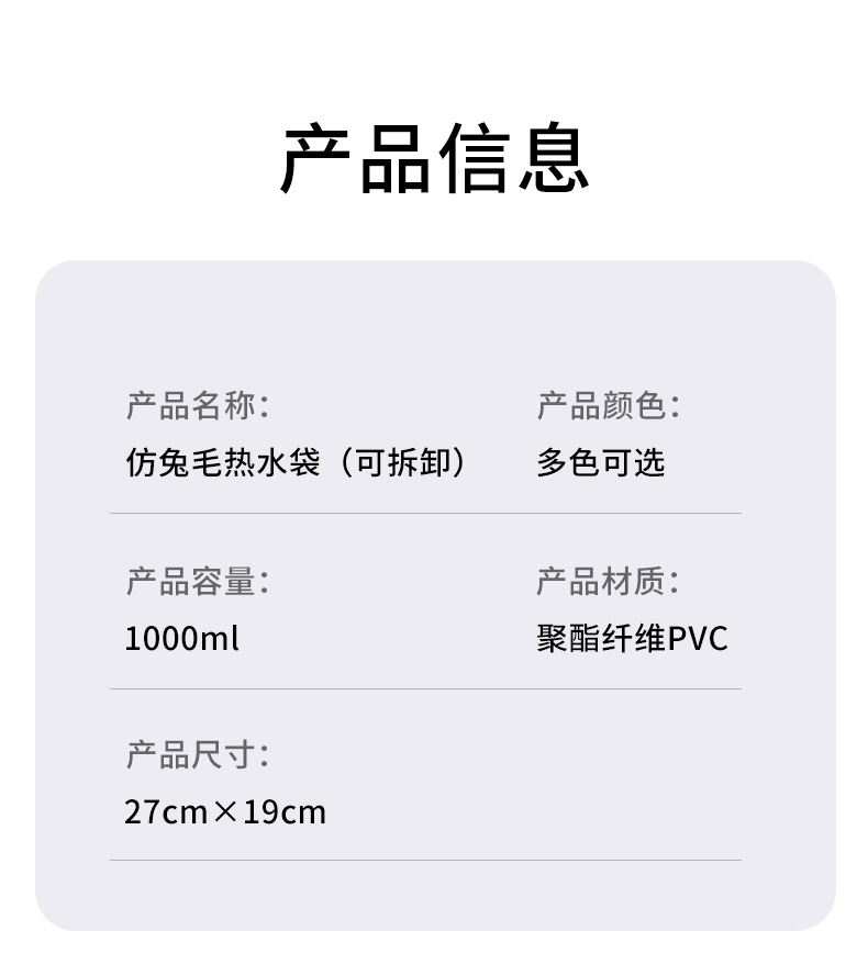 color: fresh blue (imitation rabbit fur cloth cover + hot water bag), light purple (imitation