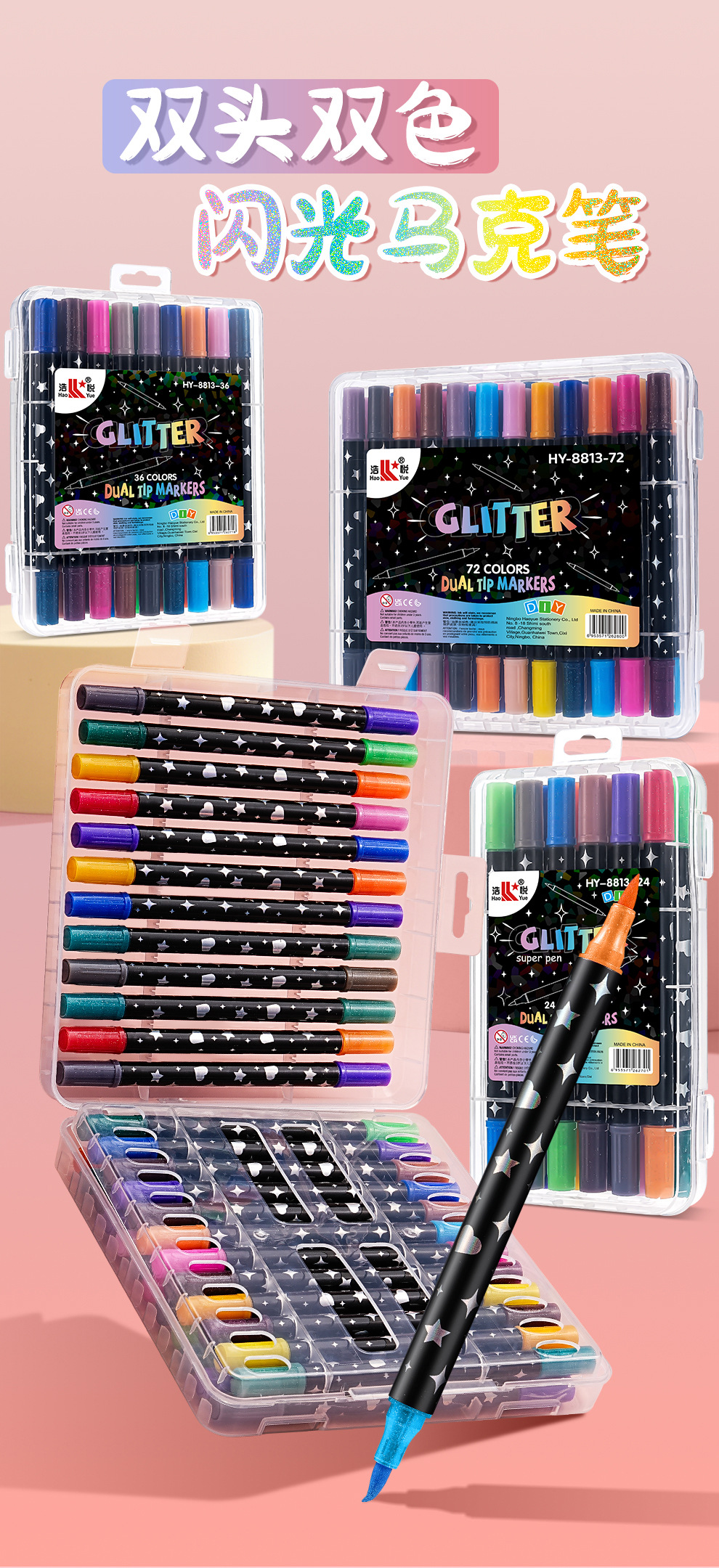 new arrival factory direct supply dual-head bicolor glitter marker pen soft-tip painting glitter pen watercolor pen