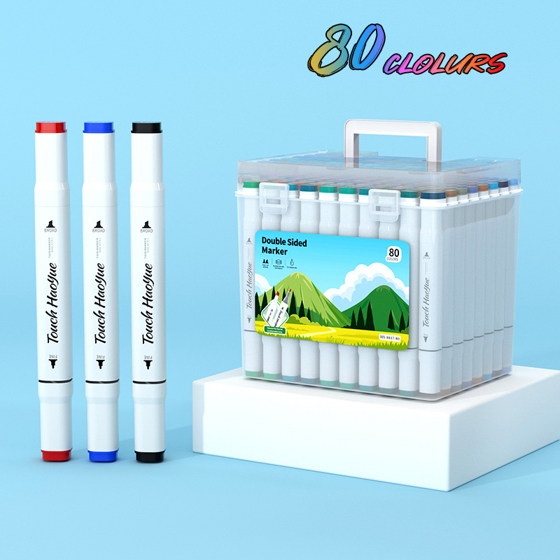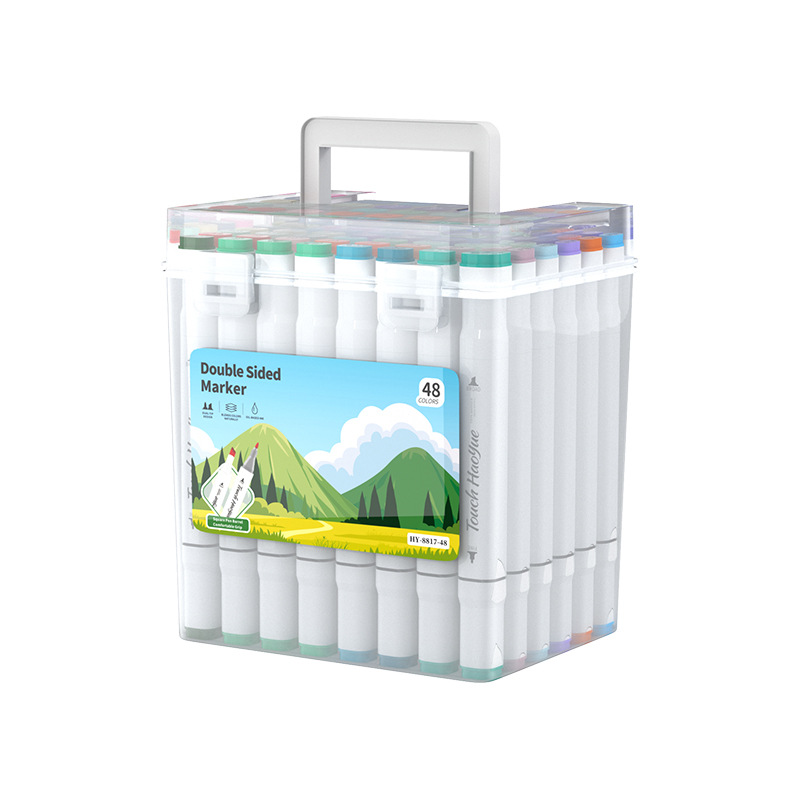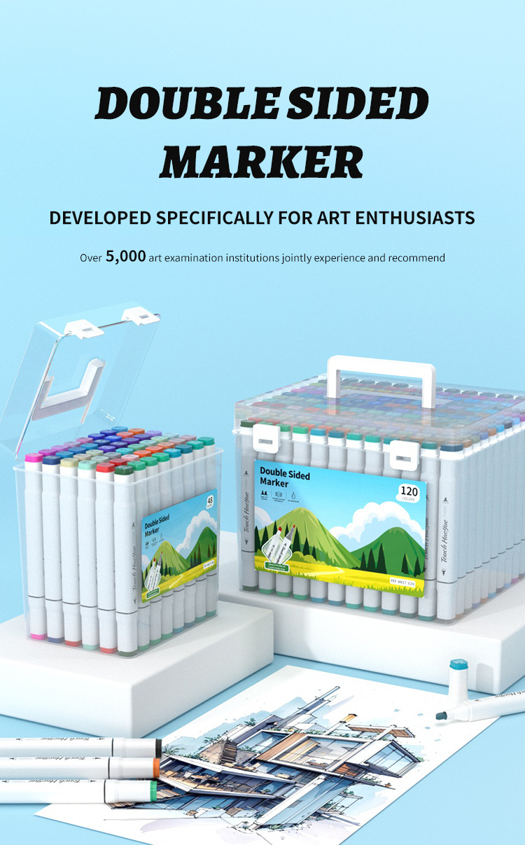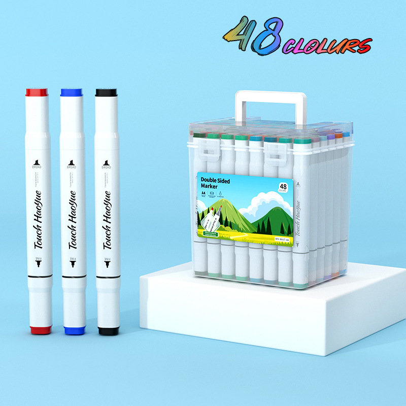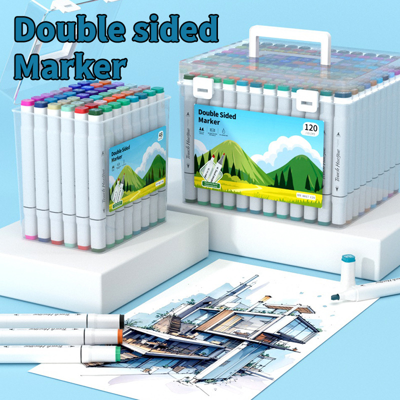 double-headed oil-based marker pen, soft tip, waterproof, for primary school students and children, art drawing pen, 48/60/80/120 colors, in a bucket