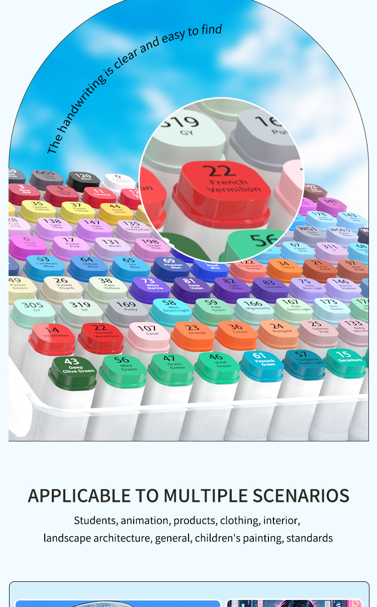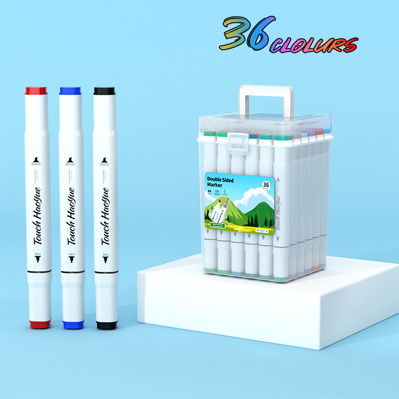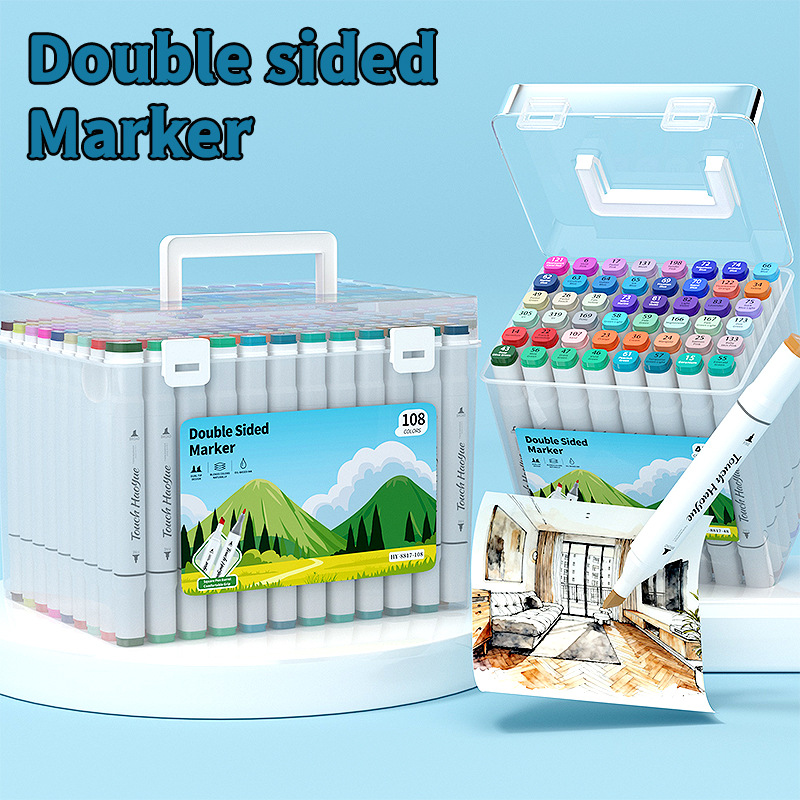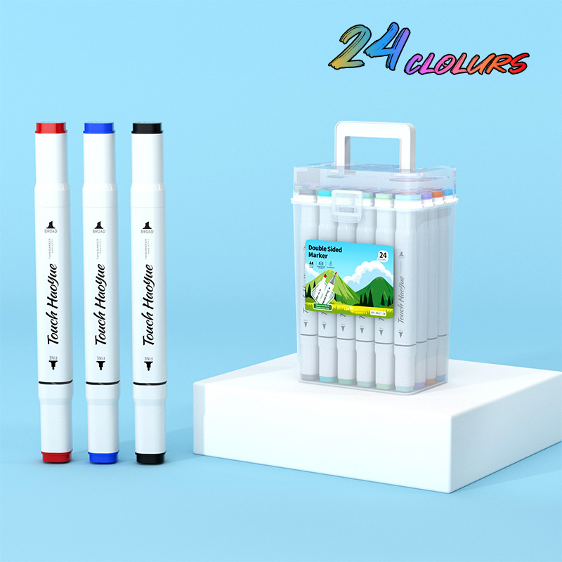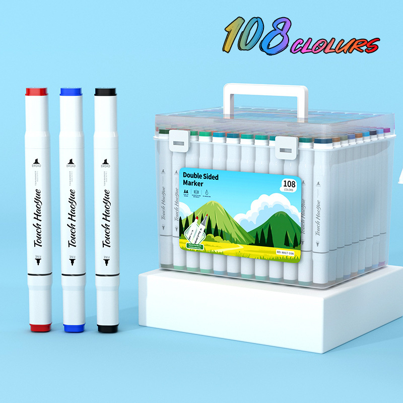 double-headed oil-based marker pen, soft tip, waterproof, for primary school students and children, art drawing pen, 48/60/80/120 colors, in a bucket