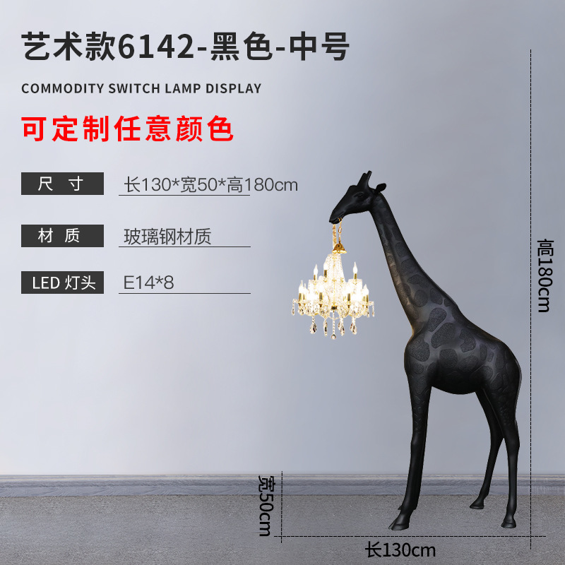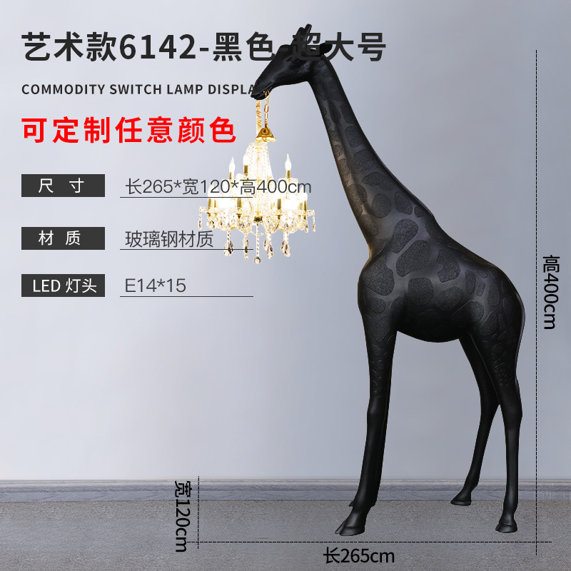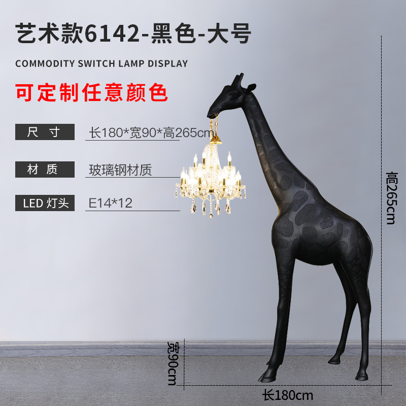 large size bright black + crystal lamp height 265cm