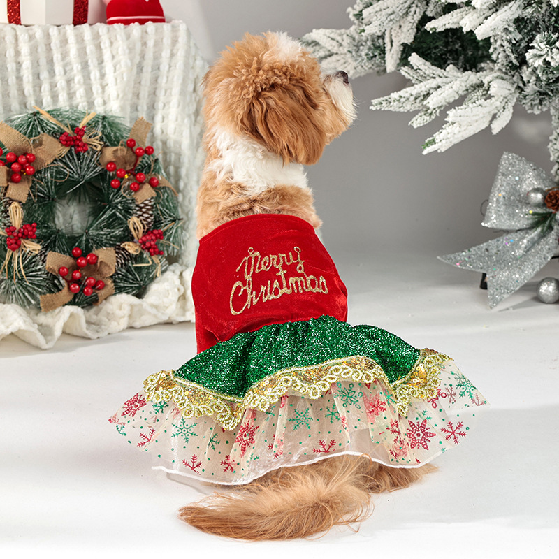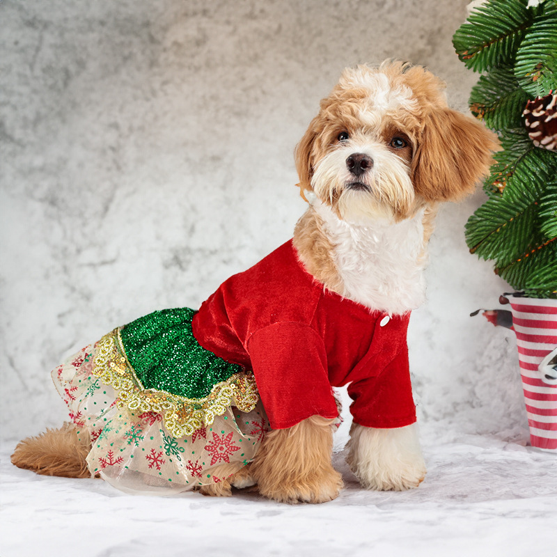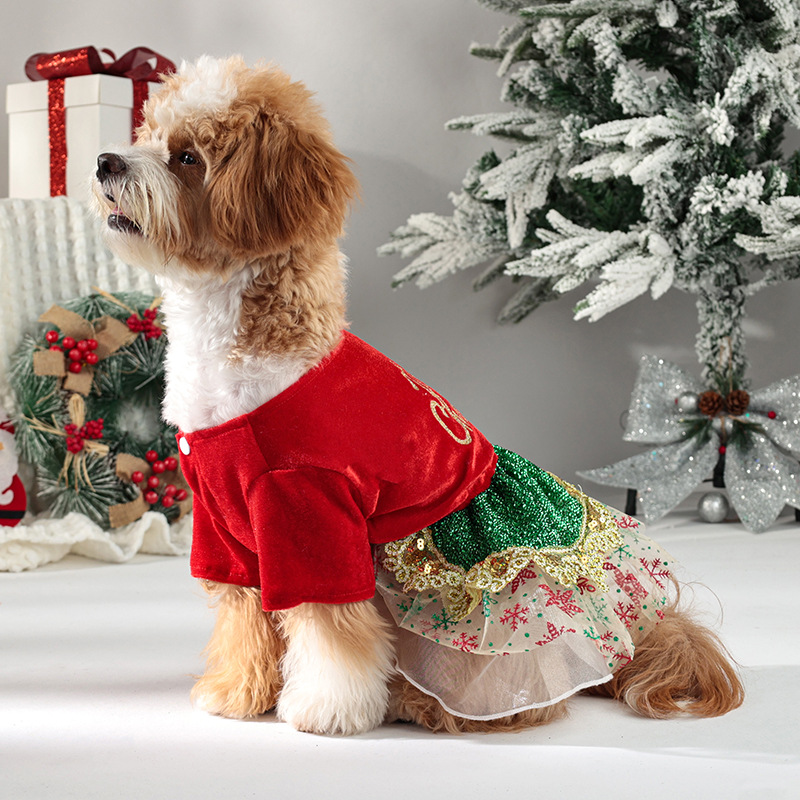 christmas pet costume puppy sequin dress dog christmas party shiny dress up gold velvet dog clothes
